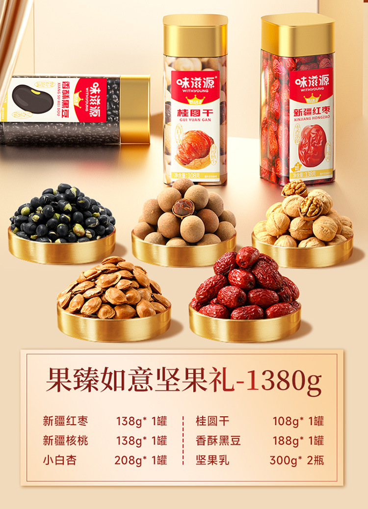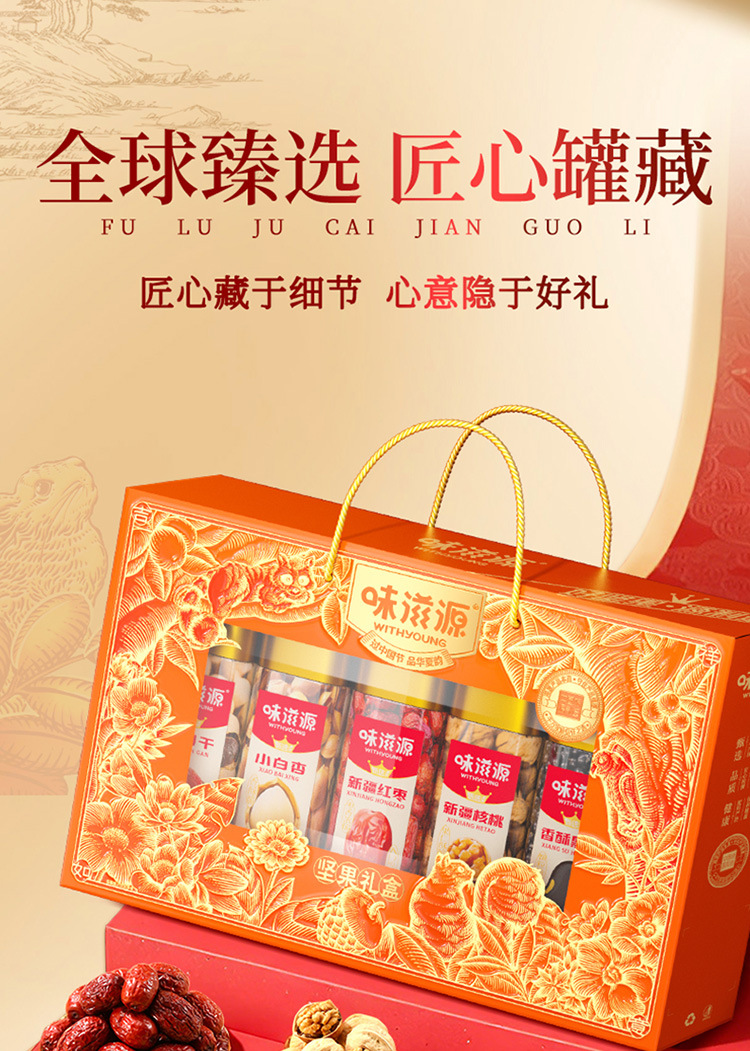 味滋源坚果礼盒7大罐1380g巴旦木过年年货臻选高端送礼零食大礼包