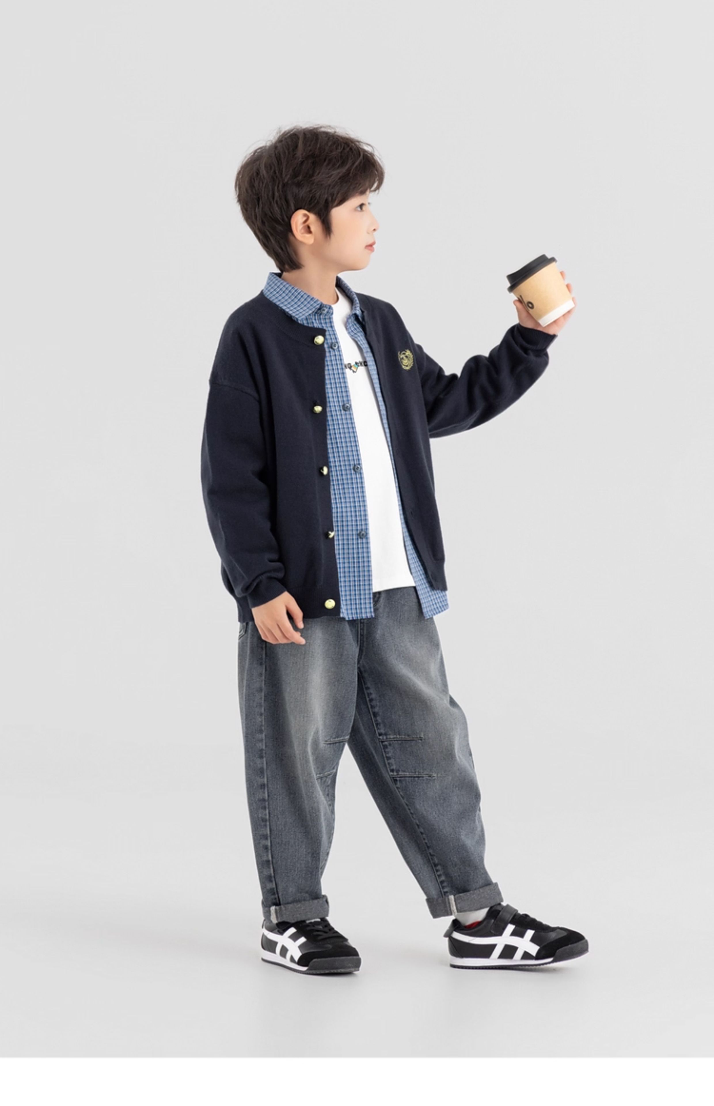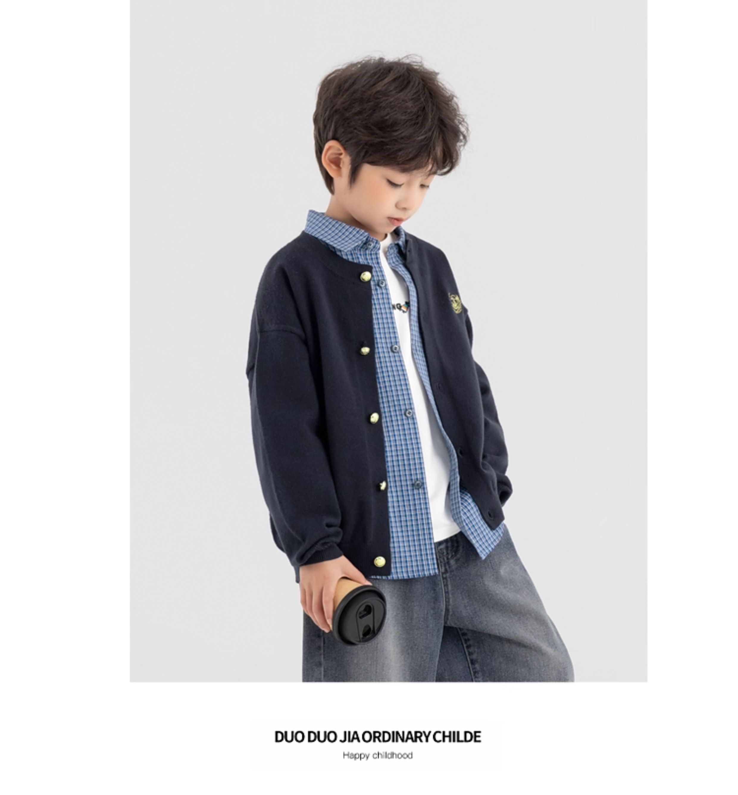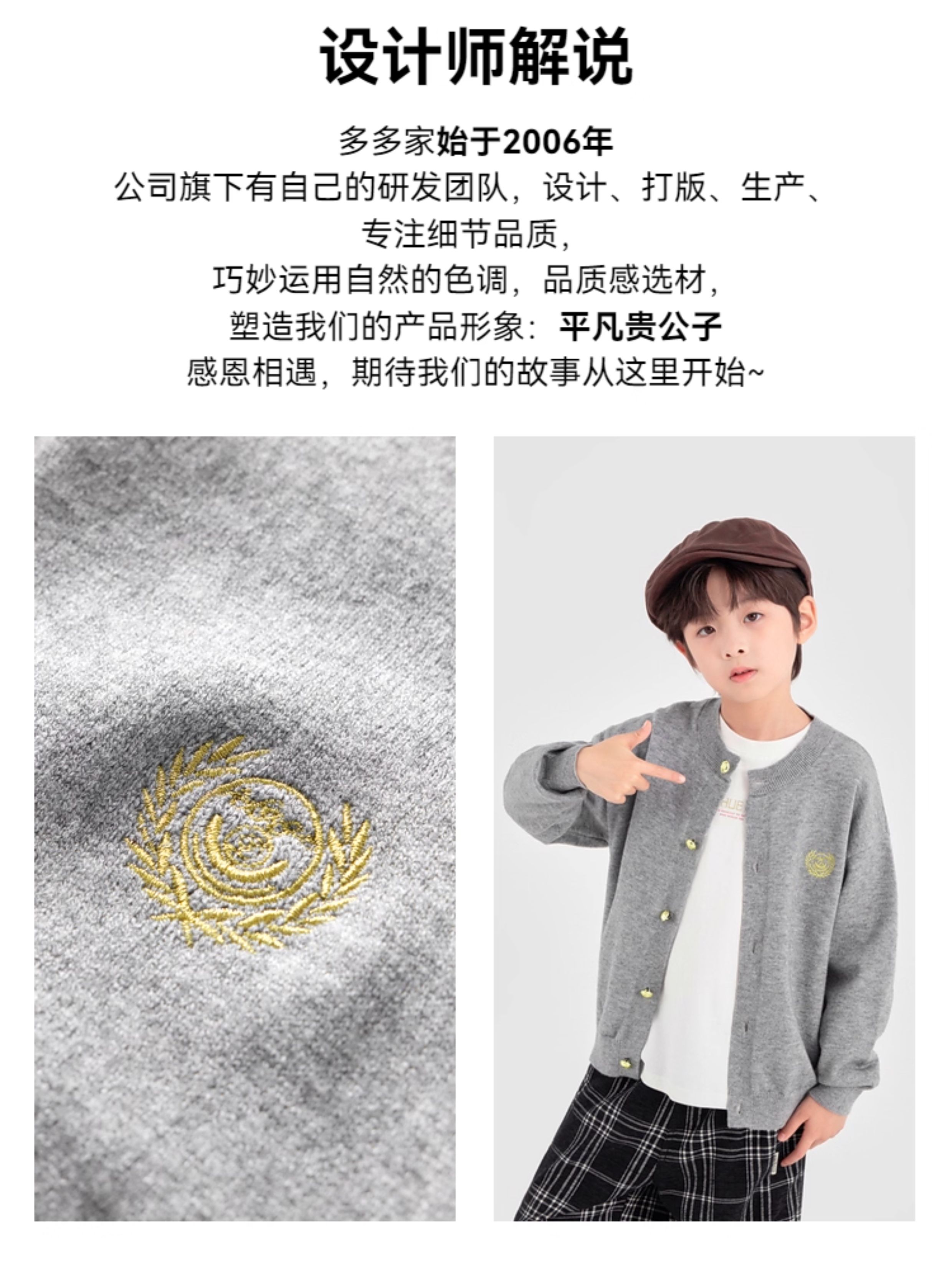 【 件件底价,童装双倍积分 】多多家男童针织开衫毛衣2025新款春秋款儿童中大童学院风刺绣外套11052