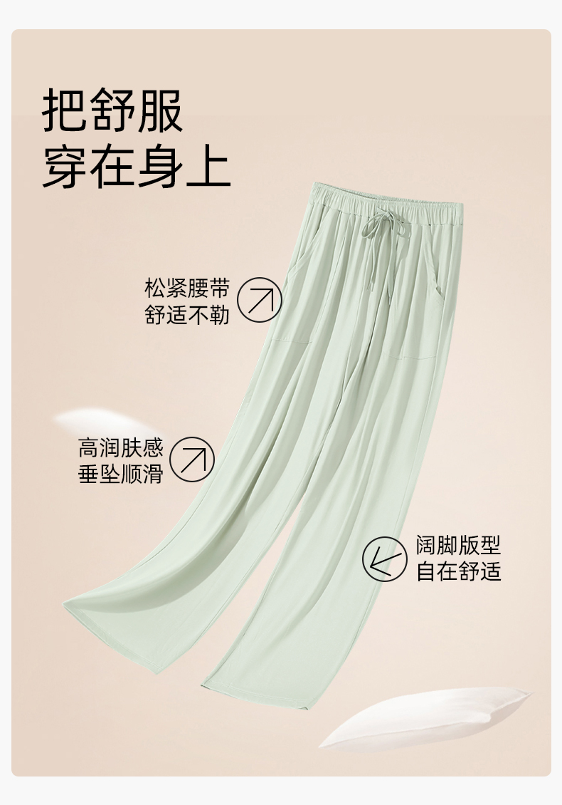 【商场同款】熳洁儿 春夏直筒长裤人棉宽松休闲裤家居服裤可外穿带口袋25203255