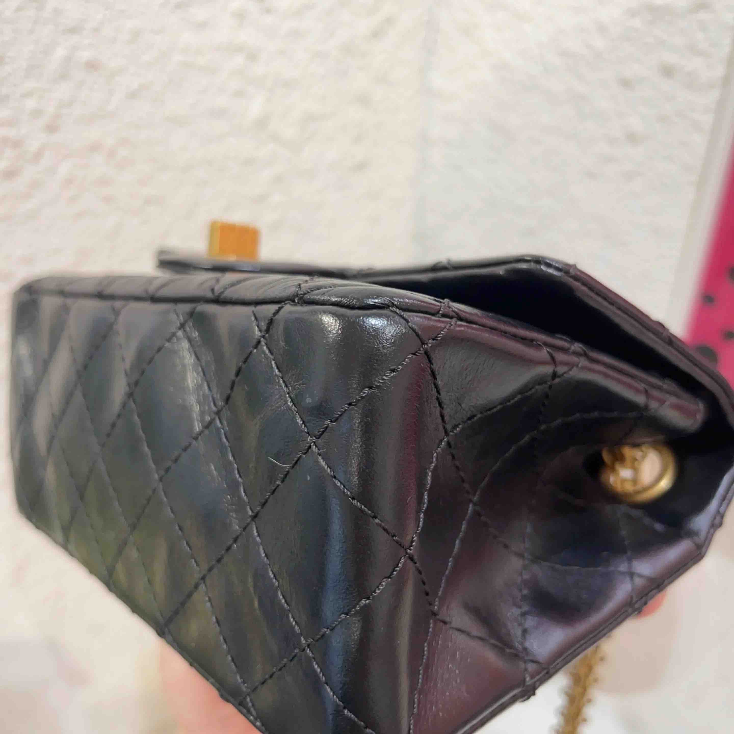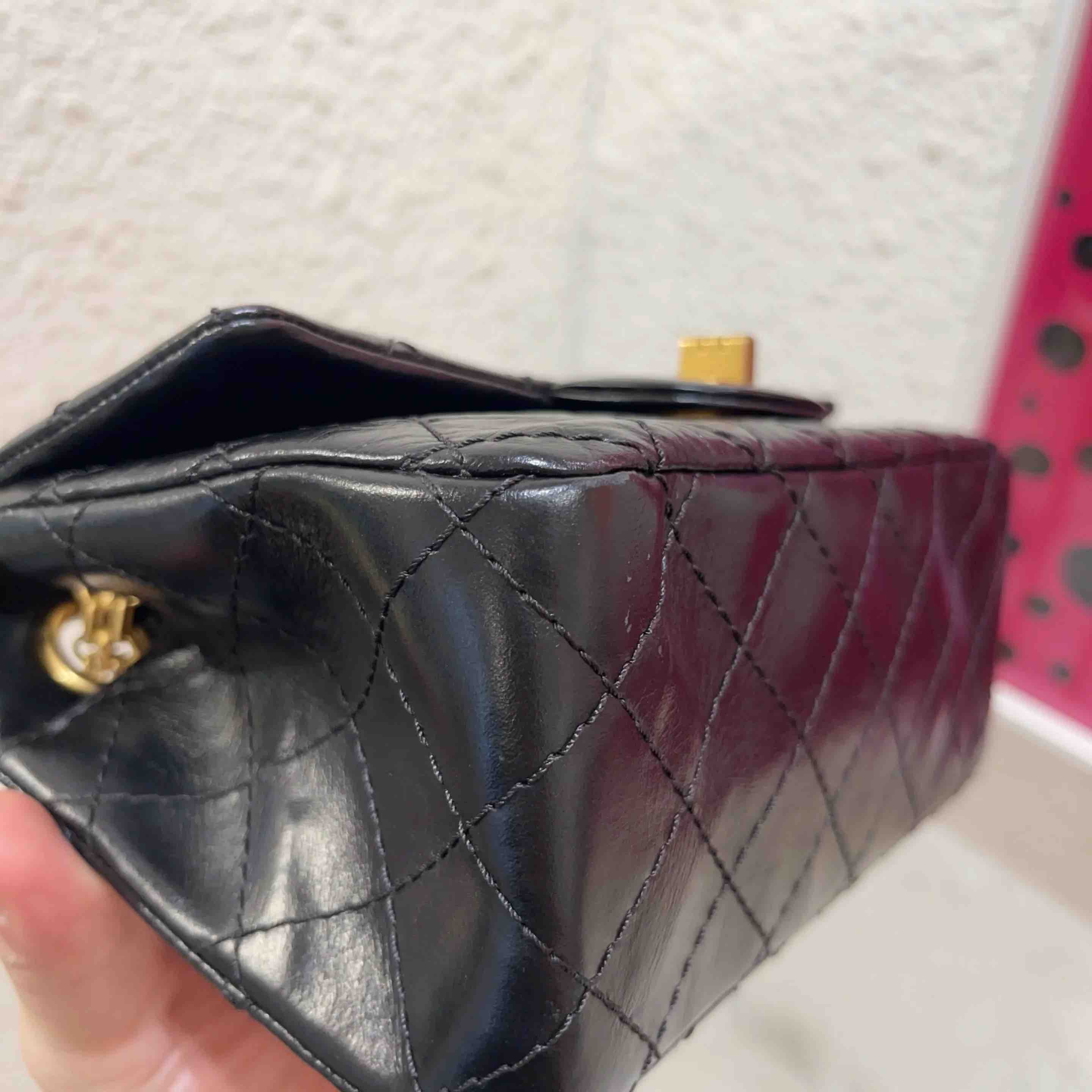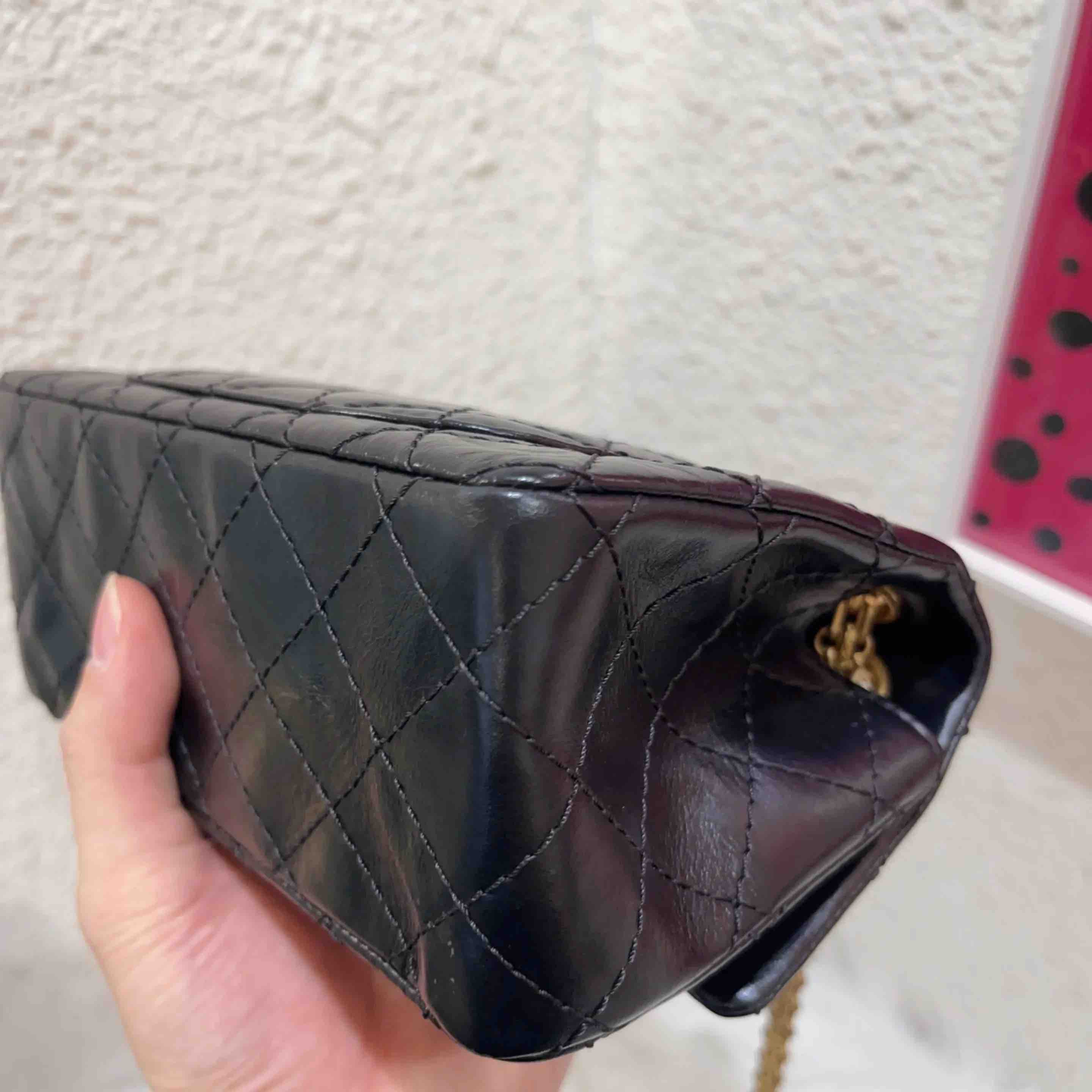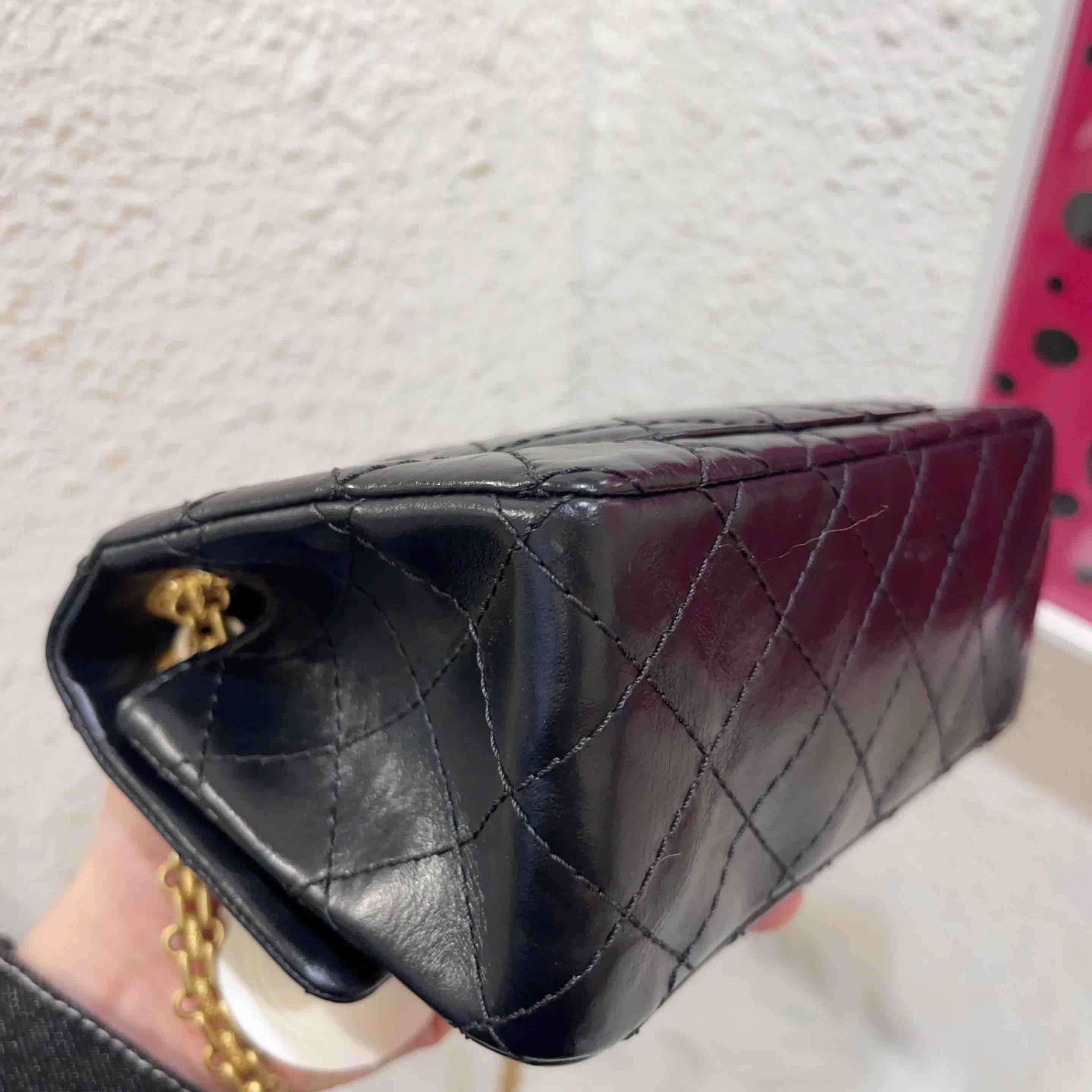 【商品详情】正品二手 CHANEL 2.55 mini 黑金 油蜡牛皮 链条包👑 98新 20×12 镭射29开 配件:说明书 卡 防尘袋 盒子。精致可爱 永不过时