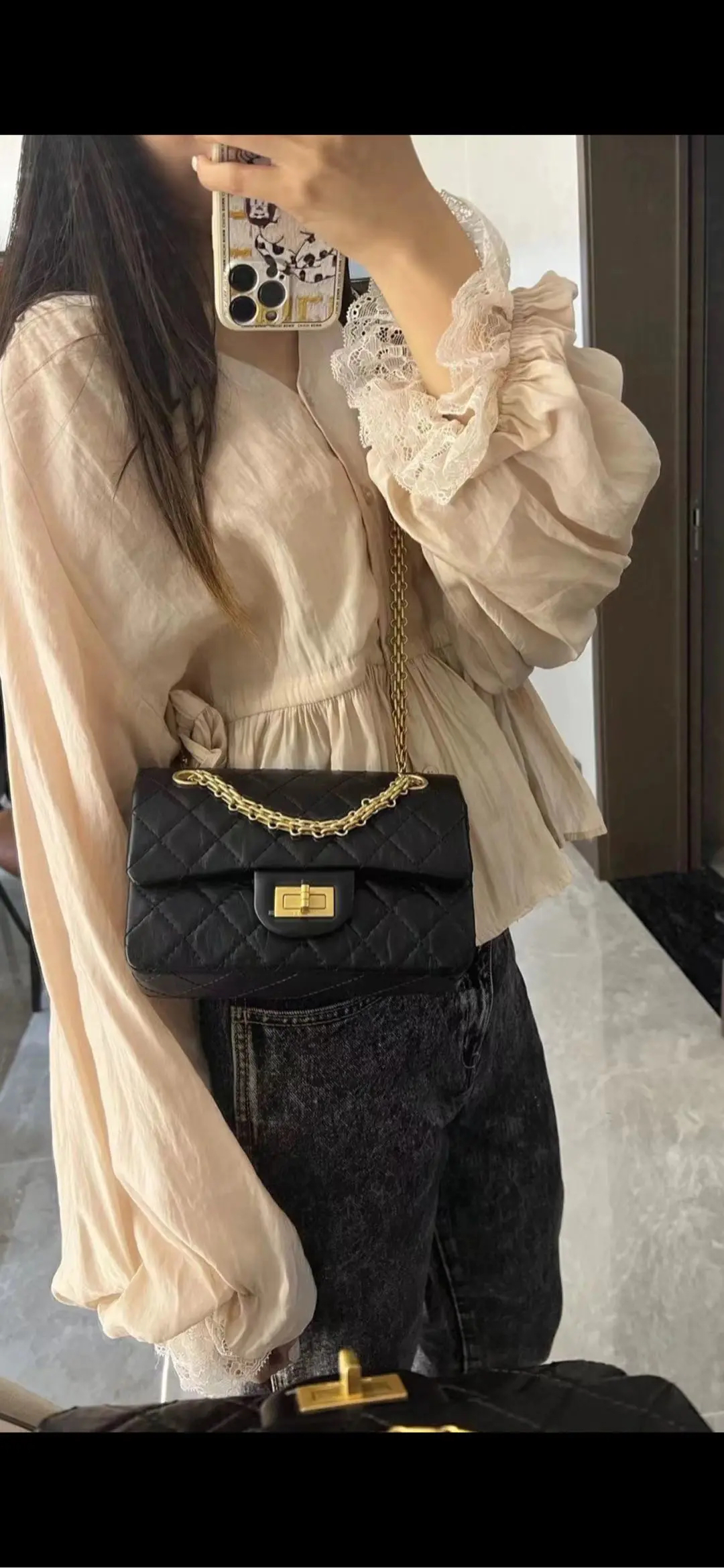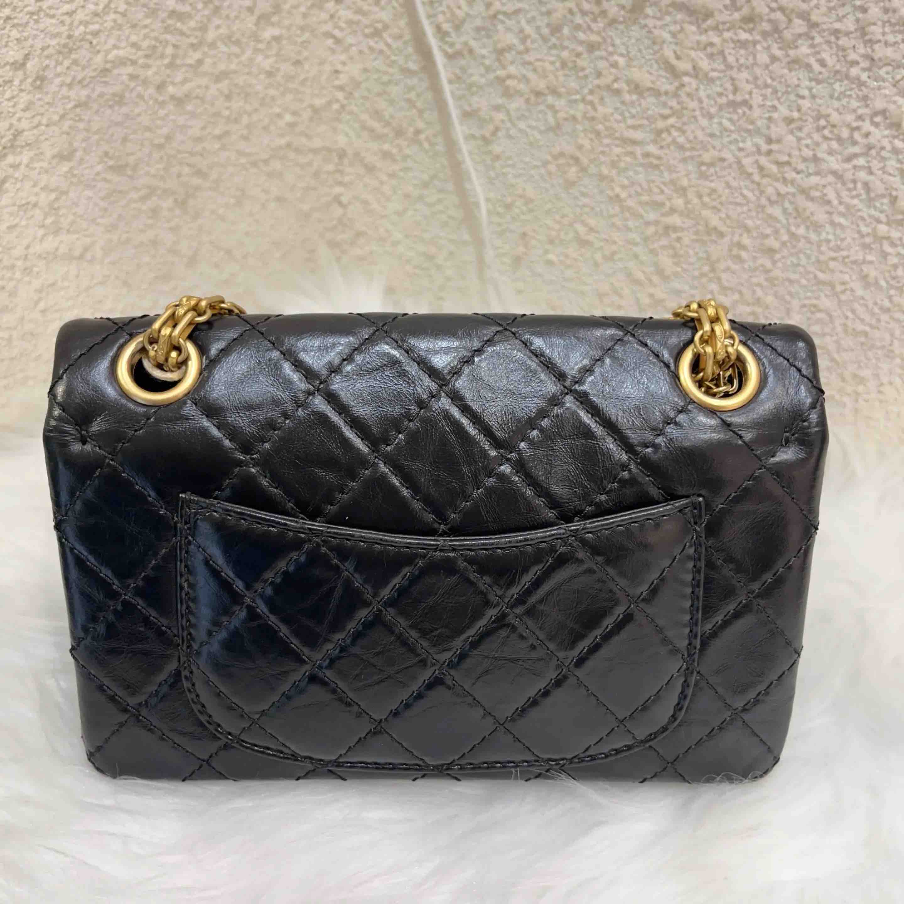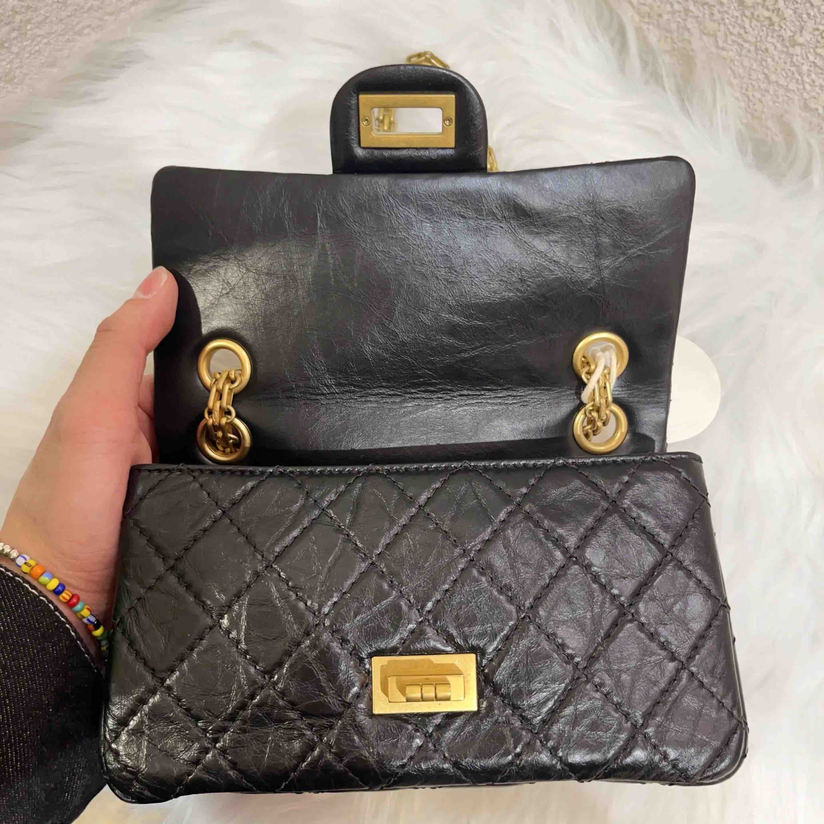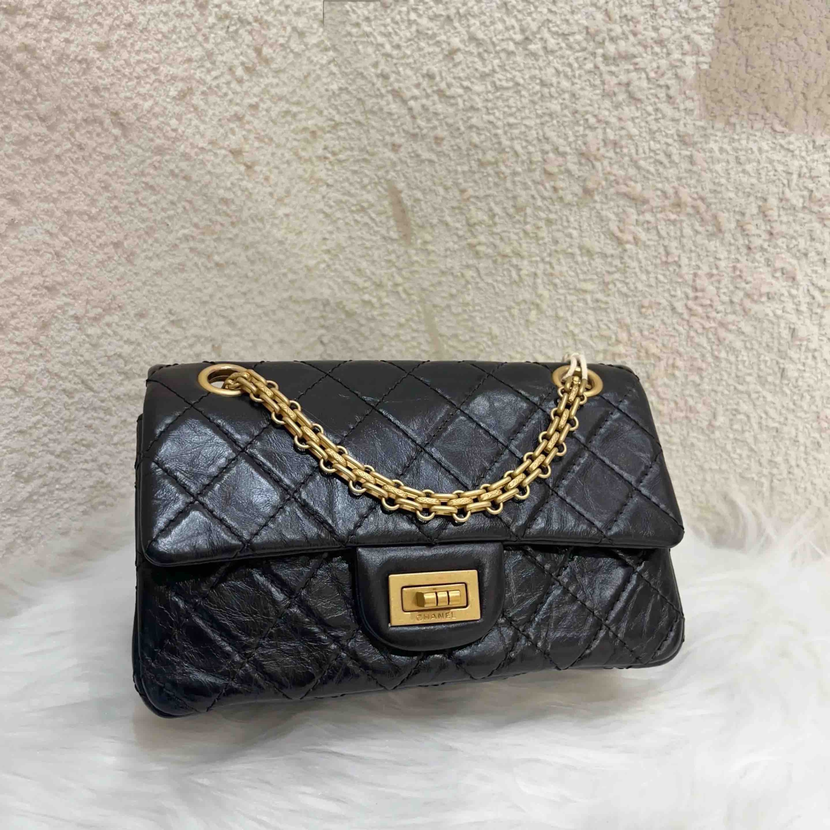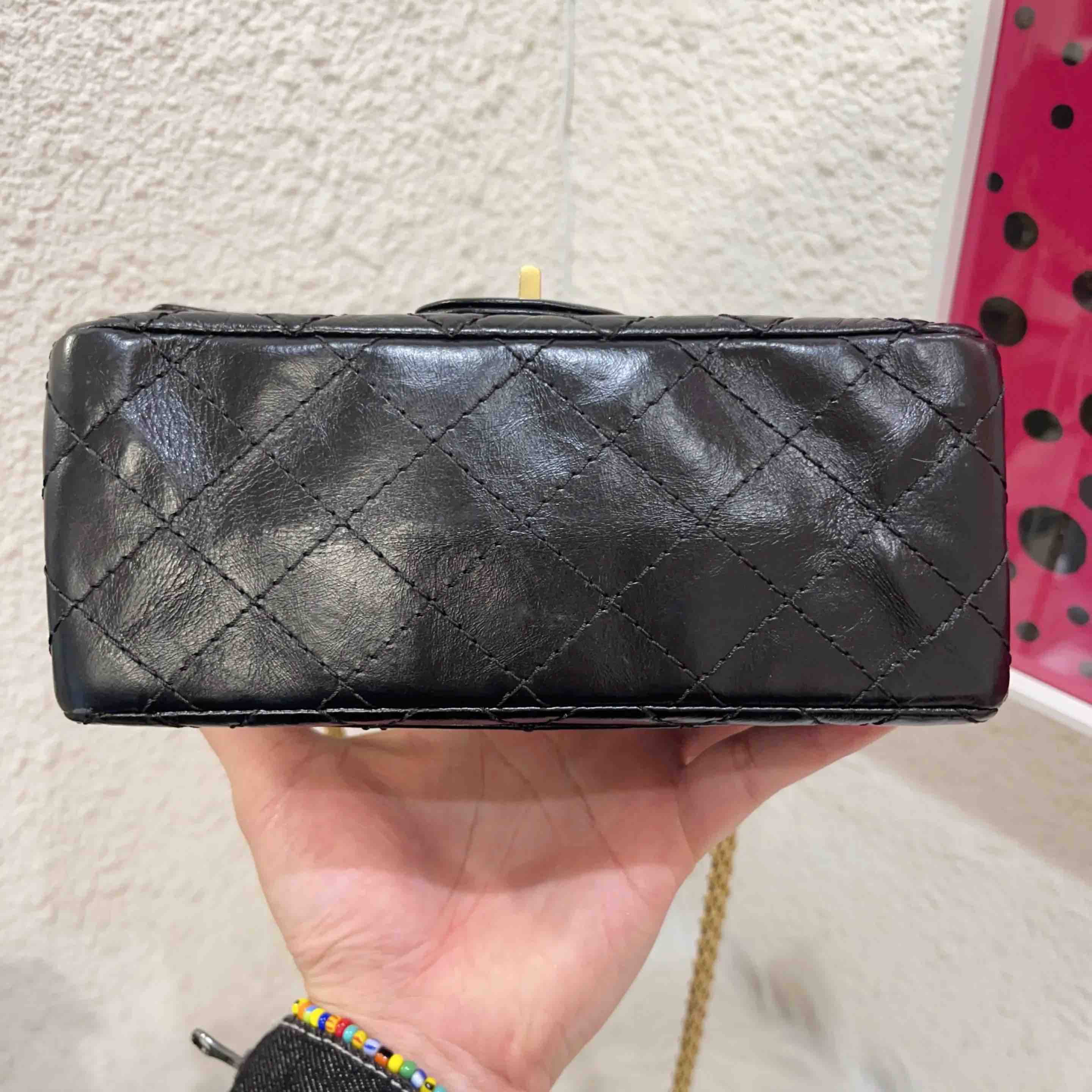 CHANEL 2.55 mini 黑金 油蜡牛皮 链条包