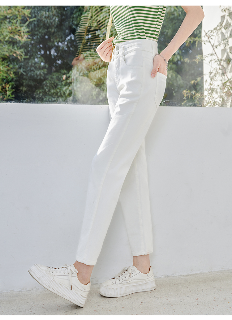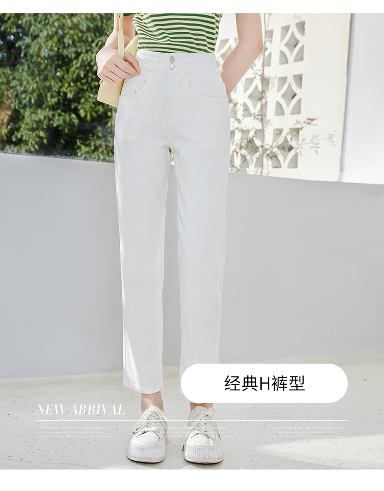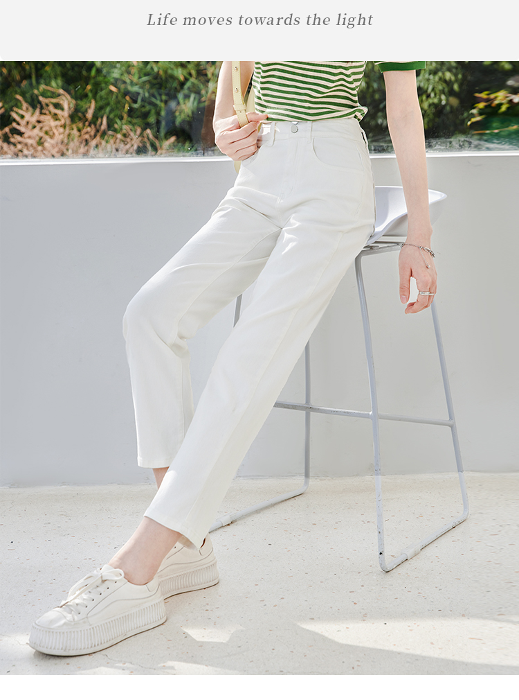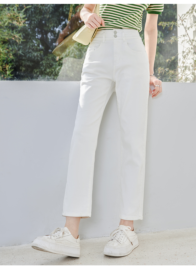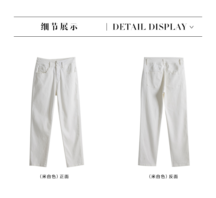 【五折购】熙世界米白色牛仔裤女2025春夏新款高腰显瘦小个子九分直筒烟管裤