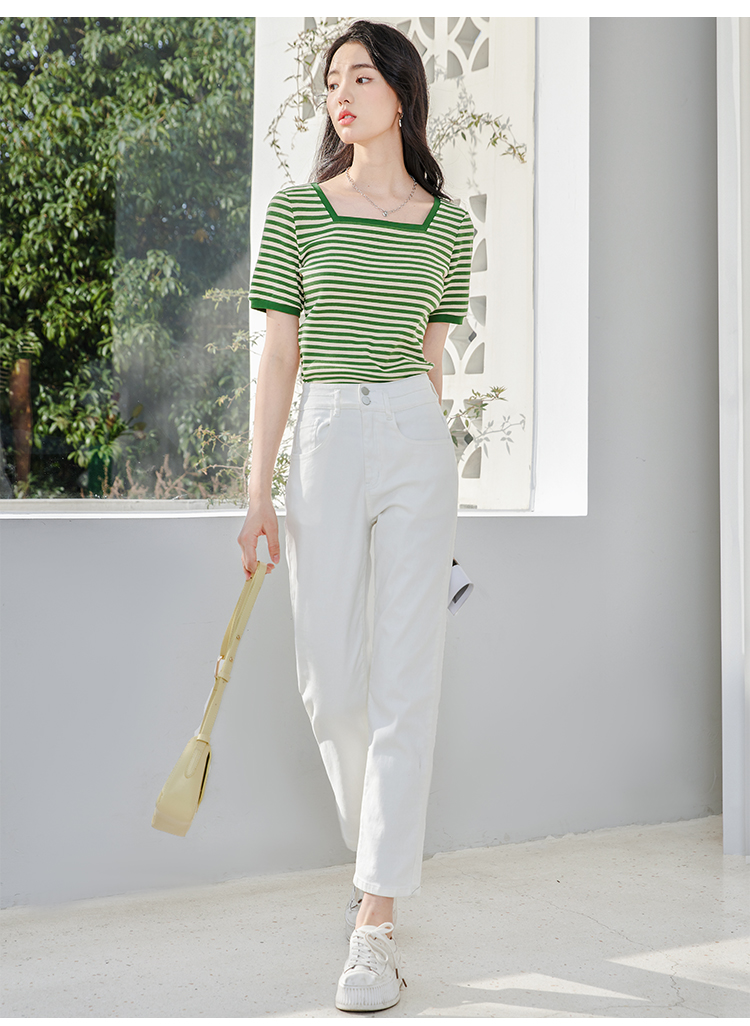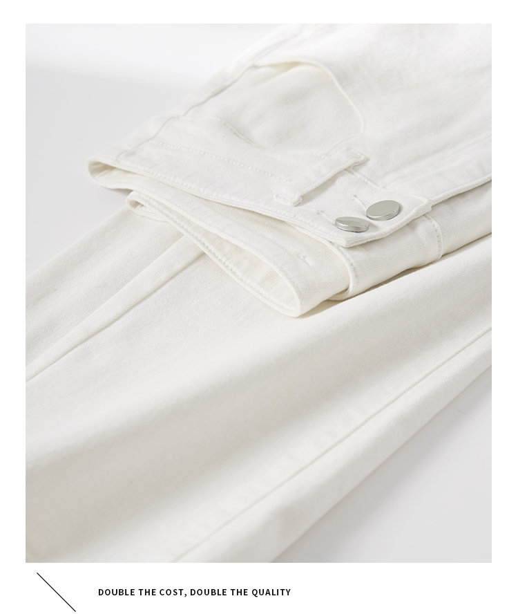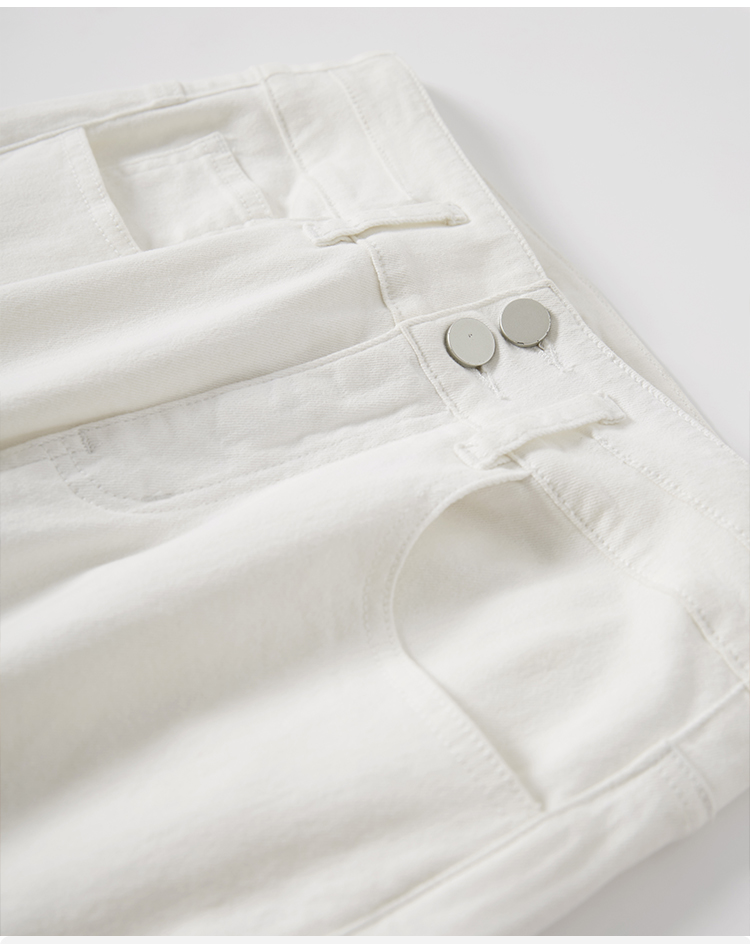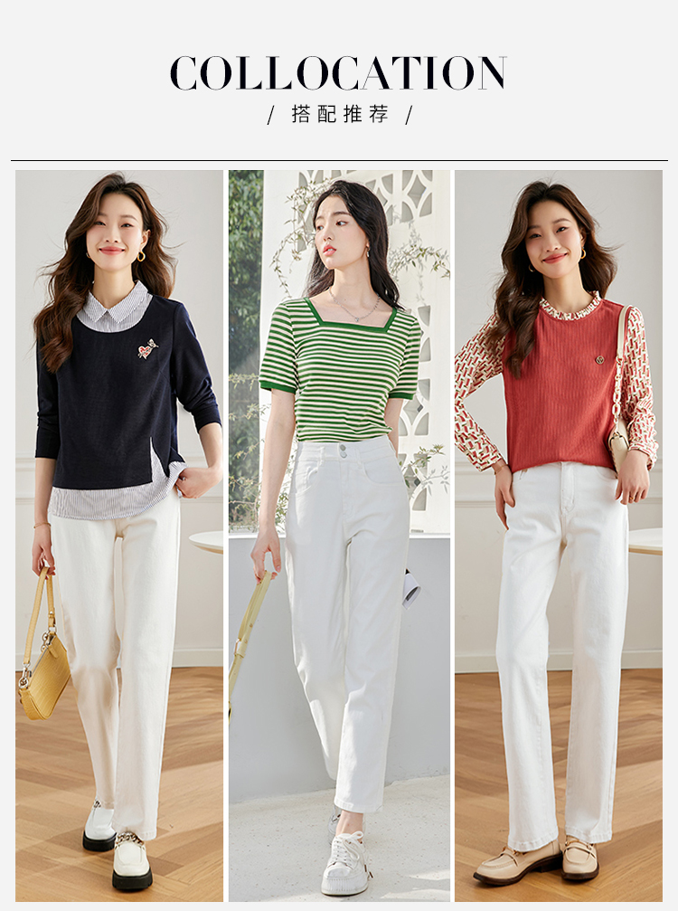 【五折购】熙世界米白色牛仔裤女2025春夏新款高腰显瘦小个子九分直筒烟管裤