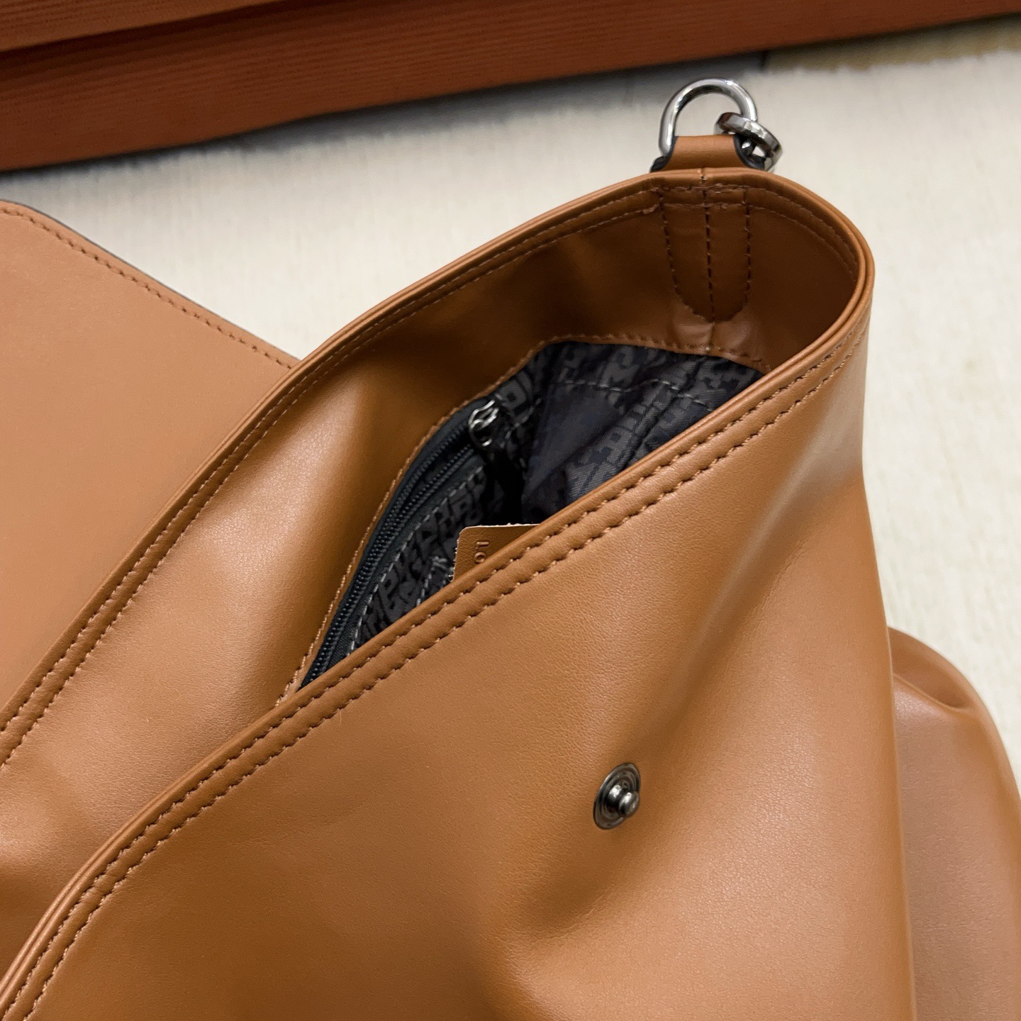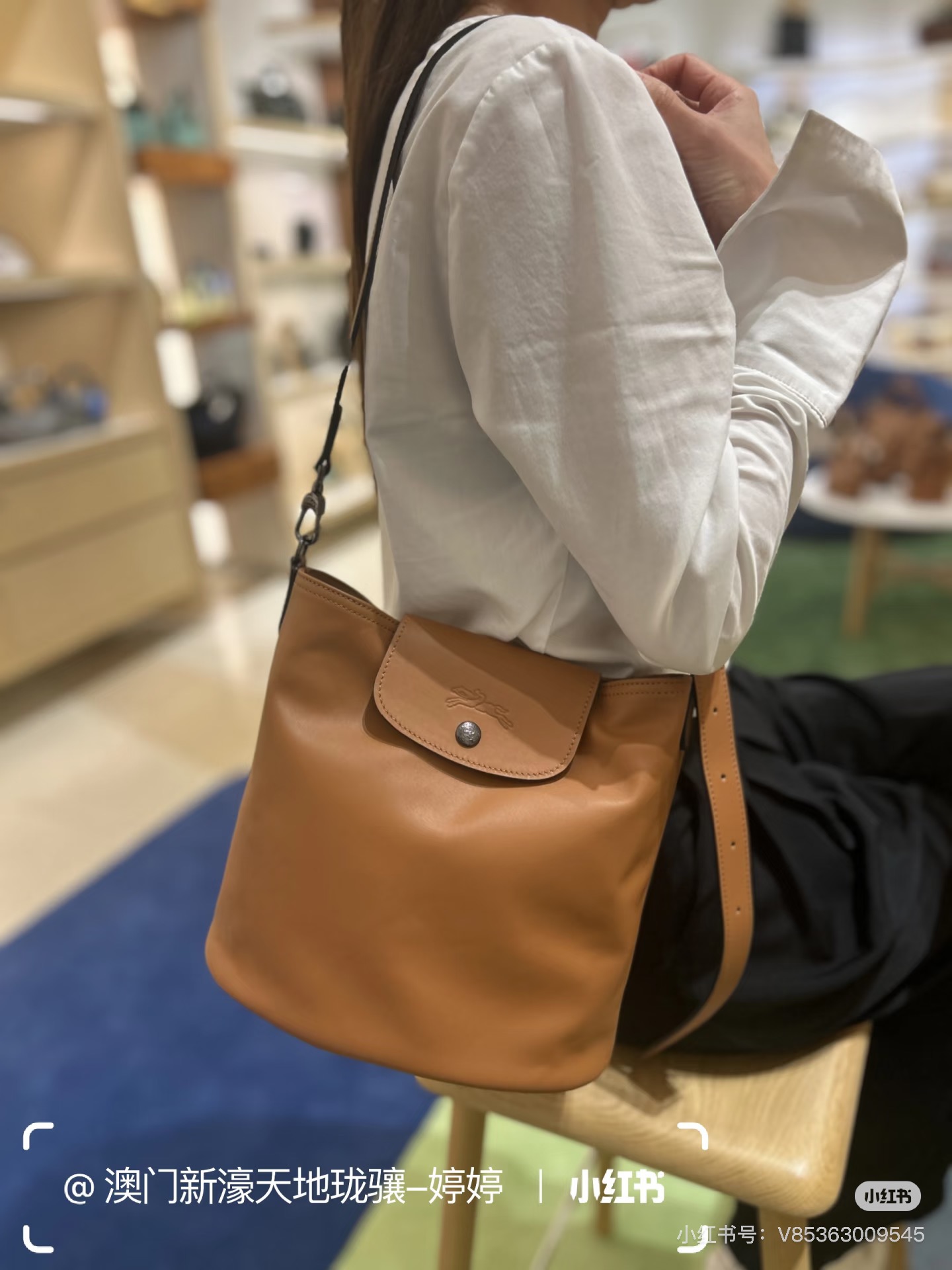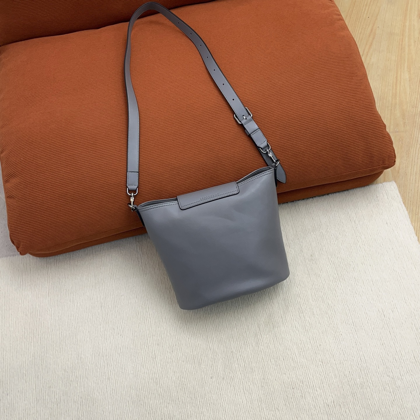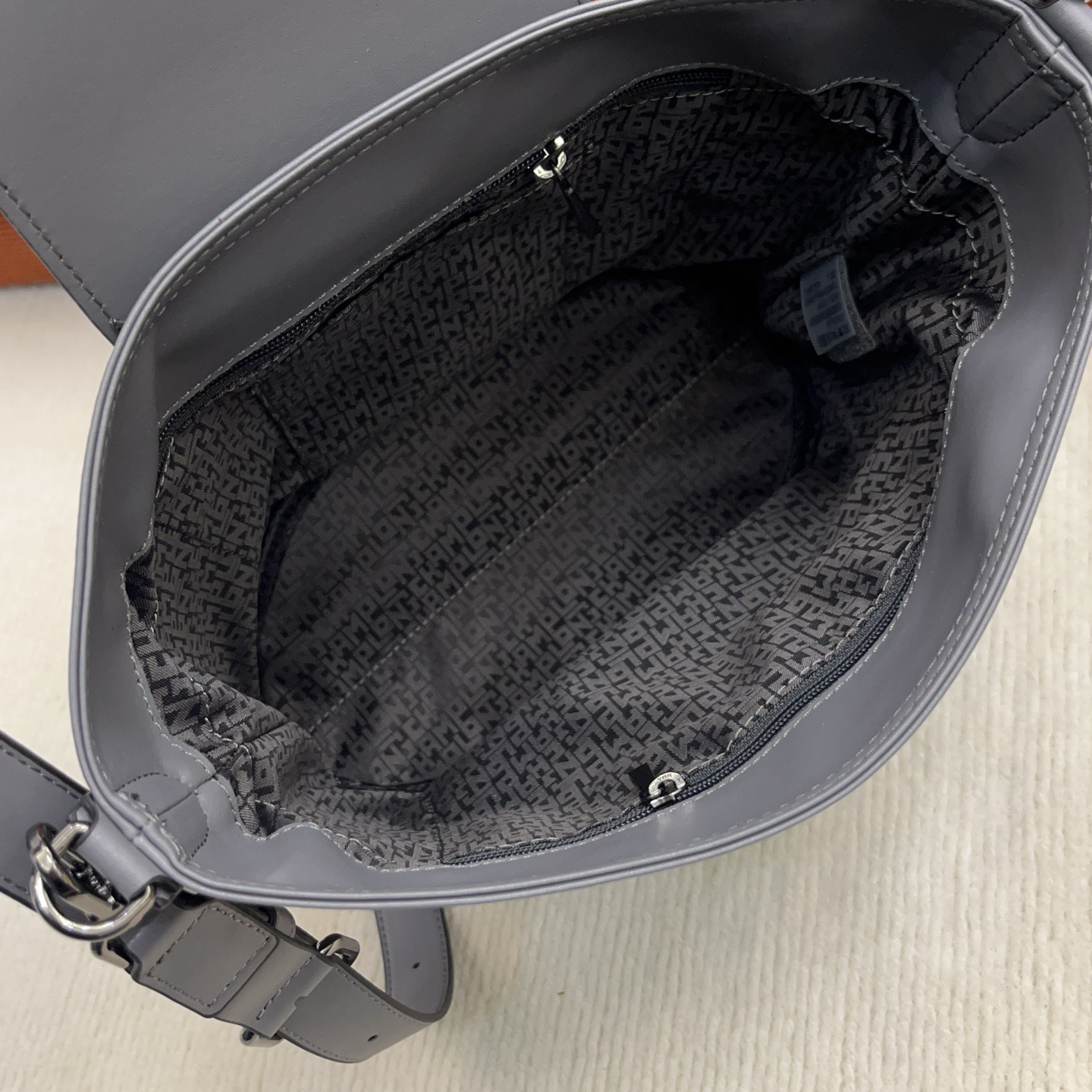不会像普通水桶包那样垮塌,反而有种“松弛但精致”的质感。笔记本+水杯+化妆包都能塞下,单肩背完全不压肩膀,细节是通勤人的小惊喜!