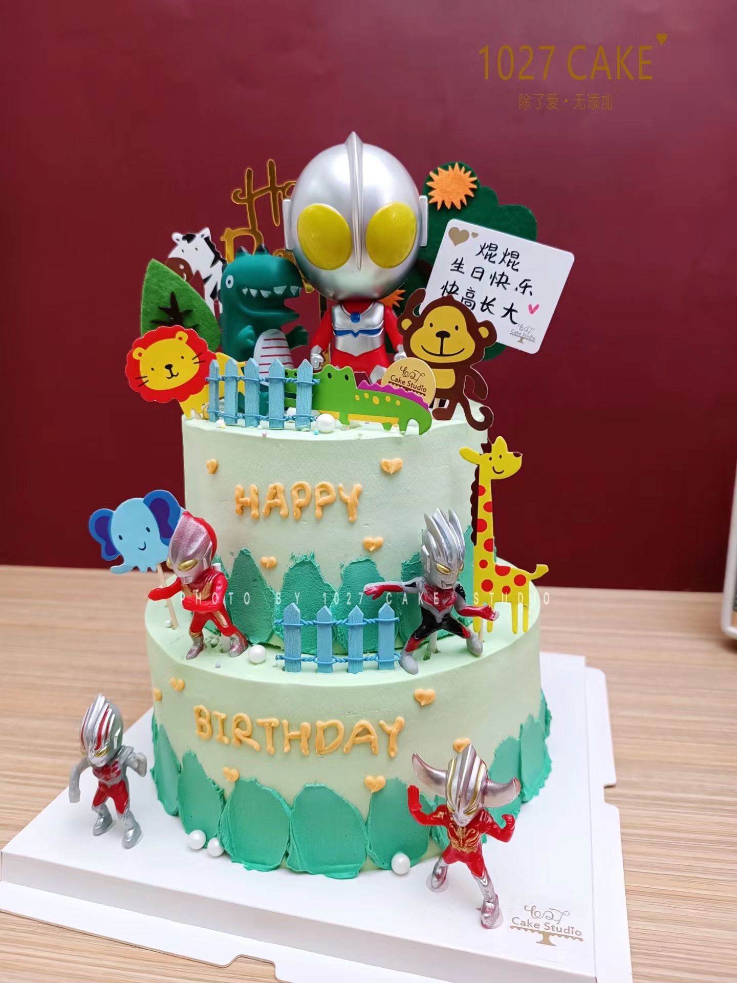 1027CAKE | 奥特曼打小怪兽 双层蛋糕 绿色系