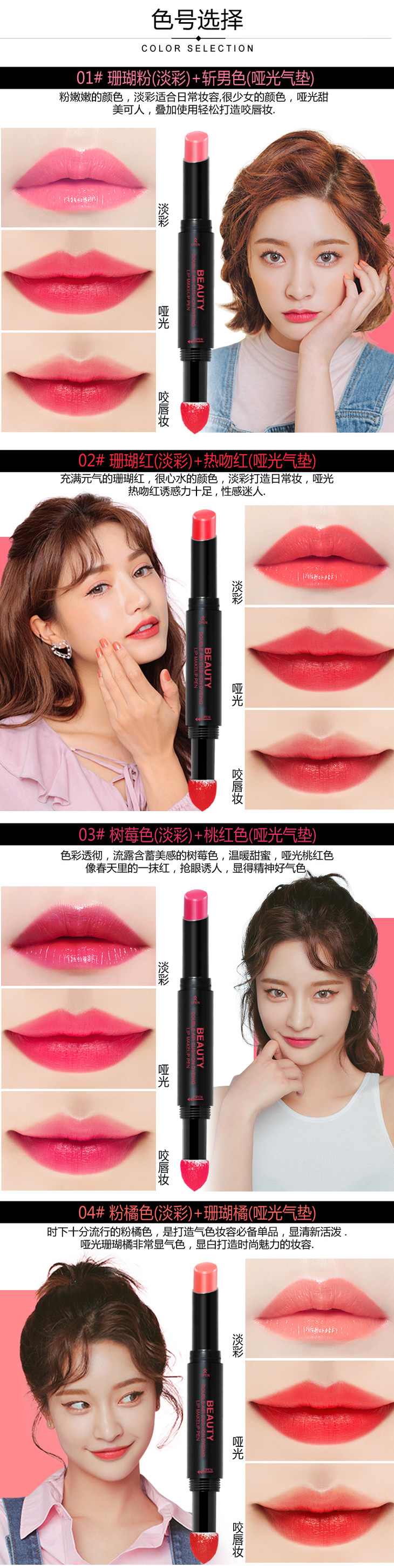 三用口红棒,哑光亮光咬唇全唇随心画