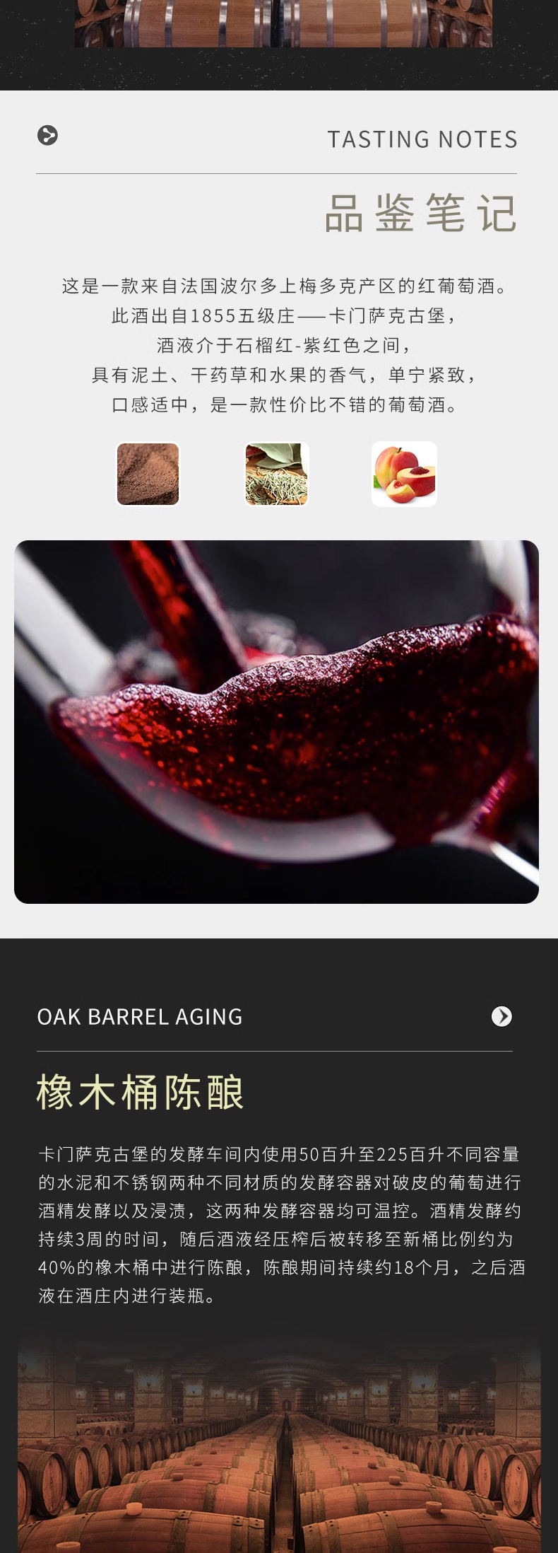 【1855列级名庄⁵】 法国进口卡门萨克酒庄副牌干红葡萄酒750ml