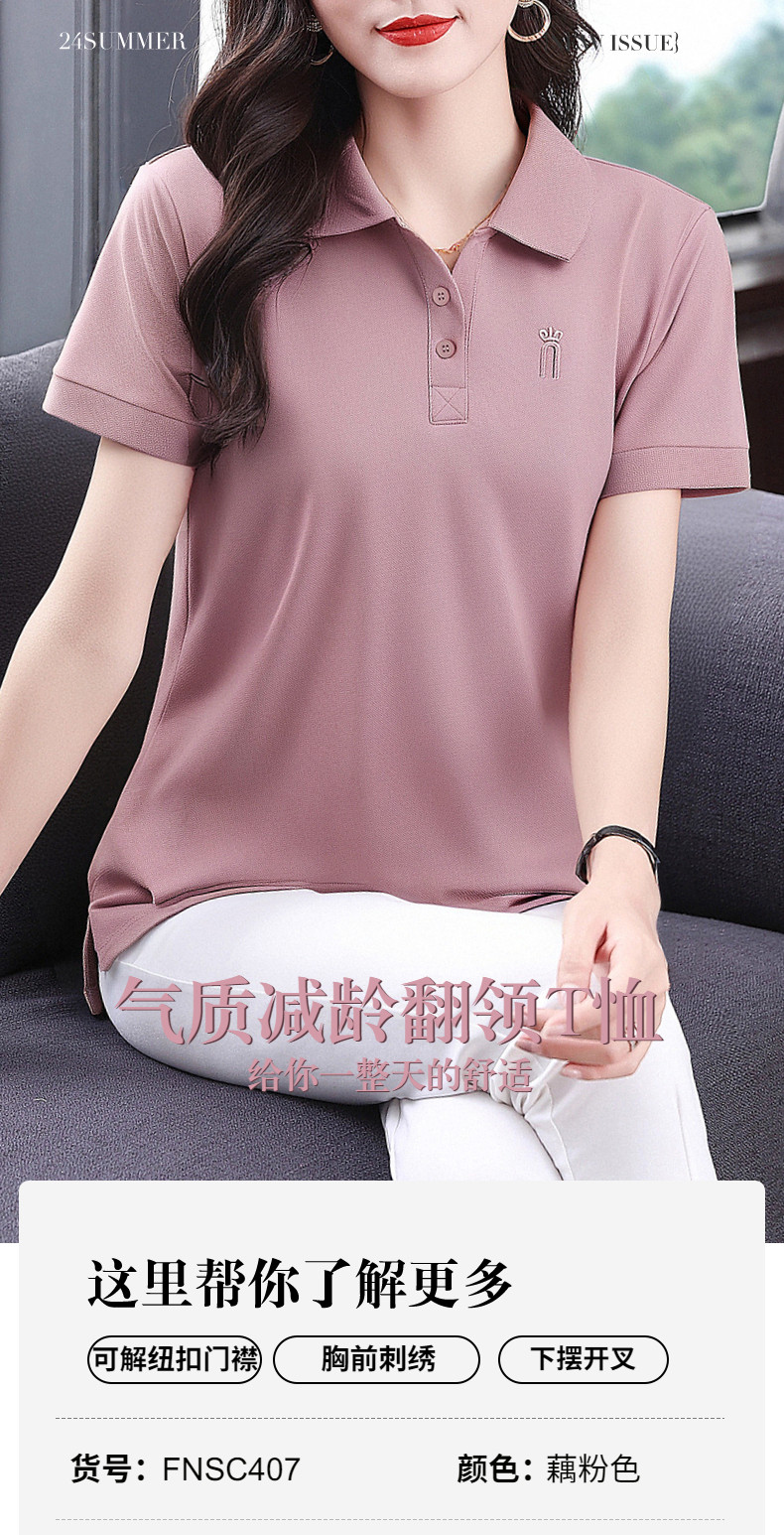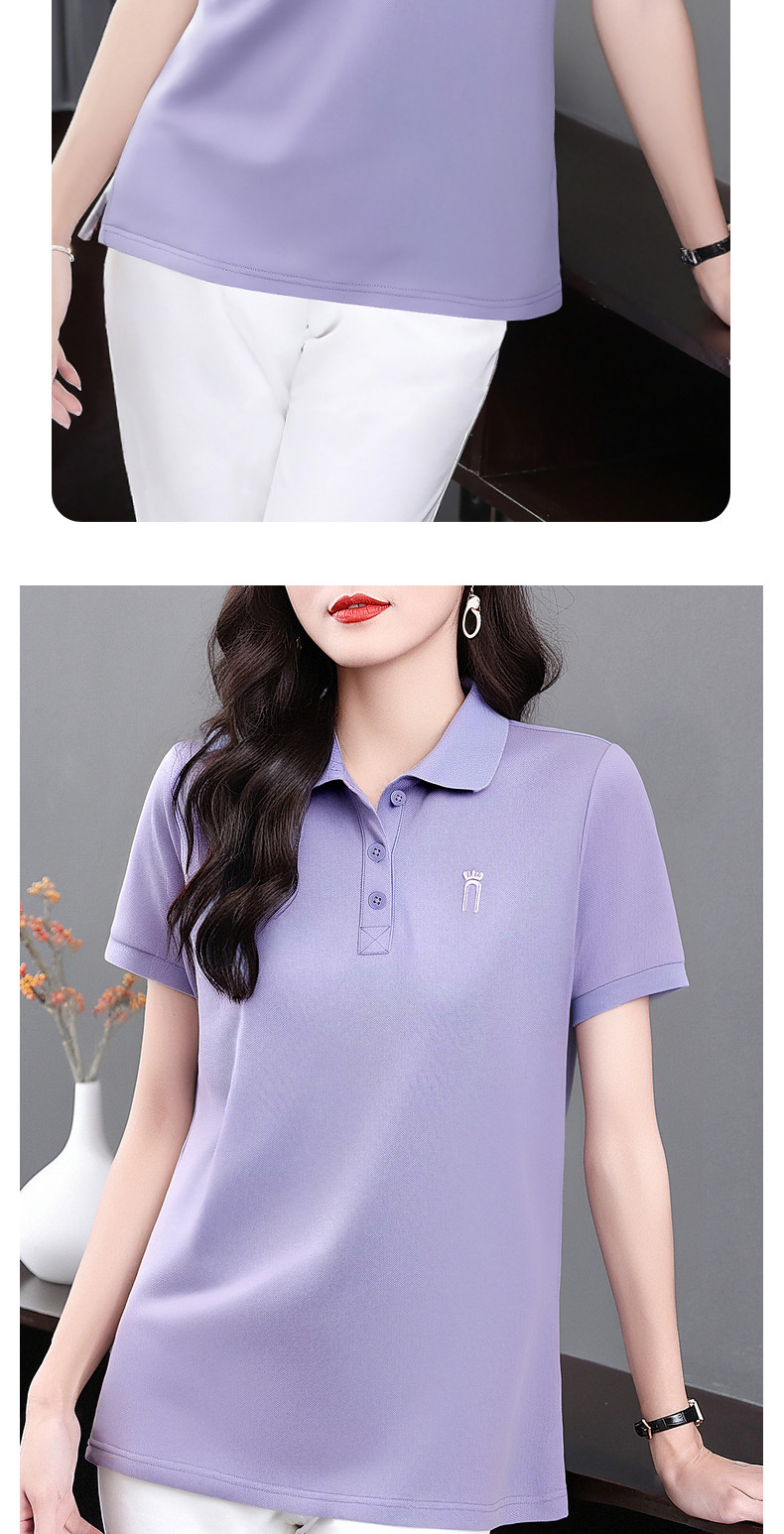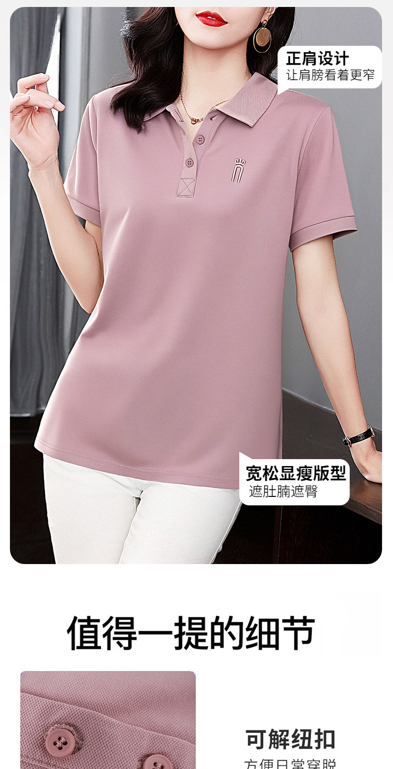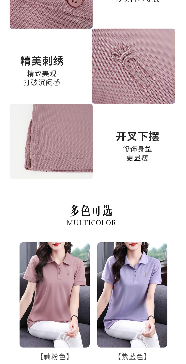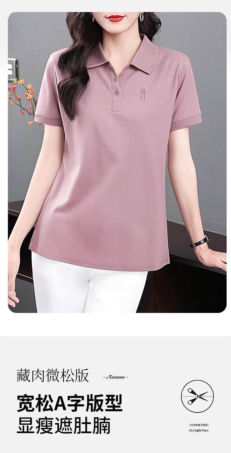 薄款冰丝短袖t恤女2026新款夏季大码polo衫女装翻领半袖宽松上衣