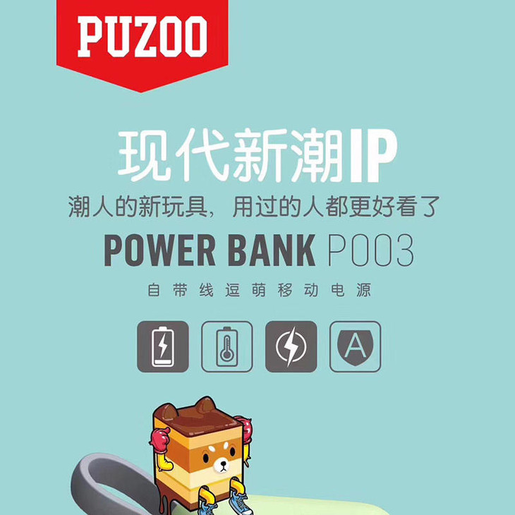puzoo趴酷自带线10000毫安充电宝