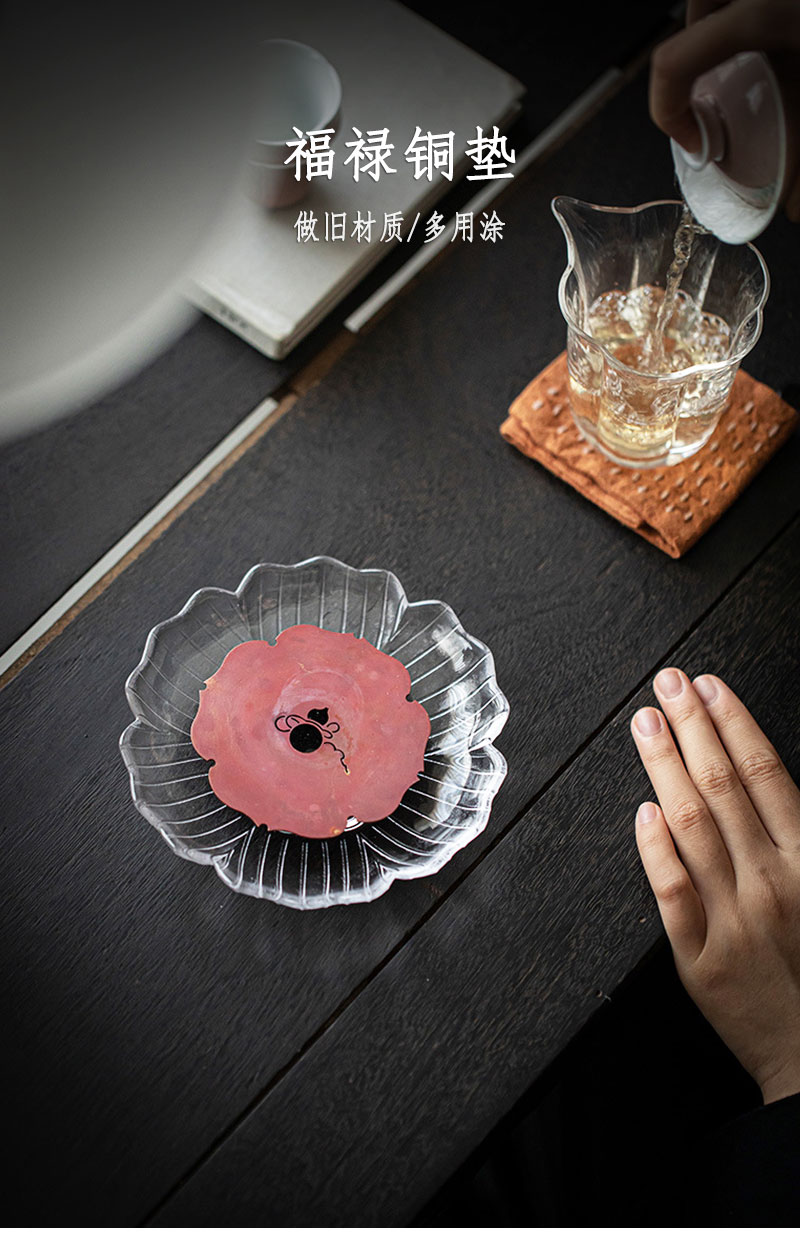 束刻 壶承 紫铜葫芦 菱花福禄铜垫做旧茶壶垫茶托杯垫功夫茶具茶道配件干泡台壶承茶垫壶托