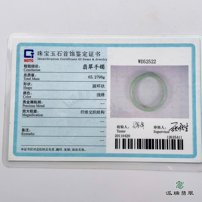 派瑞翡翠 翡翠手镯 糯种 浅绿