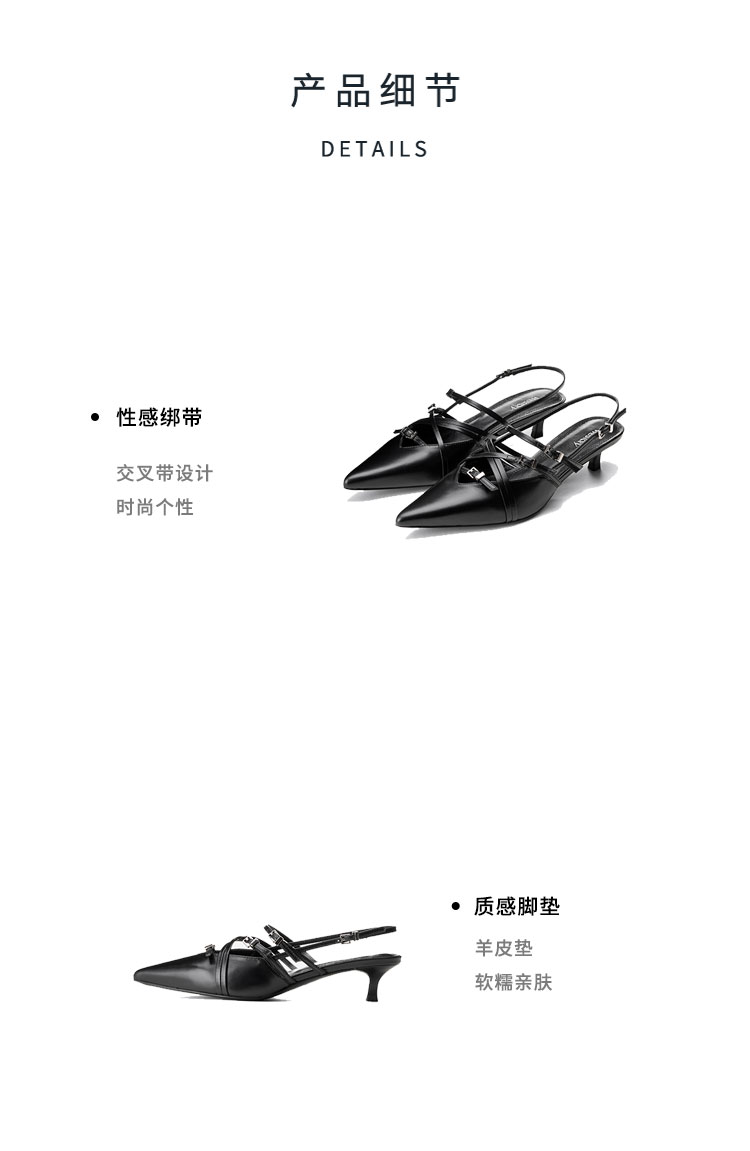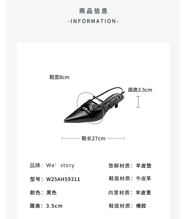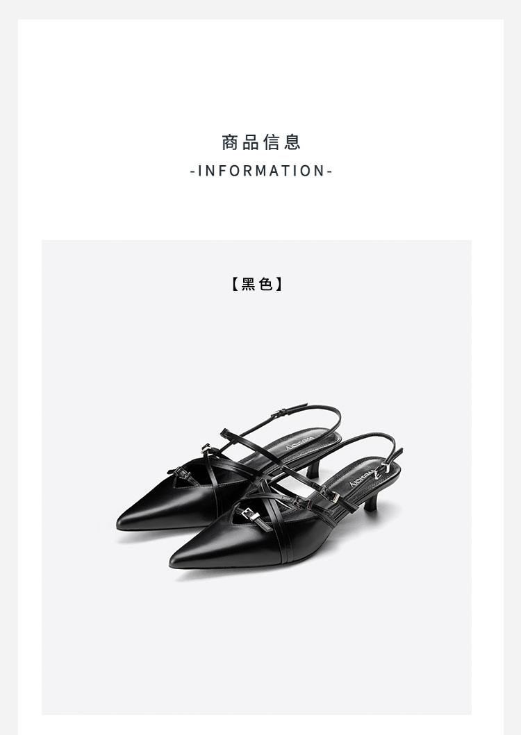 Westory2025年夏季尖头低跟后空单鞋包头空凉鞋W25AH59311