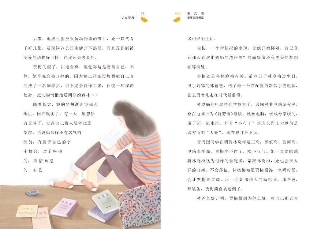 “秦文君童年宝藏书系”新近面世的《少女贾梅》,延续“女生贾梅”系列中的形象,并将人物年龄由童年期提升至“少年期”,将人物成长的校园、家庭与社会背景拉近至“当下”。这一穿越时代陪伴儿童成长的文学形象身上,寄寓了作家秦文君朝向中国女童未来性格、性别建构的文学理想。