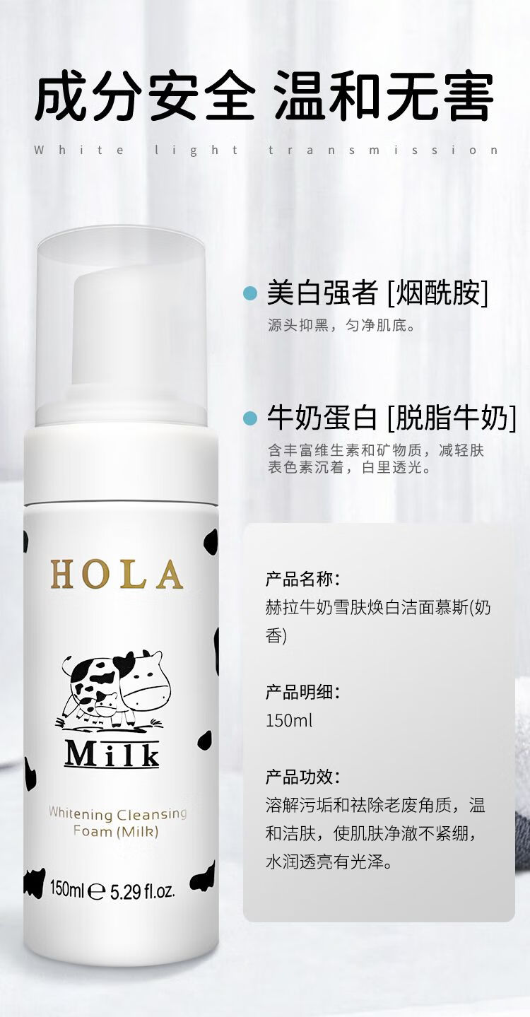 赫拉雪肤焕白洁面慕斯 150ml 氨基酸泡沫洗面奶敏感肌可用保湿补水