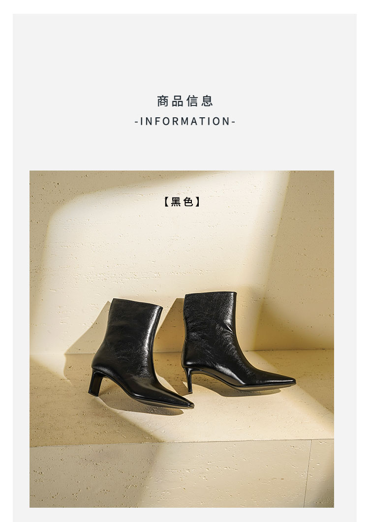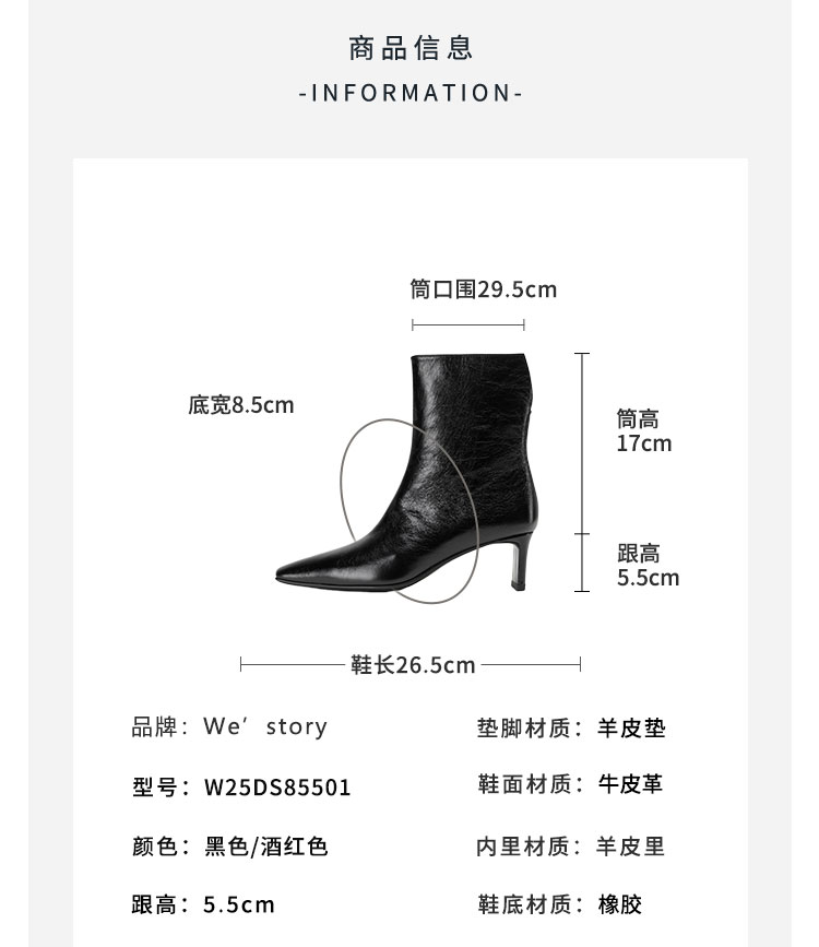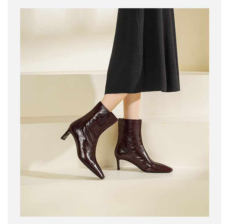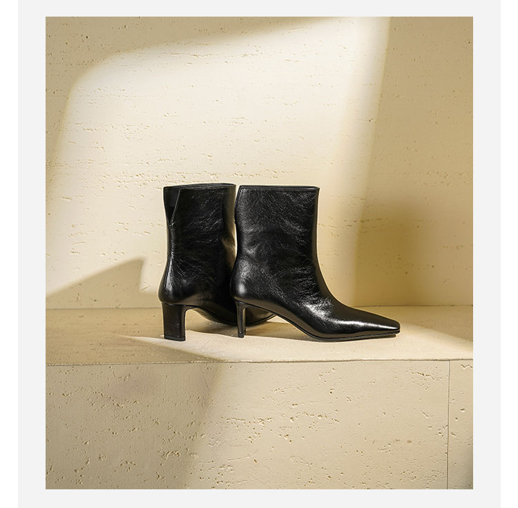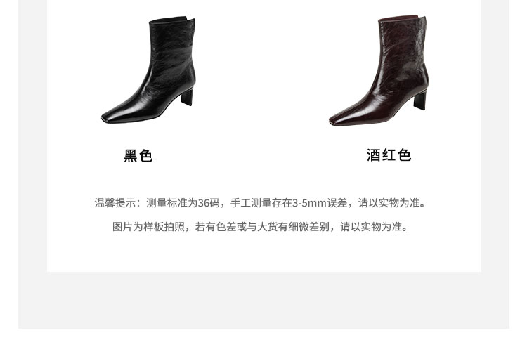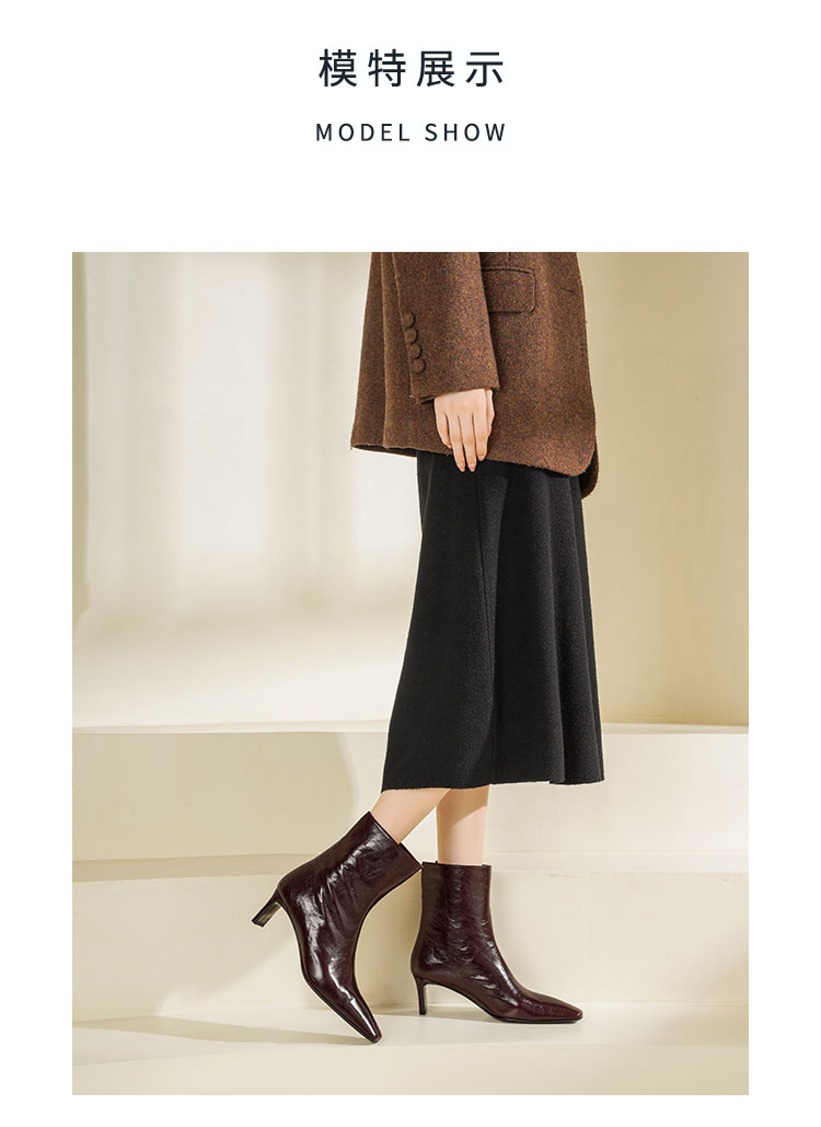 Westory2025年冬季小方头中跟抓邹牛油皮一脚蹬极简宽筒气质短靴W25DS85501