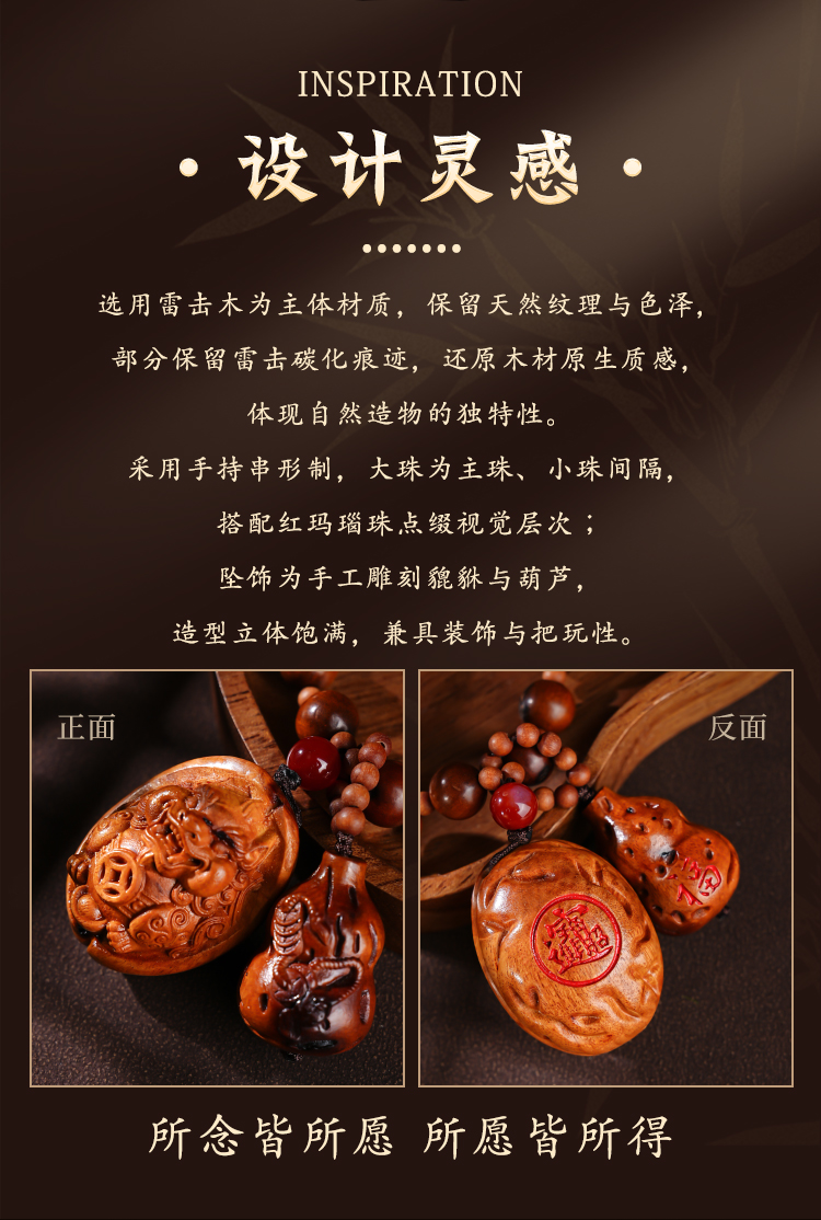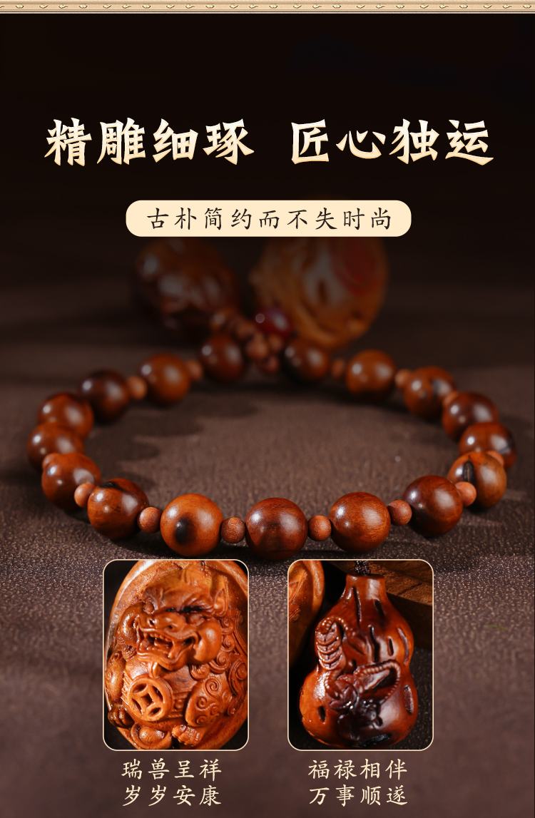 富甲雷击木貔貅葫福禄手持串葫芦龟甲手把件雕刻手持
