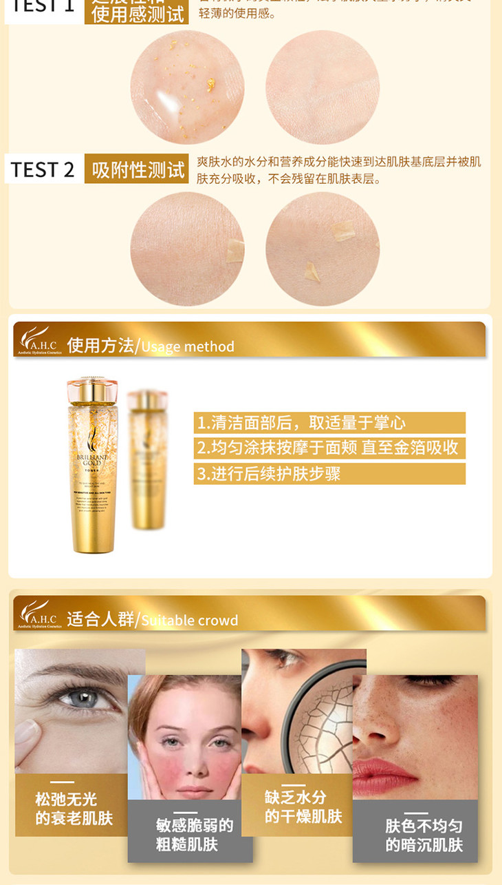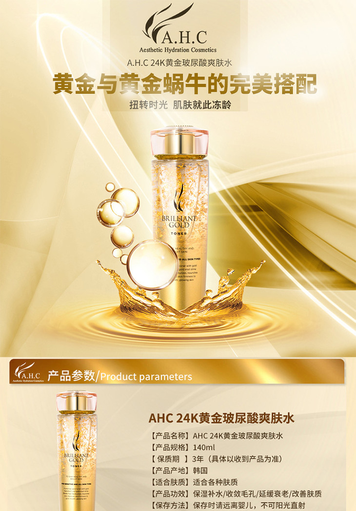 【现货】韩国 AHC 24K黄金 玻尿酸补水 保湿透白爽肤水140m 精华60ml