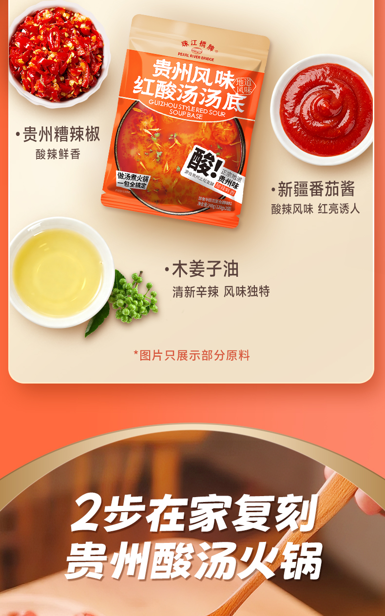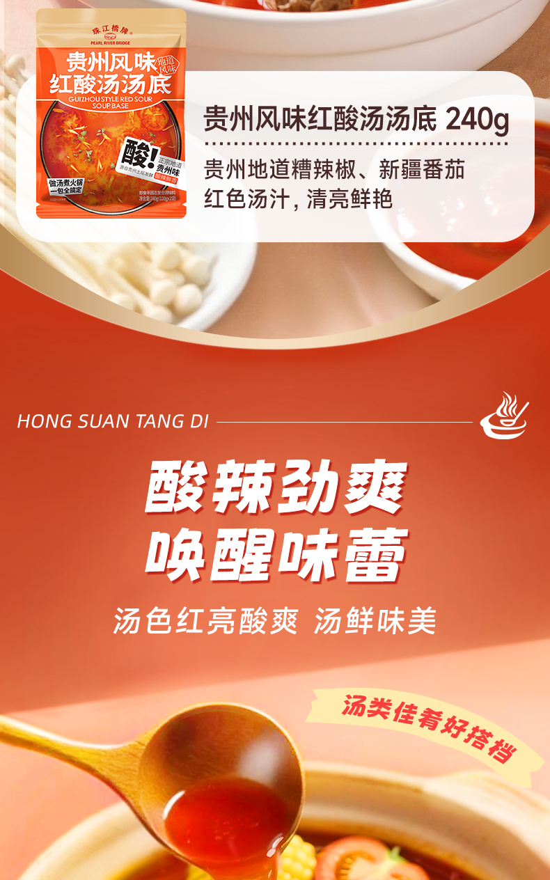 【火锅季】珠江桥牌 贵州风味红酸汤汤底240g/袋(内含120gx2袋)