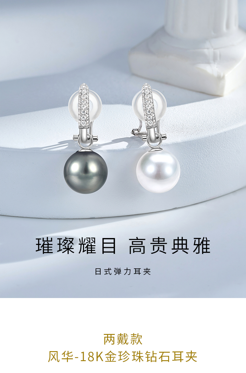 【天猫同款】两戴款 风华-18K金珍珠钻石耳夹