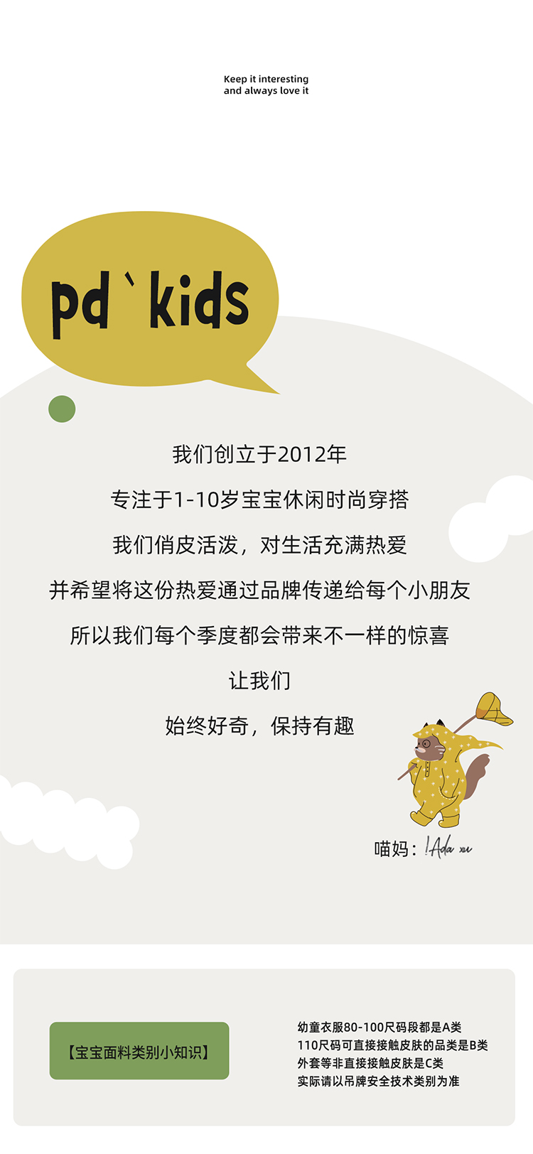 Purrfect-Diary专注于贴近自然随性的穿着概念,轻奢平价的童装文化传播,在产品设计上更加注重婴童穿着的舒适性、安全性、更出众的国际化品牌,将欧美的育婴文化在中国进行深入的传播与推广。