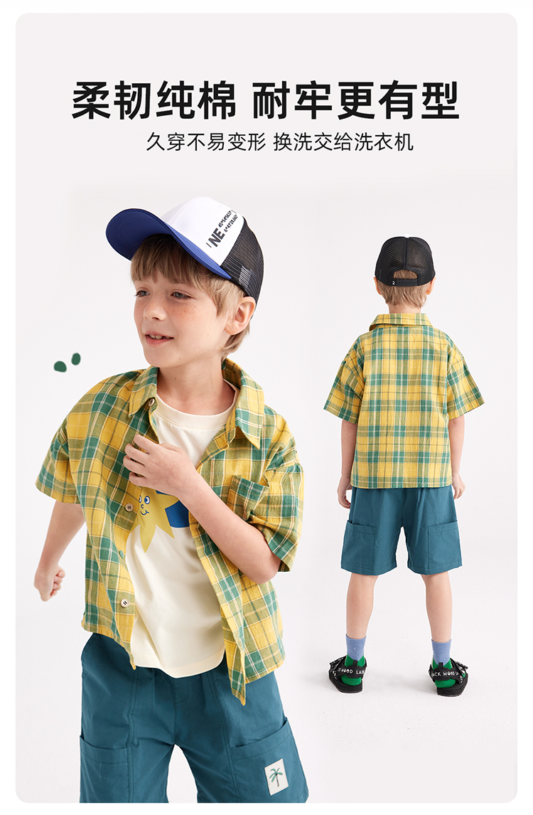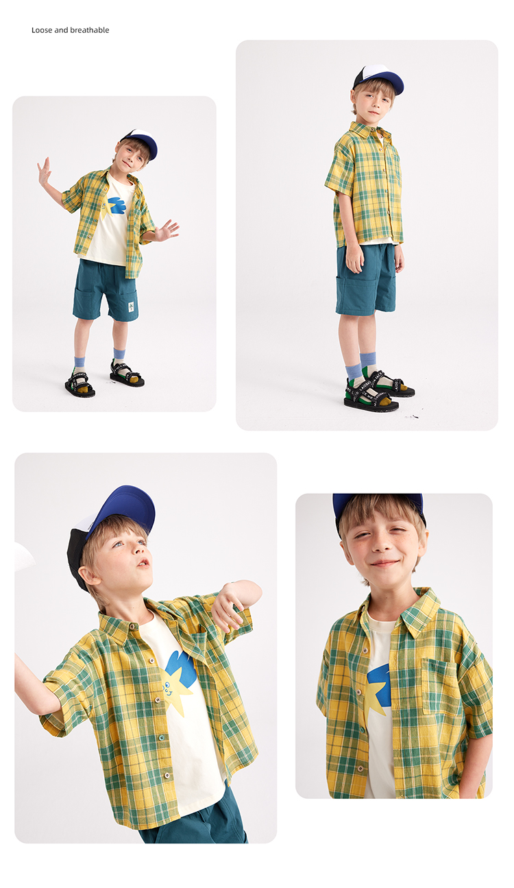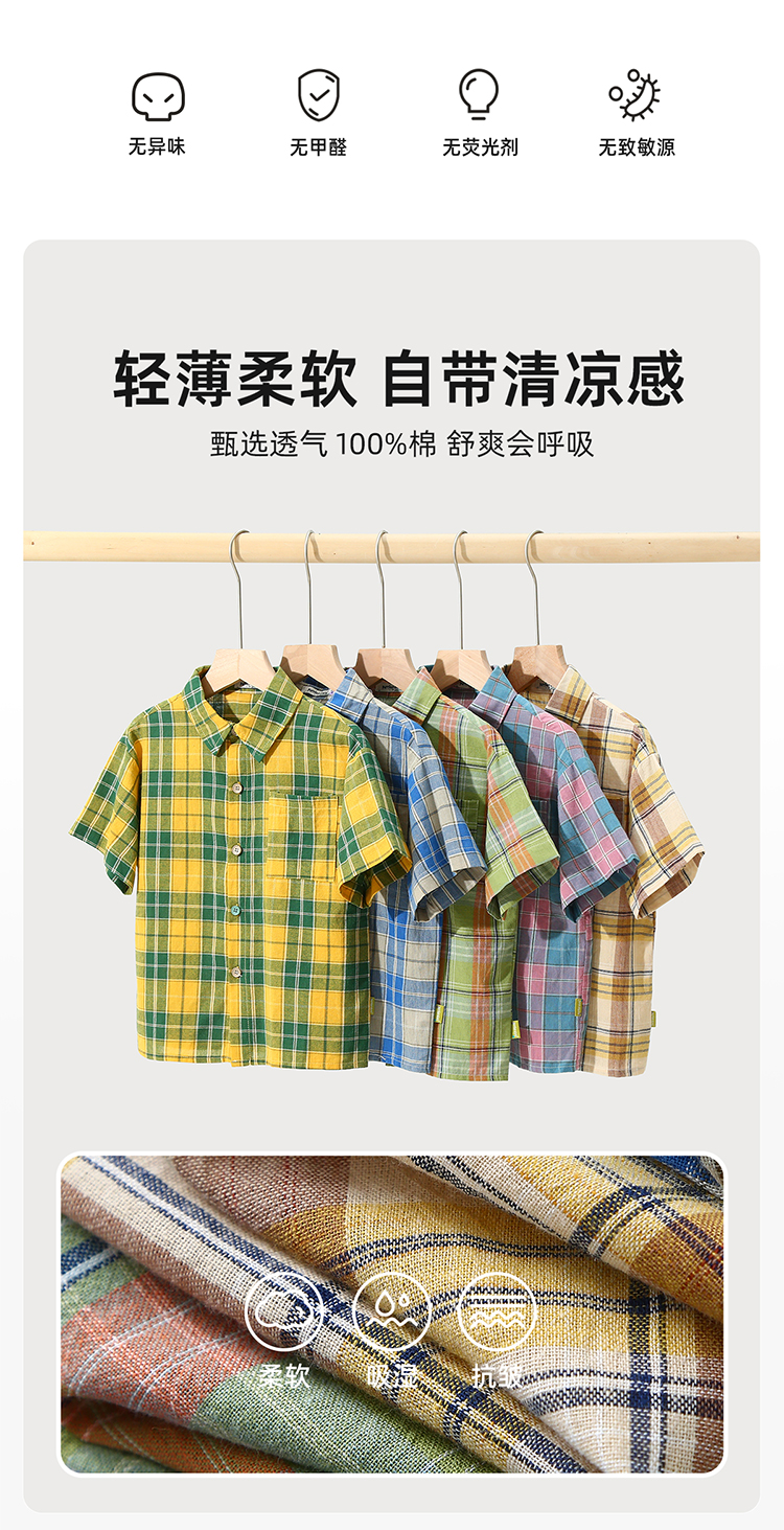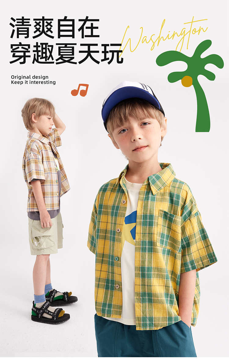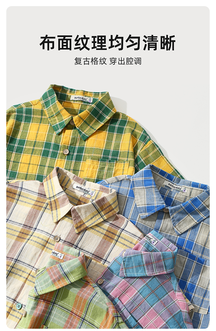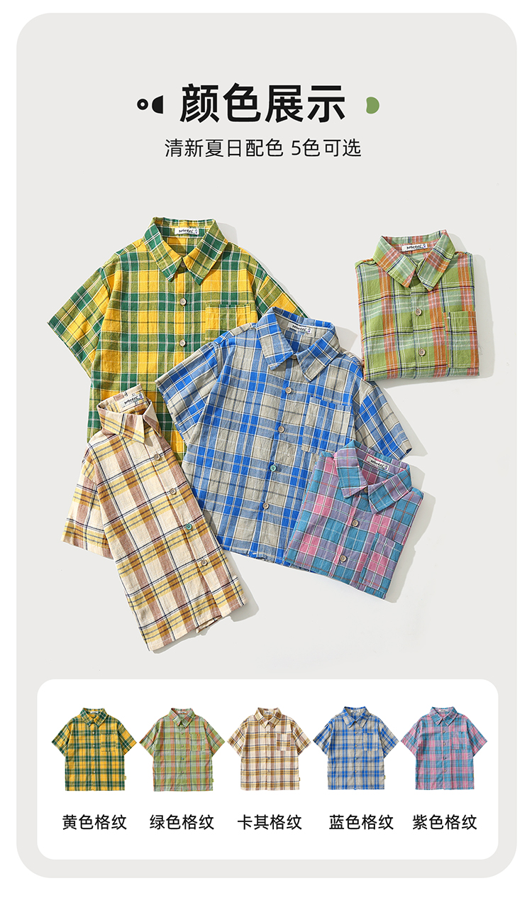 美式潮酷轻薄格纹短袖衬衫PXCS2315