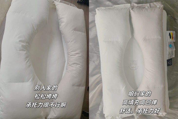 这款枕头太赞啦👍!双倍超细羽丝绒填充,触感超柔软,还不易塌陷 零压力释压设计,缓冲释压,避免肌肉受压,减少夜间翻身,舒缓精神压力,助你轻松入睡😴 而且它有慢回弹特性,回弹张力好,支撑性能佳,能缓解颈部疲劳,兼顾身体支撑与平衡