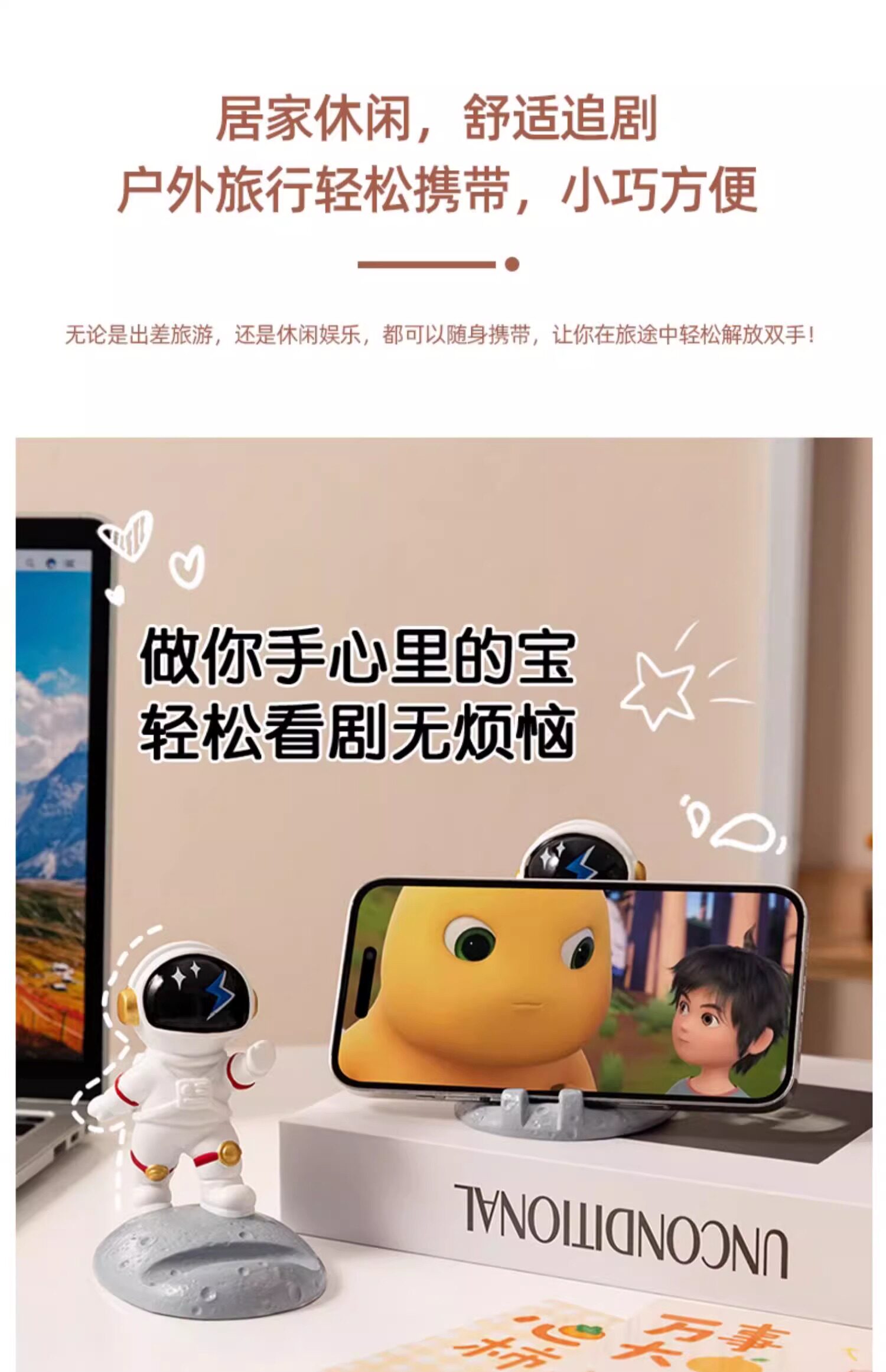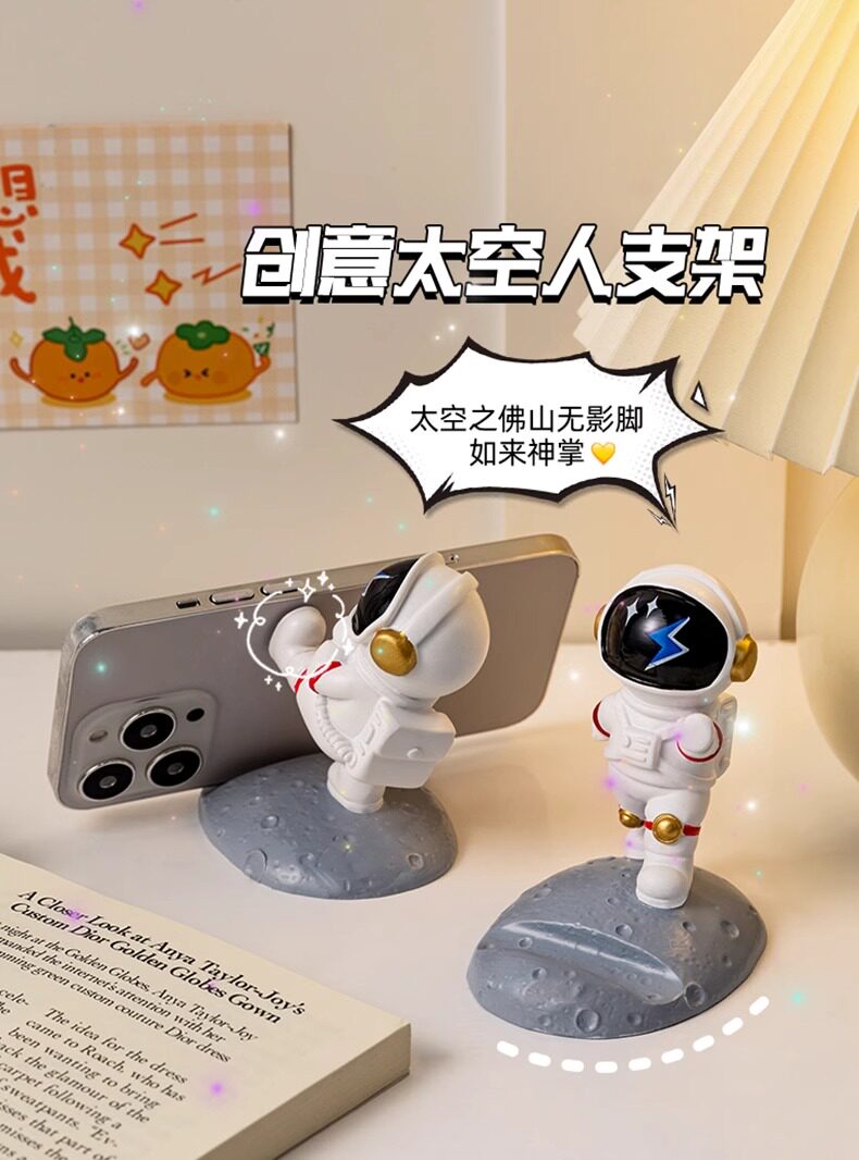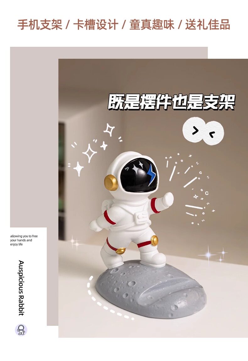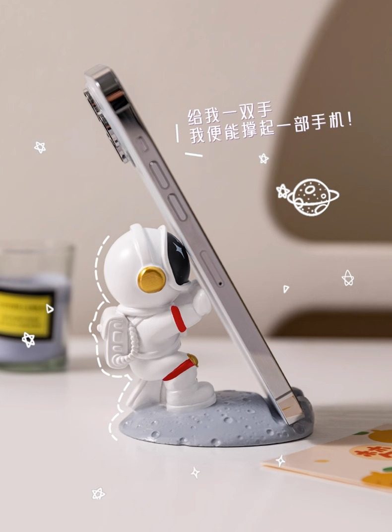 【宇航员创意造型、树脂材质环保健康】宇航员手机支架太空人创意手办礼品装饰工艺品DIY摆件桌面手机架.TA