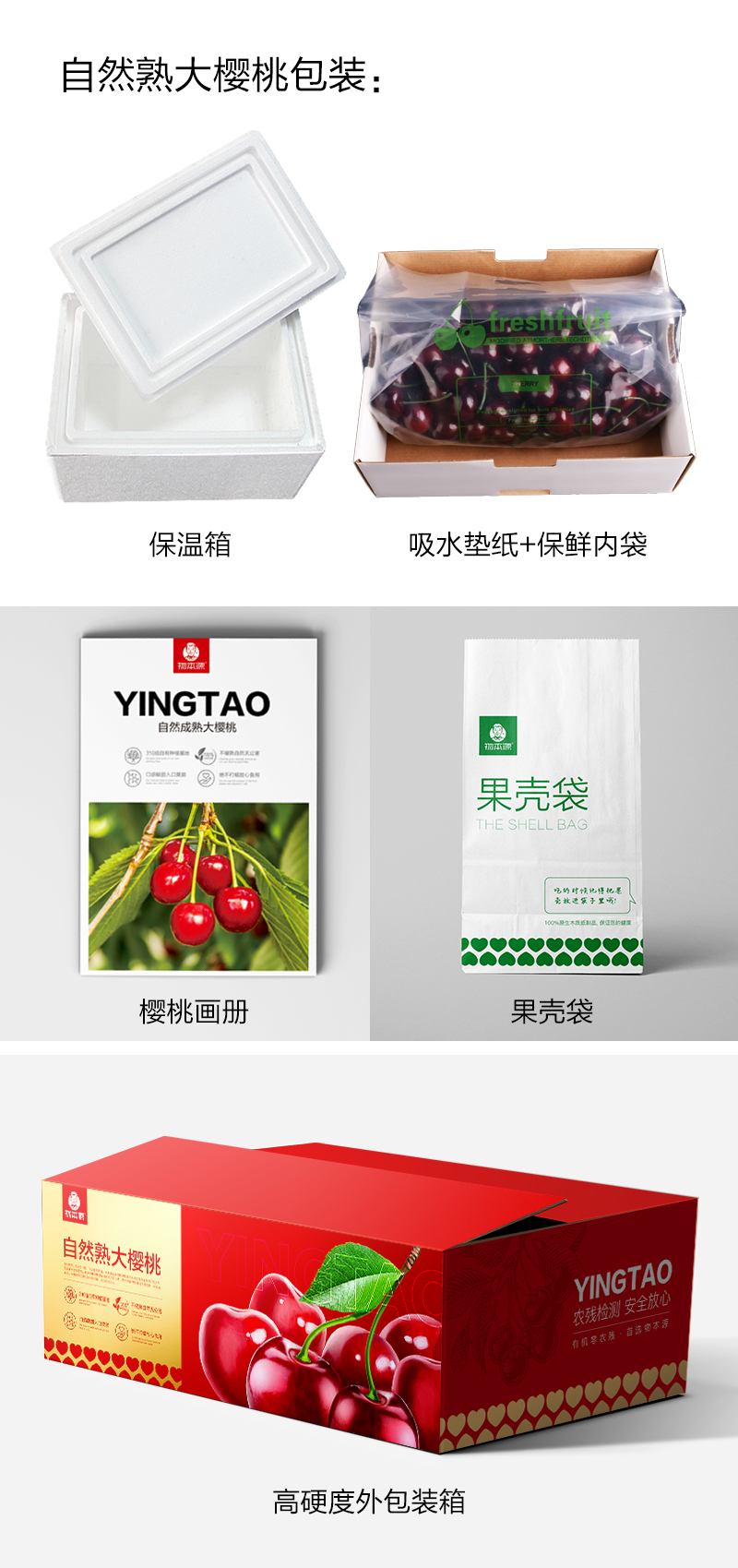 【售后标准】:所有樱桃现摘现发,保证新鲜!樱桃娇嫩,不耐运输,运输途中难免会有个别磕碰挤压,每箱都会多放一点,10颗以内的坏果不做处理。坏果超出10颗部分,请在收货后的24小时之内连同带有我们快递单的箱子拍照,将坏果称重或者数坏果数量,按照扣除快递费后的单价,按比例赔付。
