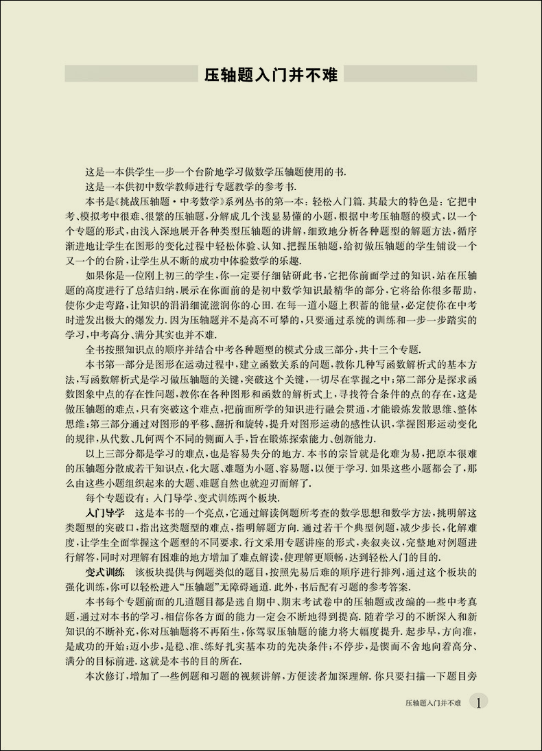 2021版 挑战压轴题 中考数学 轻松入门篇 初一初二初三七八九年级初中复习培优冲刺教辅 真题模拟训练 华东师范大学出版社