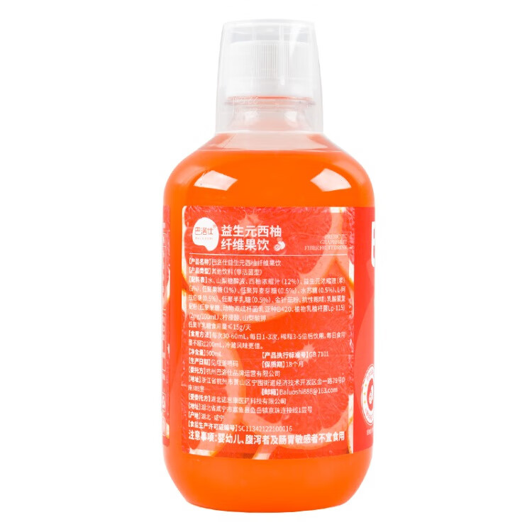 巴洛仕益生元西柚纤维果饮500m1