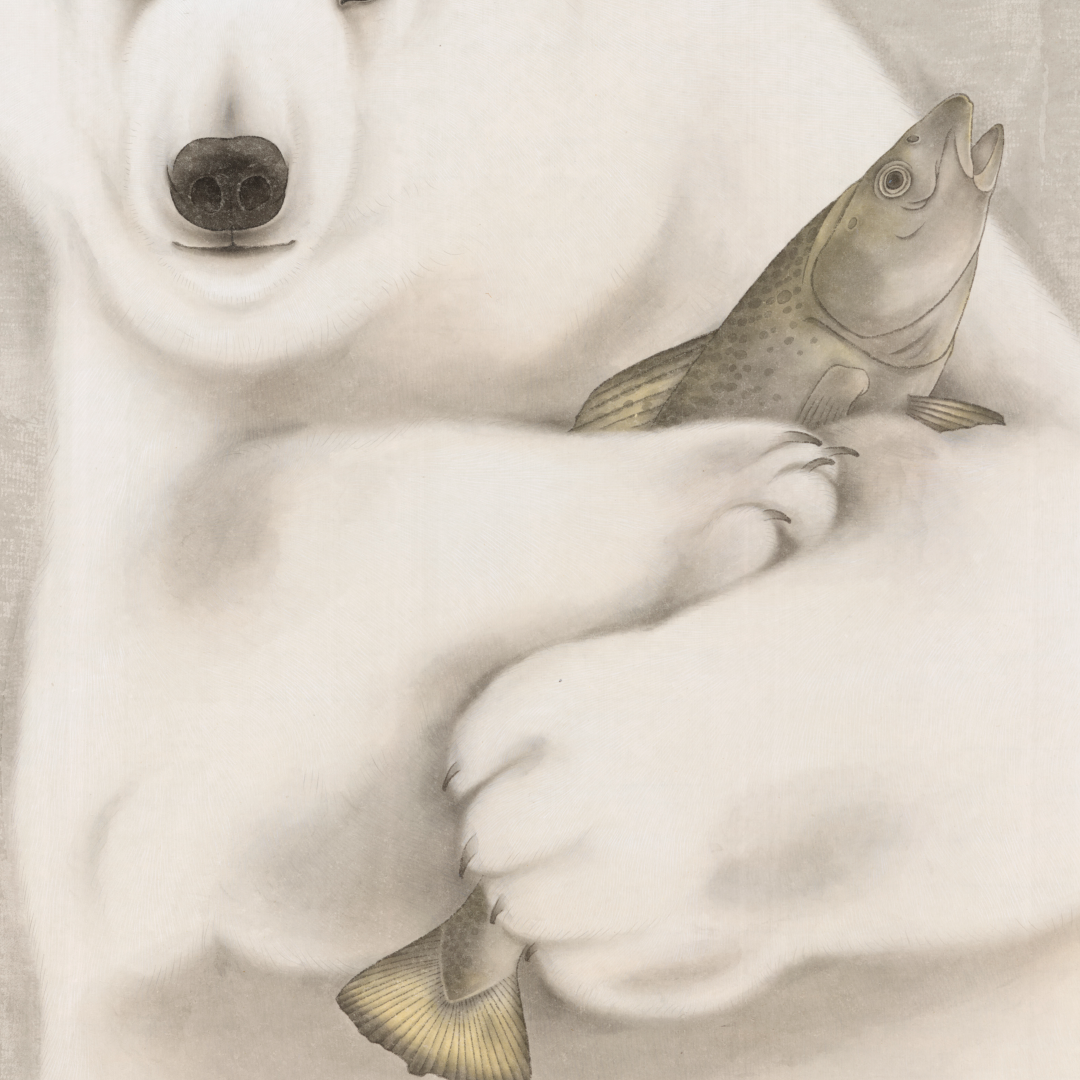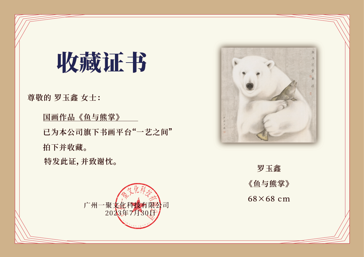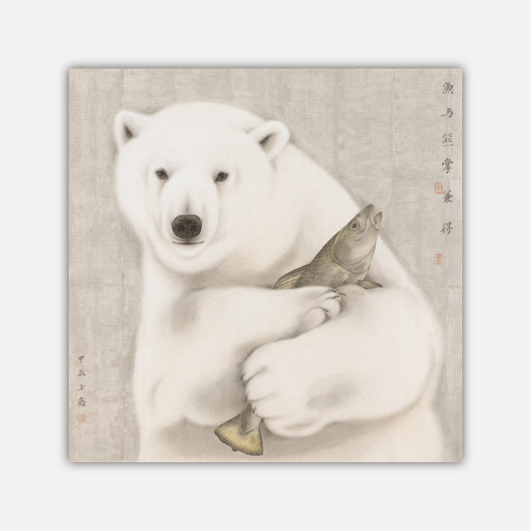 罗玉鑫国画68x68CM《鱼与熊掌》一手绘纸本工笔国画作品[原作编号GH0396]