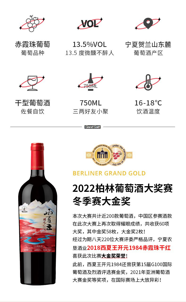 【中国农垦】西夏王开元1984干红(红色标)750ML