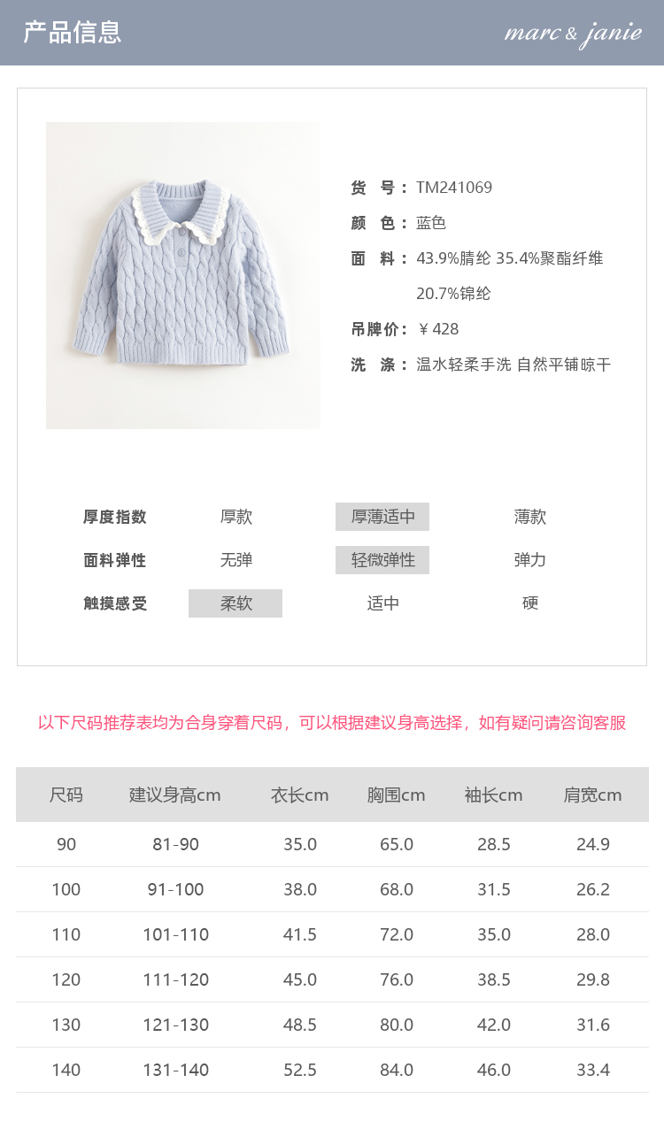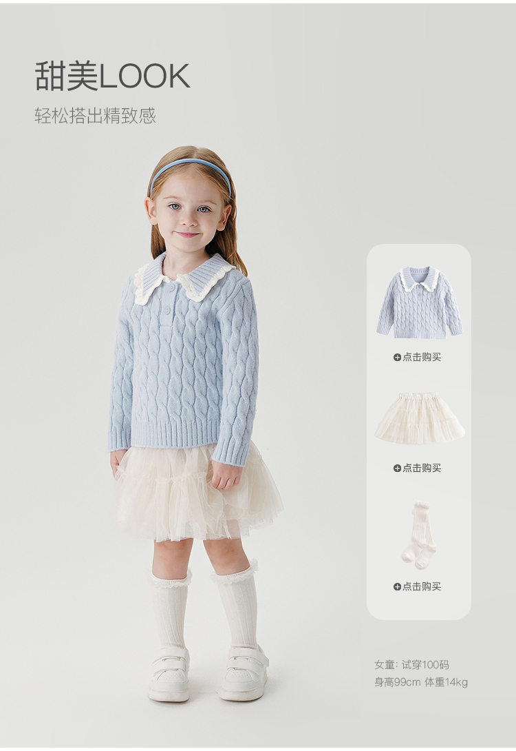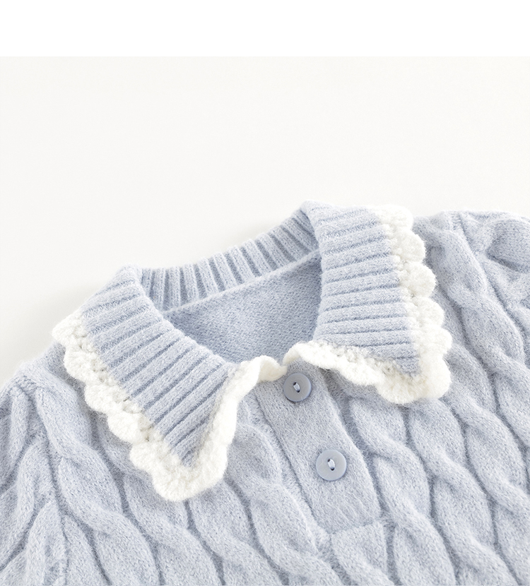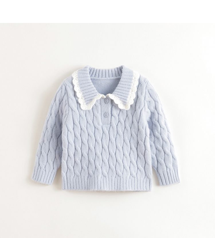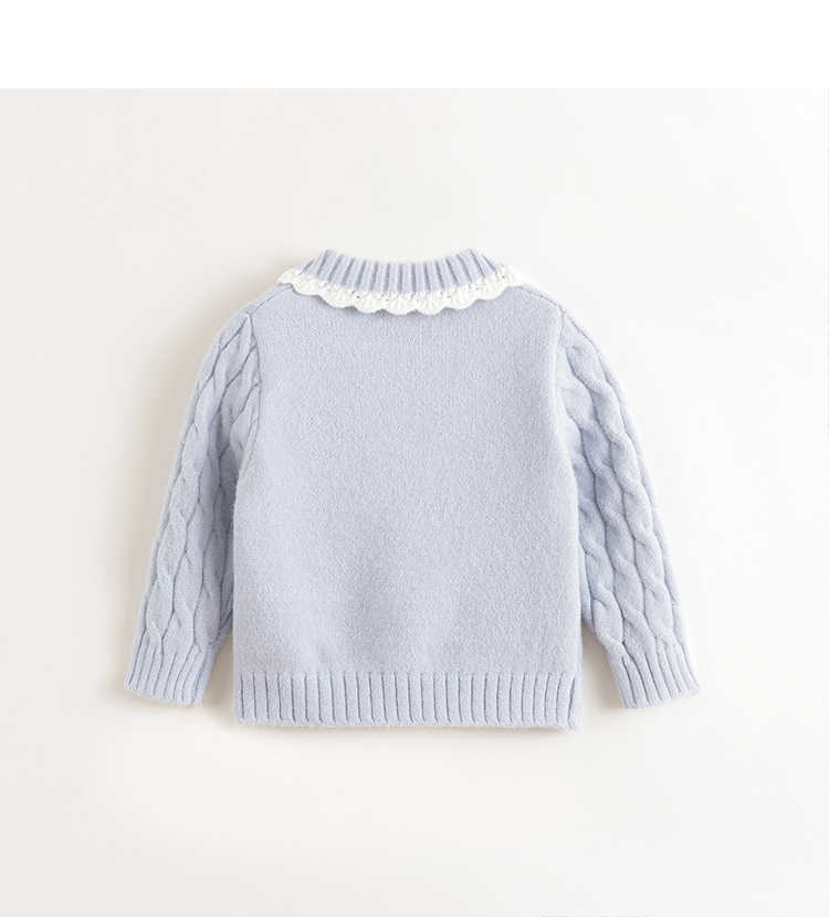 【抗起球】马克珍妮女童北极绒花边领针织衫毛衣春秋款上衣241069