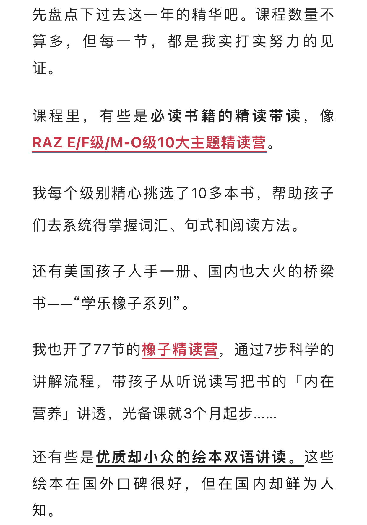 · RAZ E 精读课3节 · RAZ F 精读课3节 ·RAZ M-O 主题三节 · 橡子精读营7节 · 泛读书房18节讲读 · 苍蝇小子 2节
