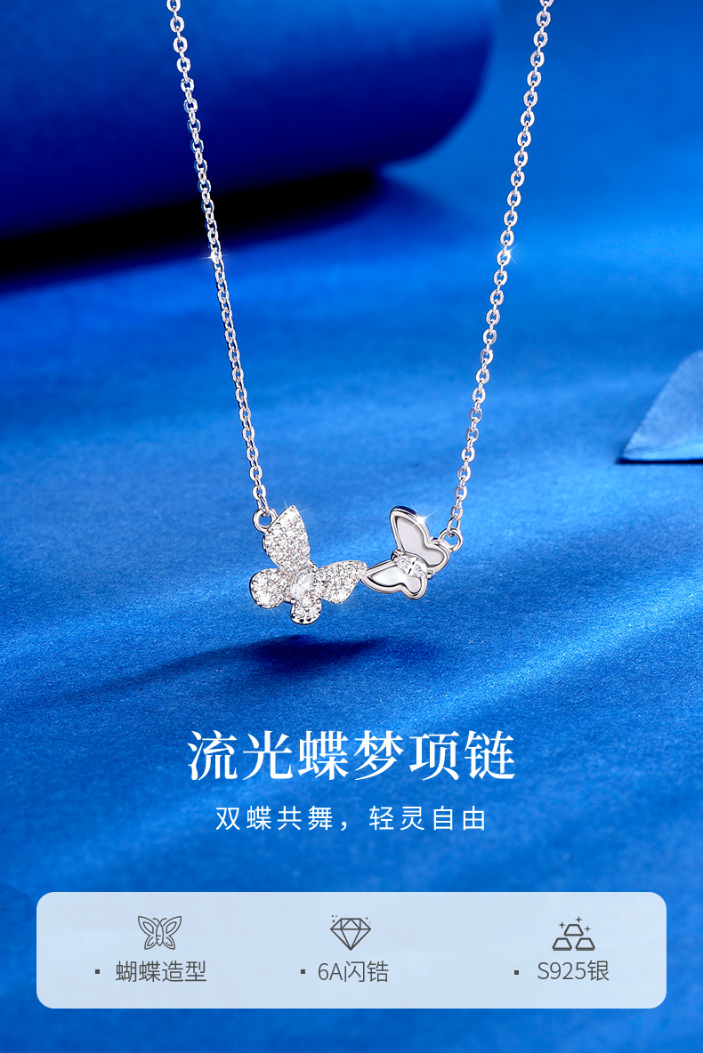 卡蒂罗KADER 流光蝶梦项链 浪漫闪耀璀璨镶嵌闪锆轻奢小众灵动蝴蝶锁骨链 ins风氛围感通勤日常约会百搭