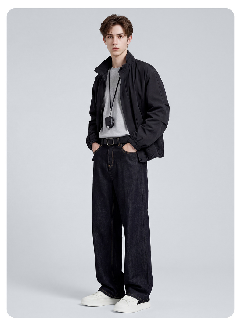 【易打理】圣得西男装立领夹克2026年春季新款拼接美式休闲外套
