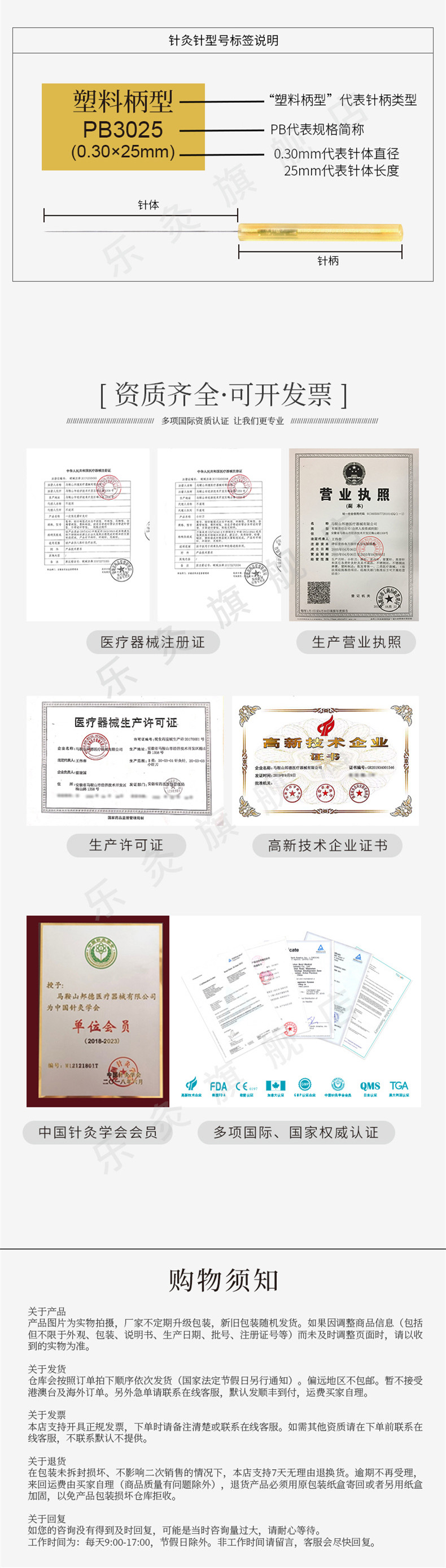 一次性无菌针灸针供具有资格的专业针灸医生使用。