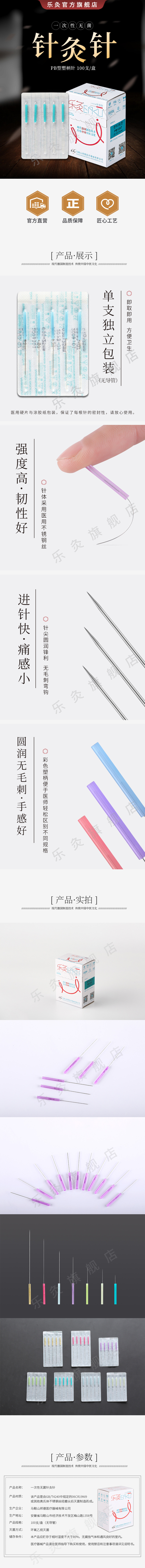 乐灸牌一次性无菌针灸针 塑料柄型PB 100支/盒10盒包装