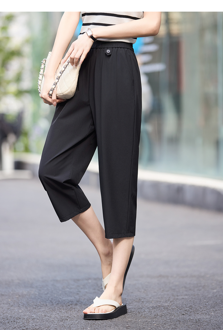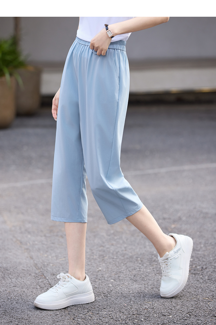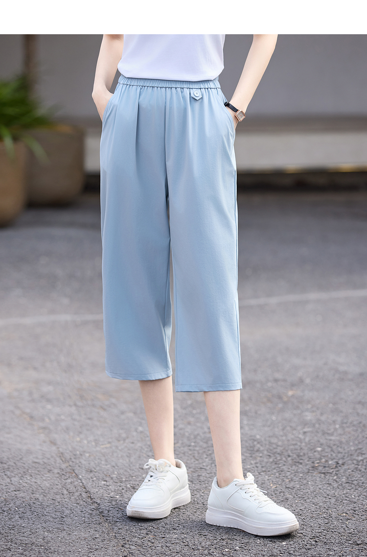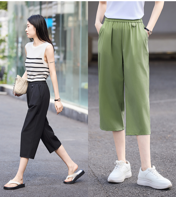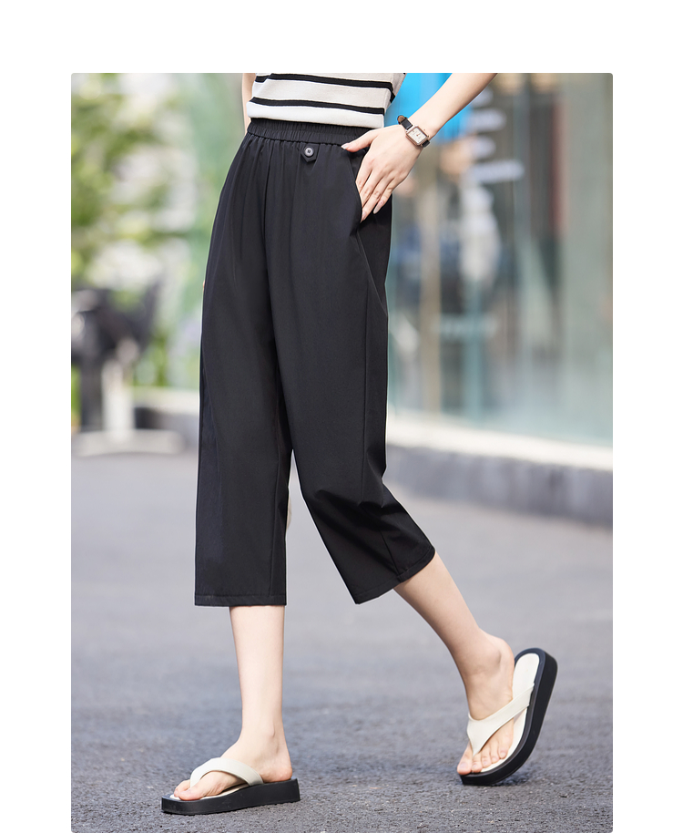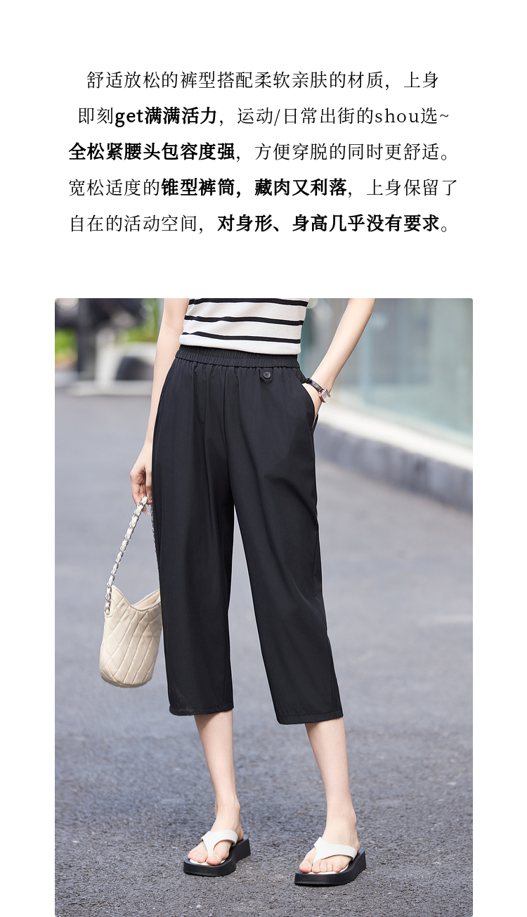 【专属特价】熙世界七分休闲裤女夏季2025年新款百搭高腰垂感宽松阔腿直筒裤子