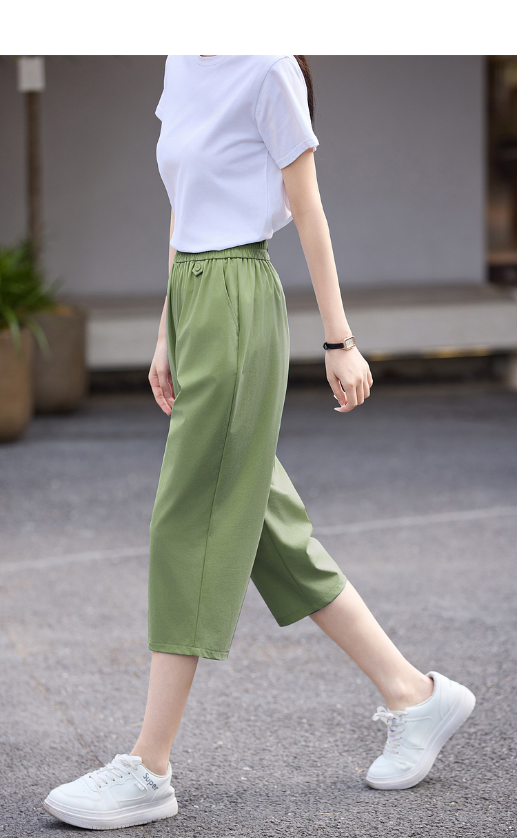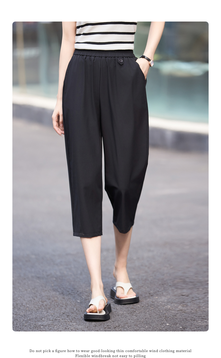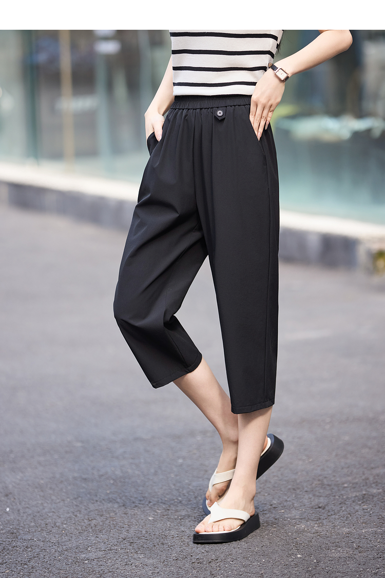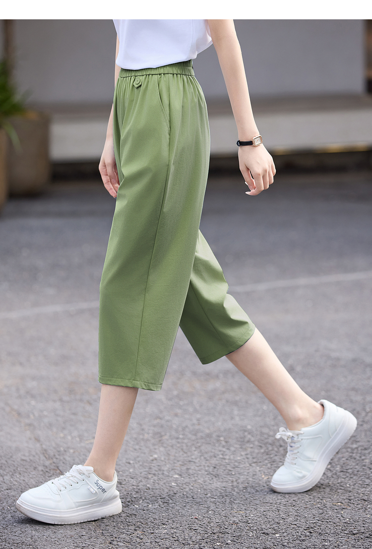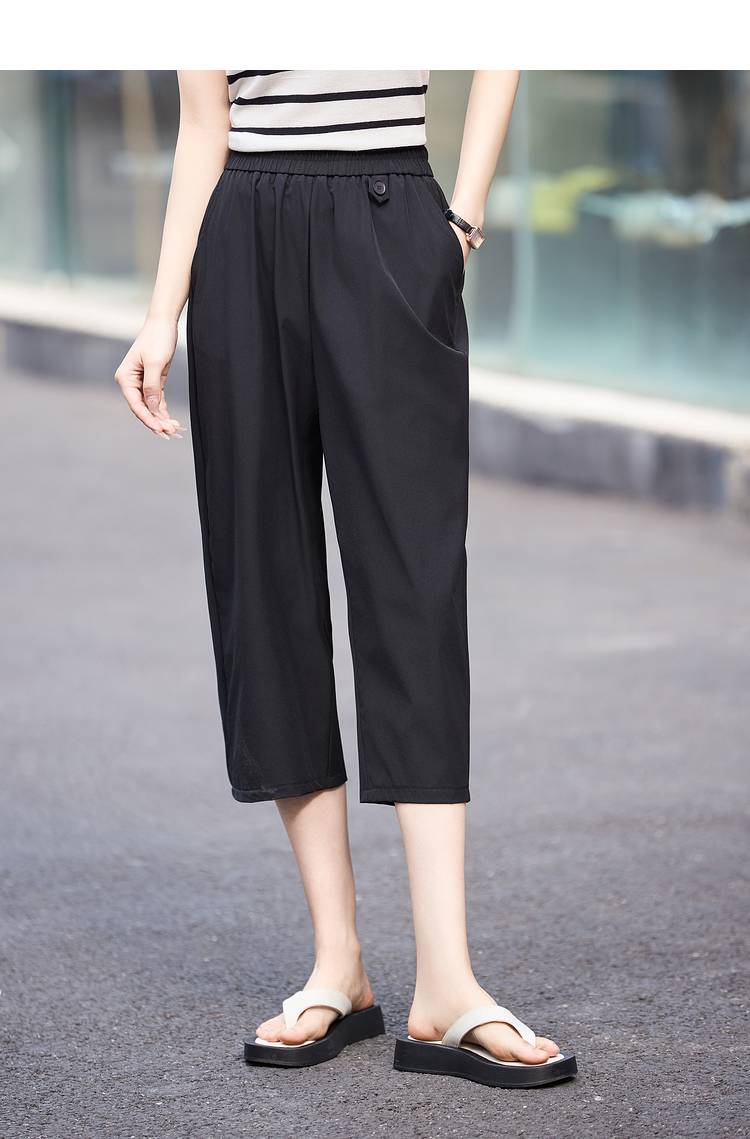 【专属特价】熙世界七分休闲裤女夏季2025年新款百搭高腰垂感宽松阔腿直筒裤子