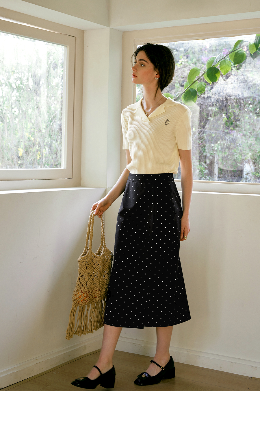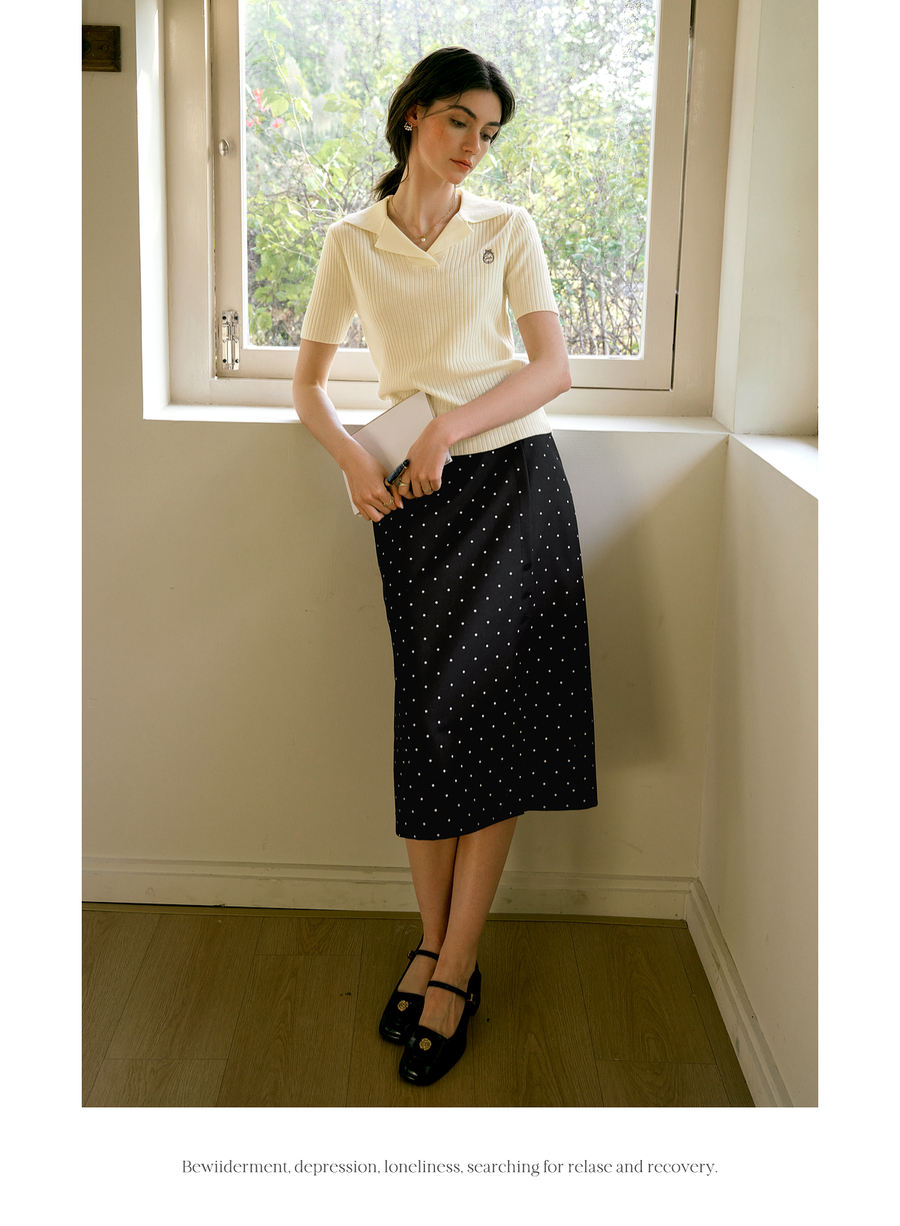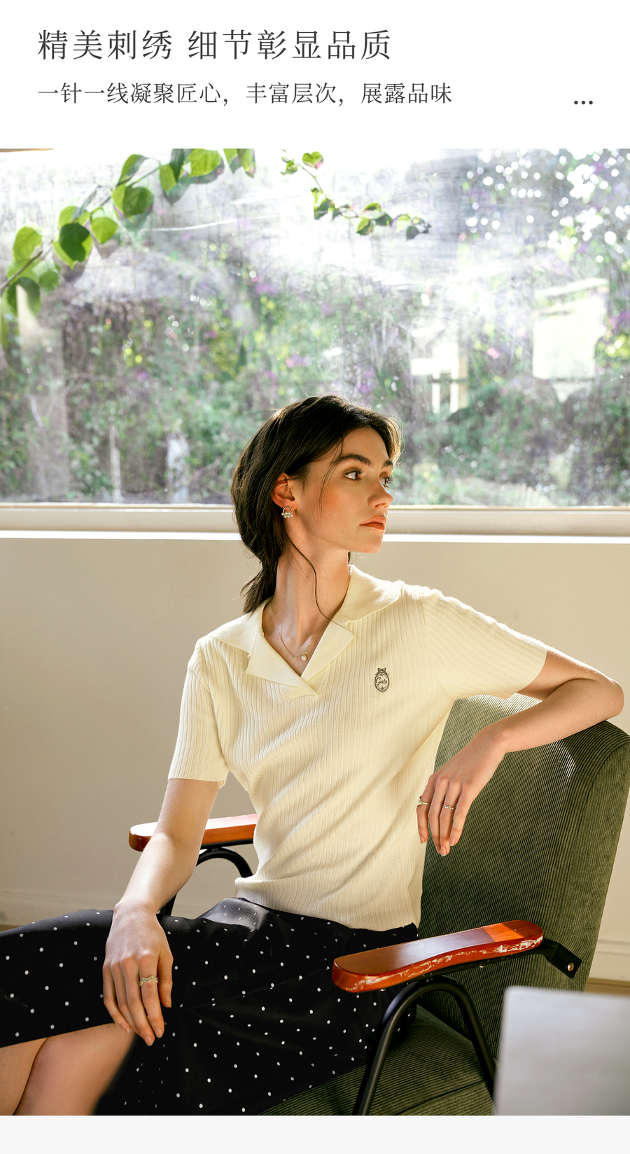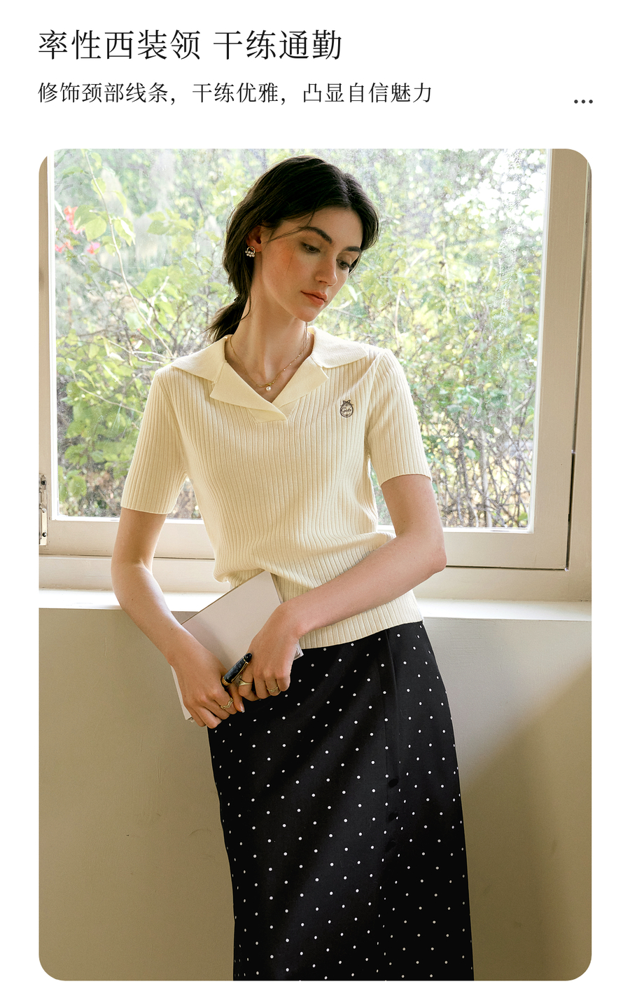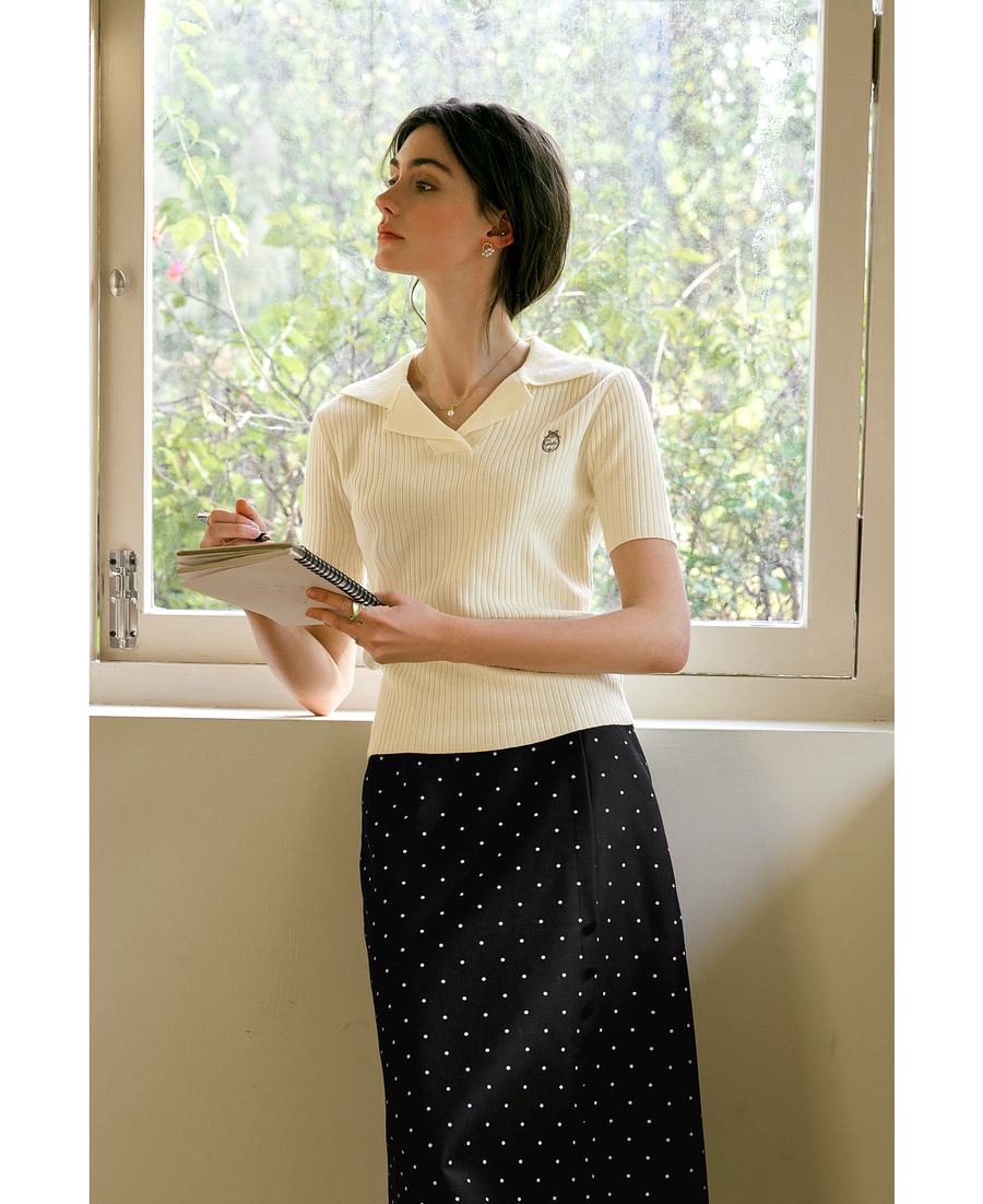欧芮儿2025夏季新款西装领设计通勤风印花刺绣毛针织T恤女上衣