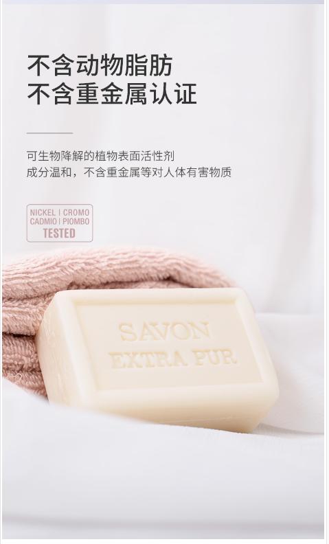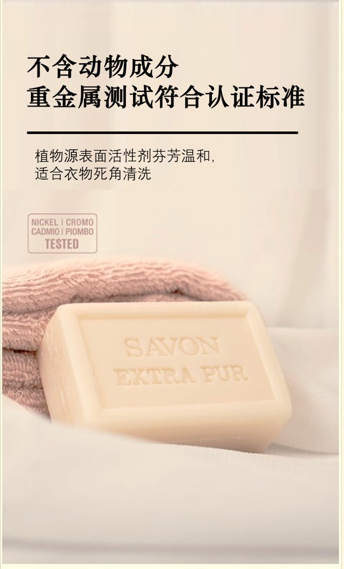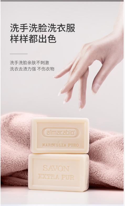 每一块艾贝®马赛皂,都坚持传统工艺结合现代先进技术精工制成,在符合皇家标准基础上再加入了甘油、植物精油等,不仅香气淡雅,悠然,温和,专洗衣物死角。