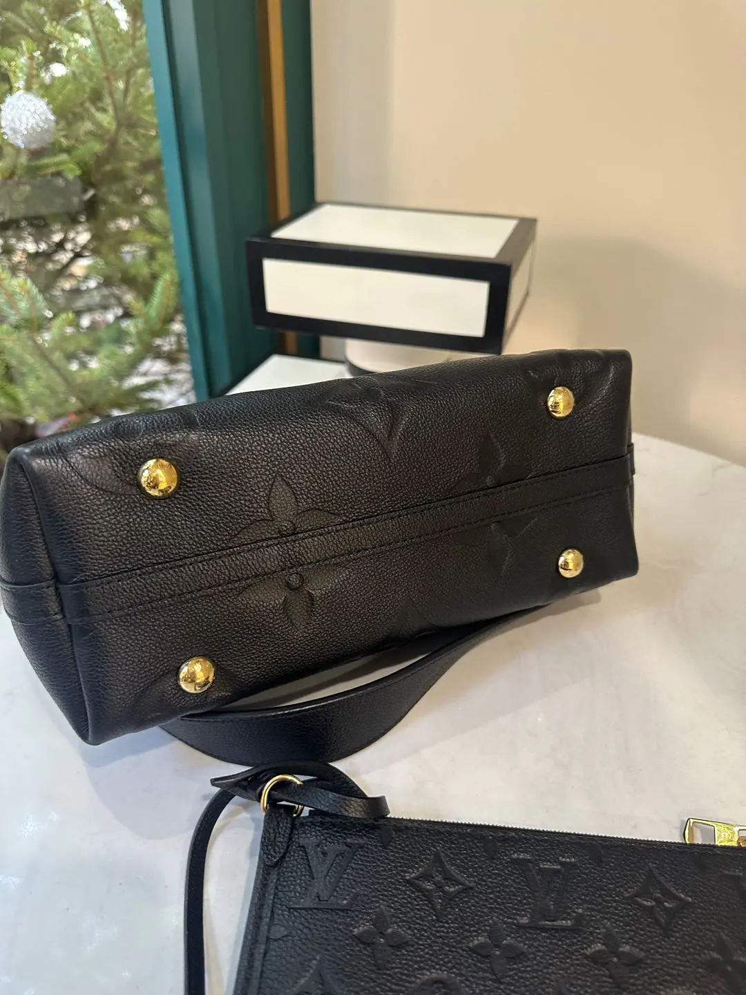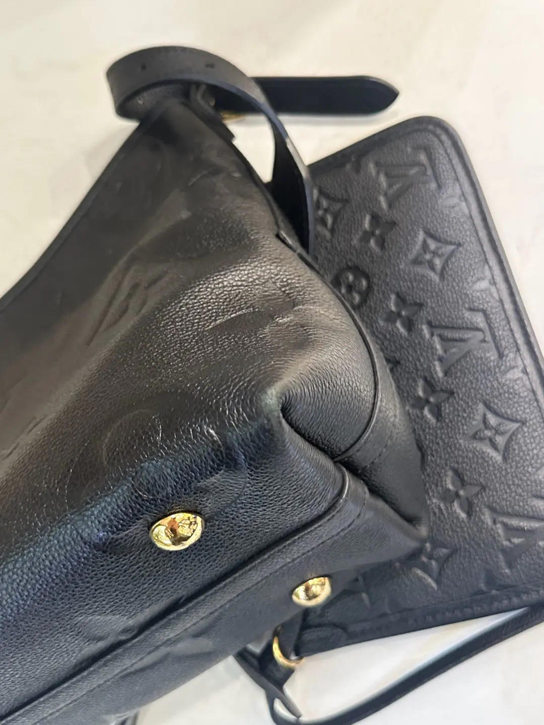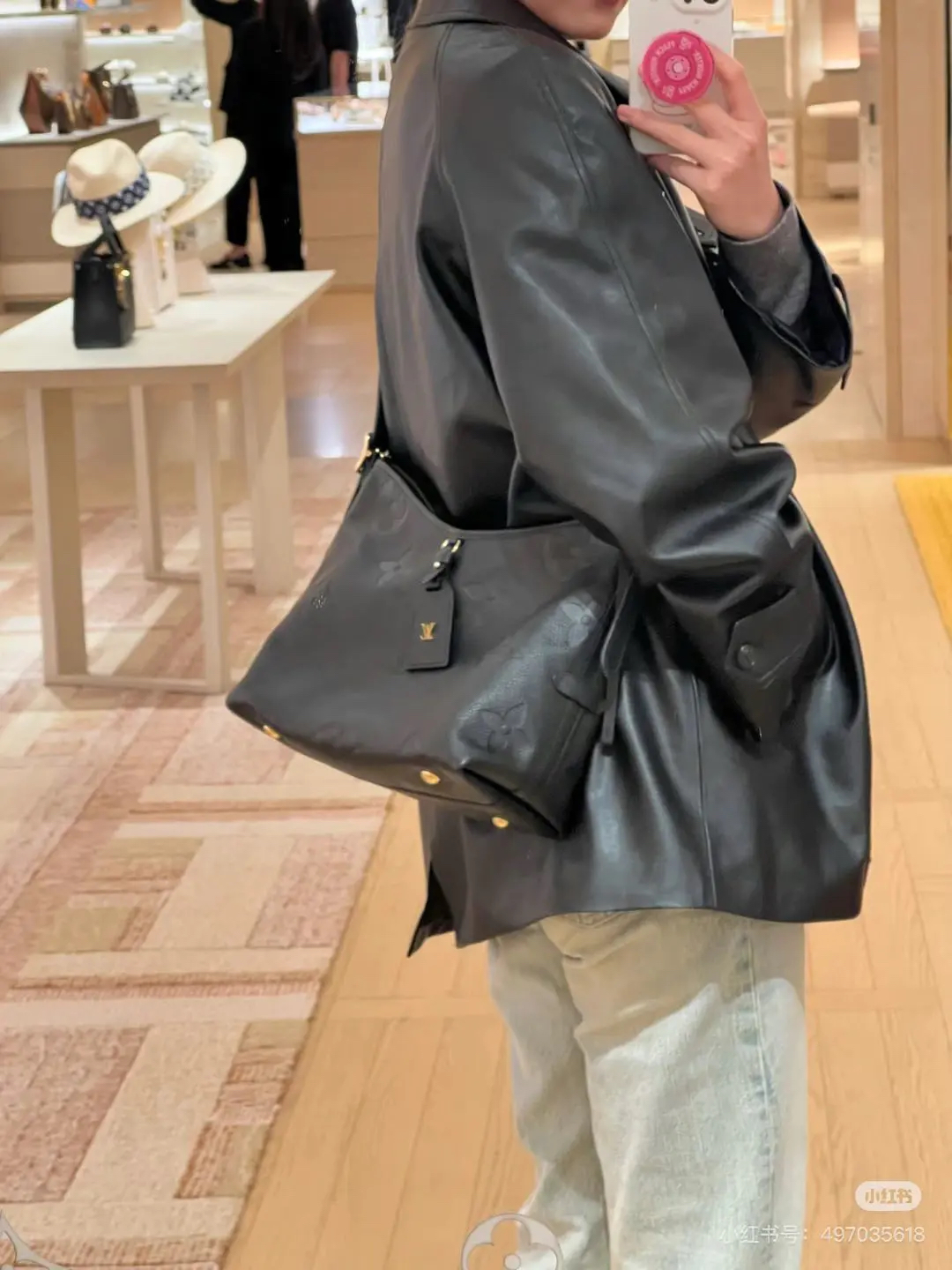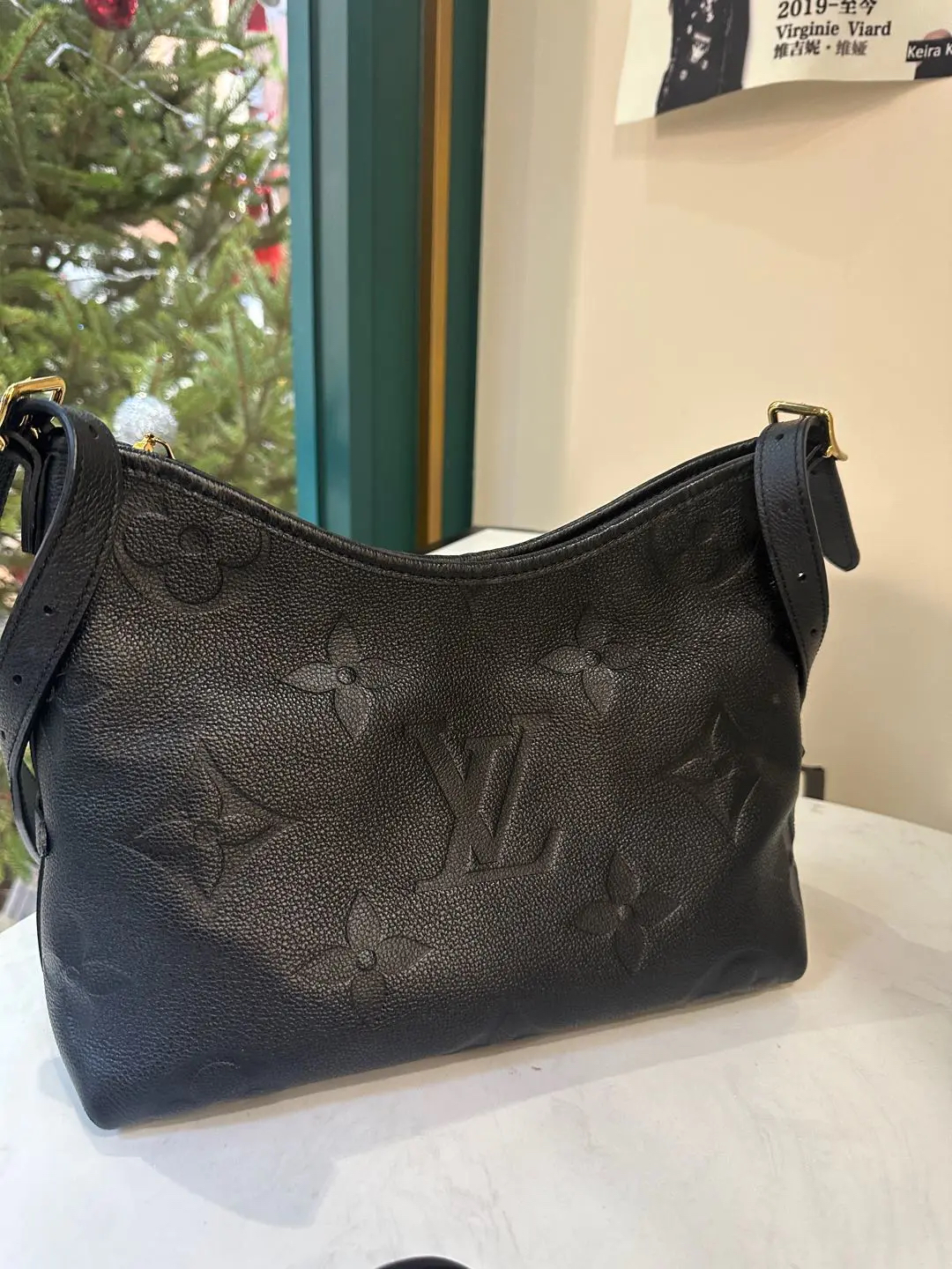 【商品详情】正品二手 LV 黑色 压纹牛皮 小号 carryall 斜挎包👜97新 29*24。配件:肩带 子袋。收纳超方便