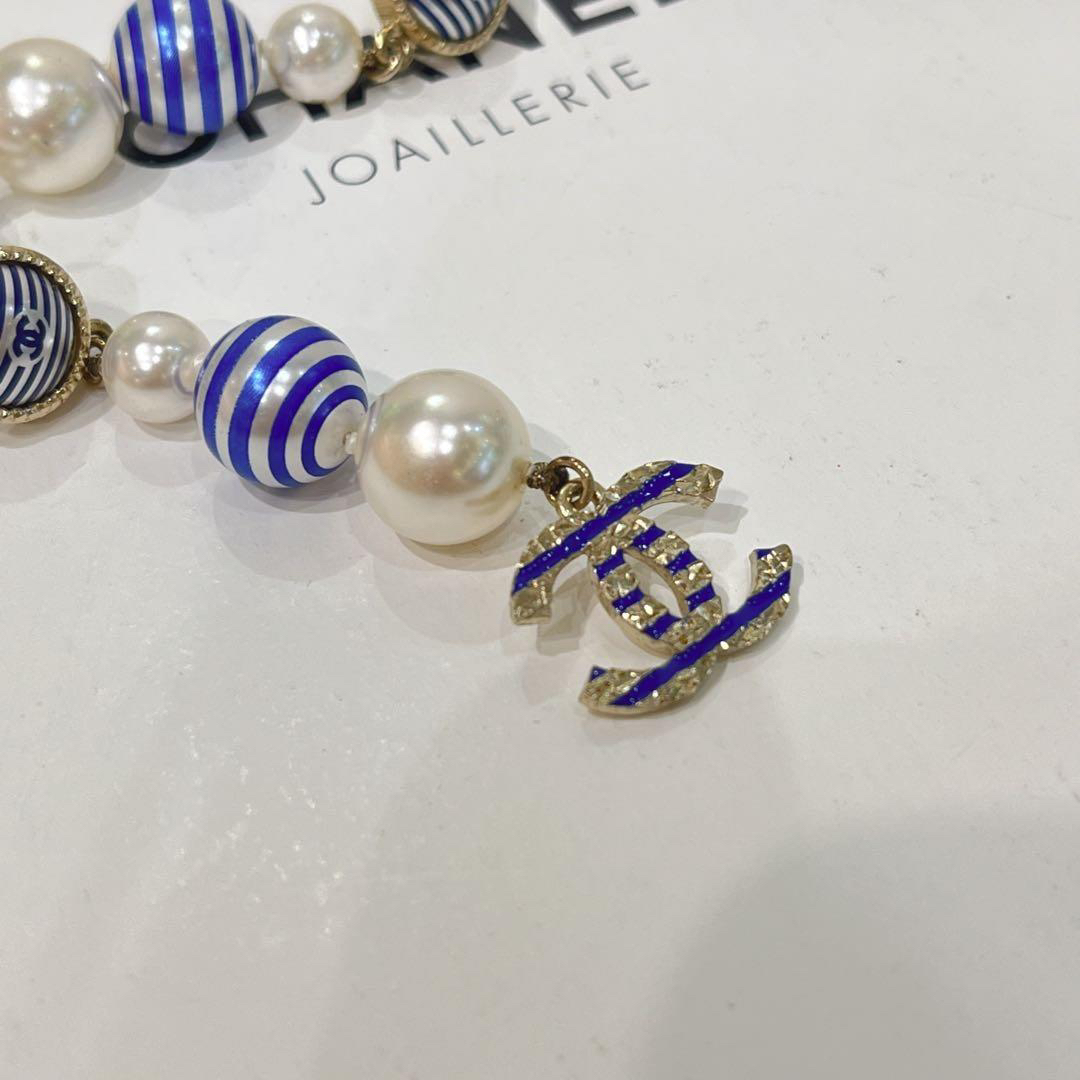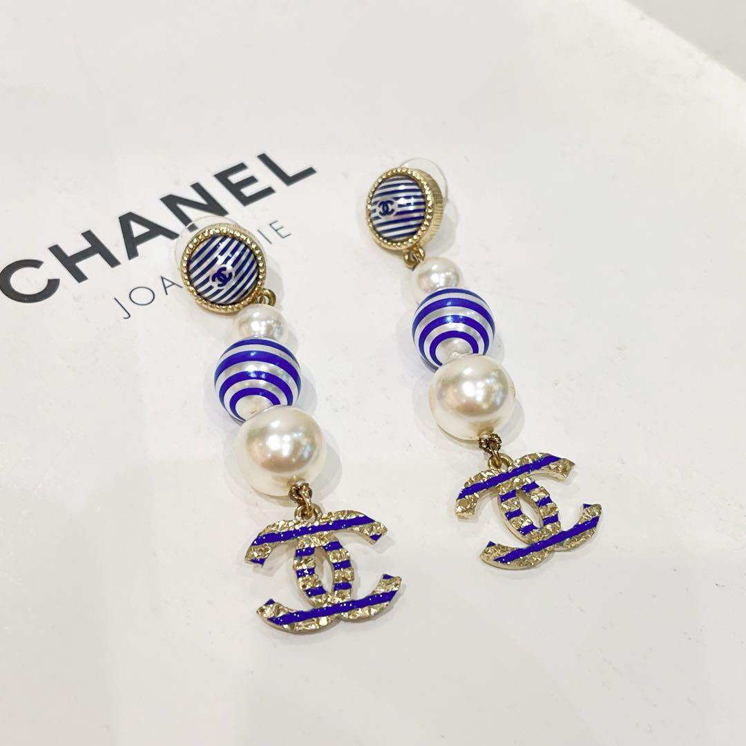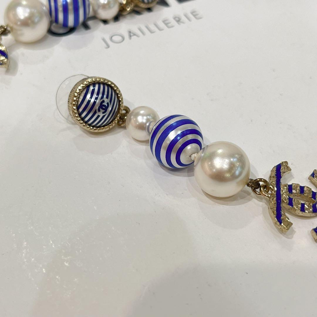【商品詳情】正品二手 Chanel 海军蓝 条纹 珍珠 双clogo 耳环🍭98新 1x7。复古个性时髦