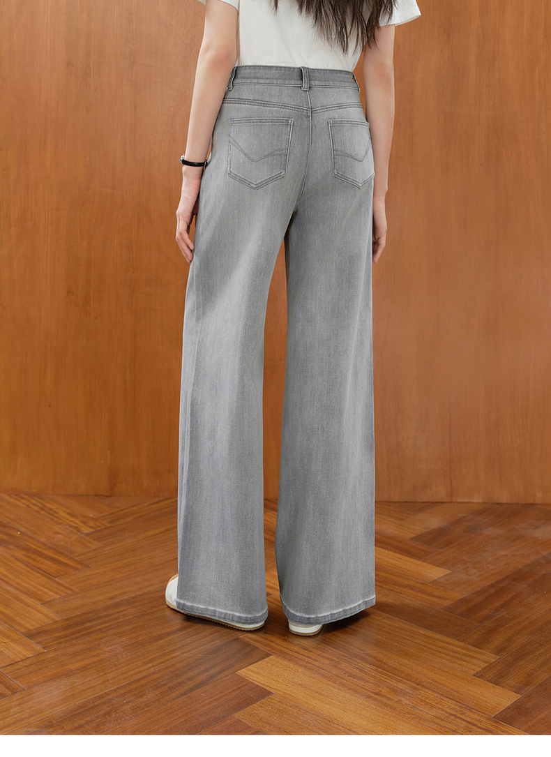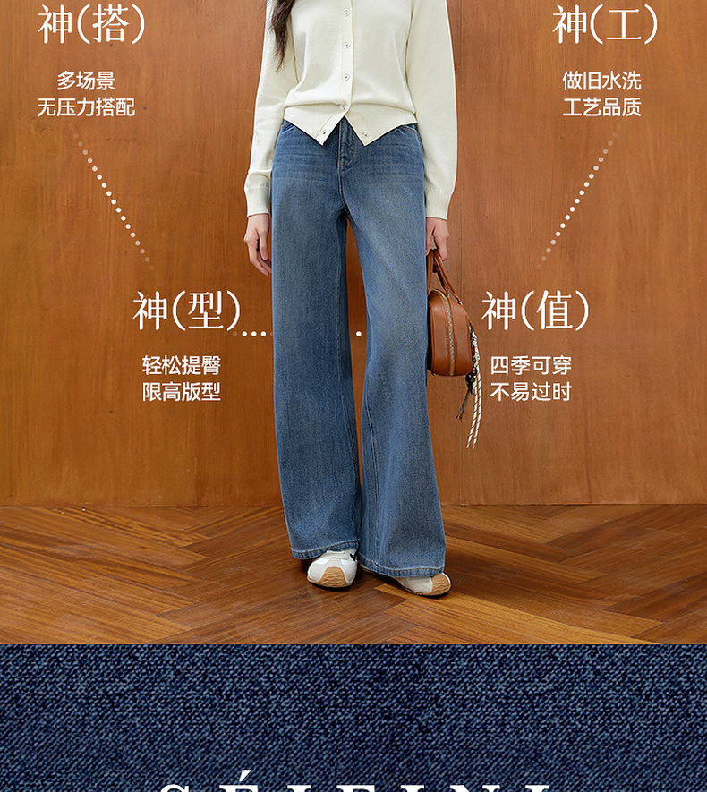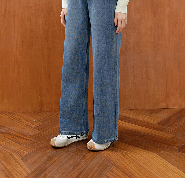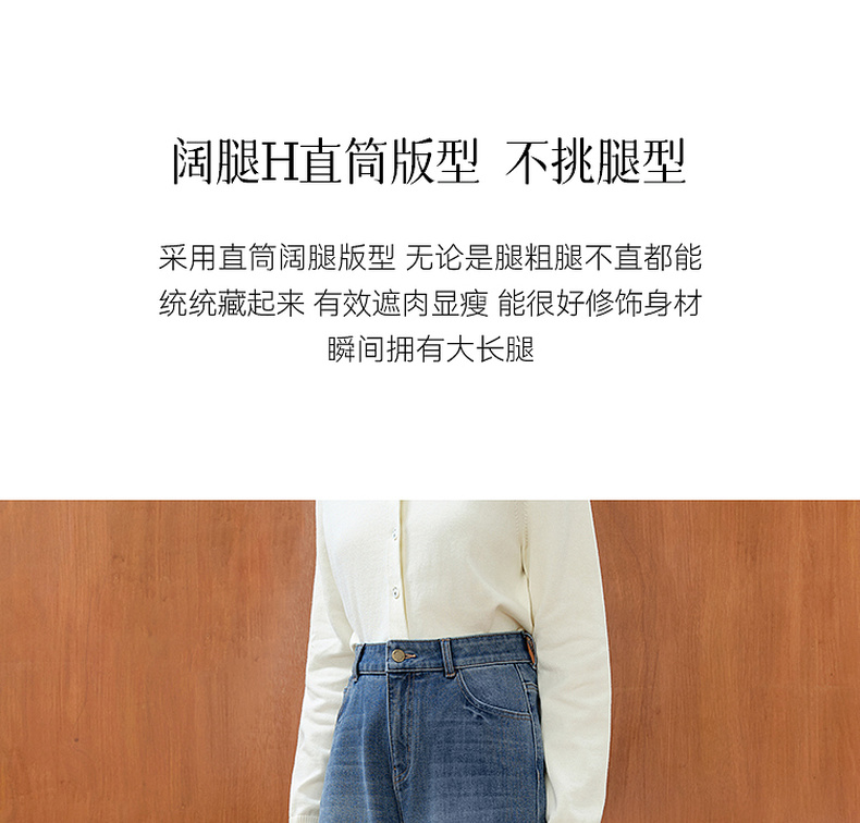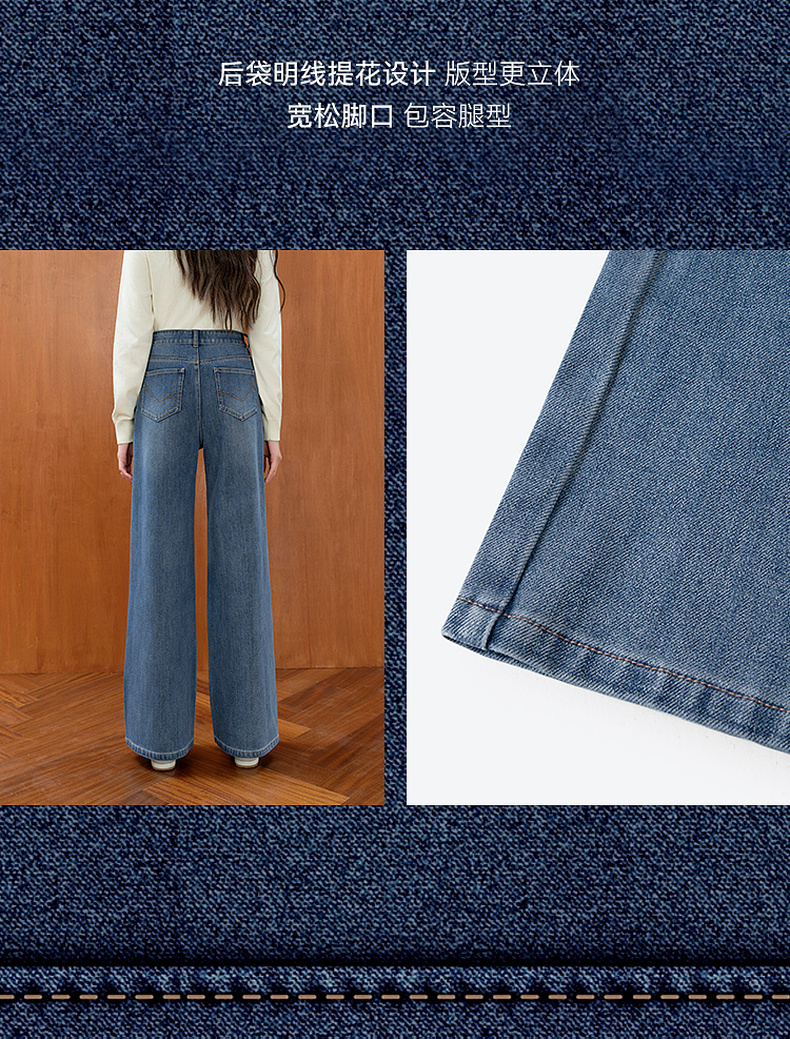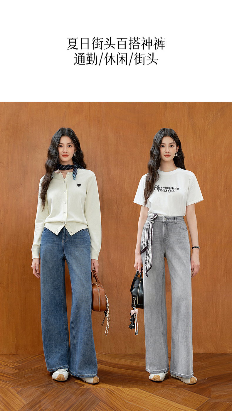 【严选】【四面弹】诗凡黎窄版阔腿牛仔裤2025秋新款高腰直筒垂感显瘦长裤7G6450791