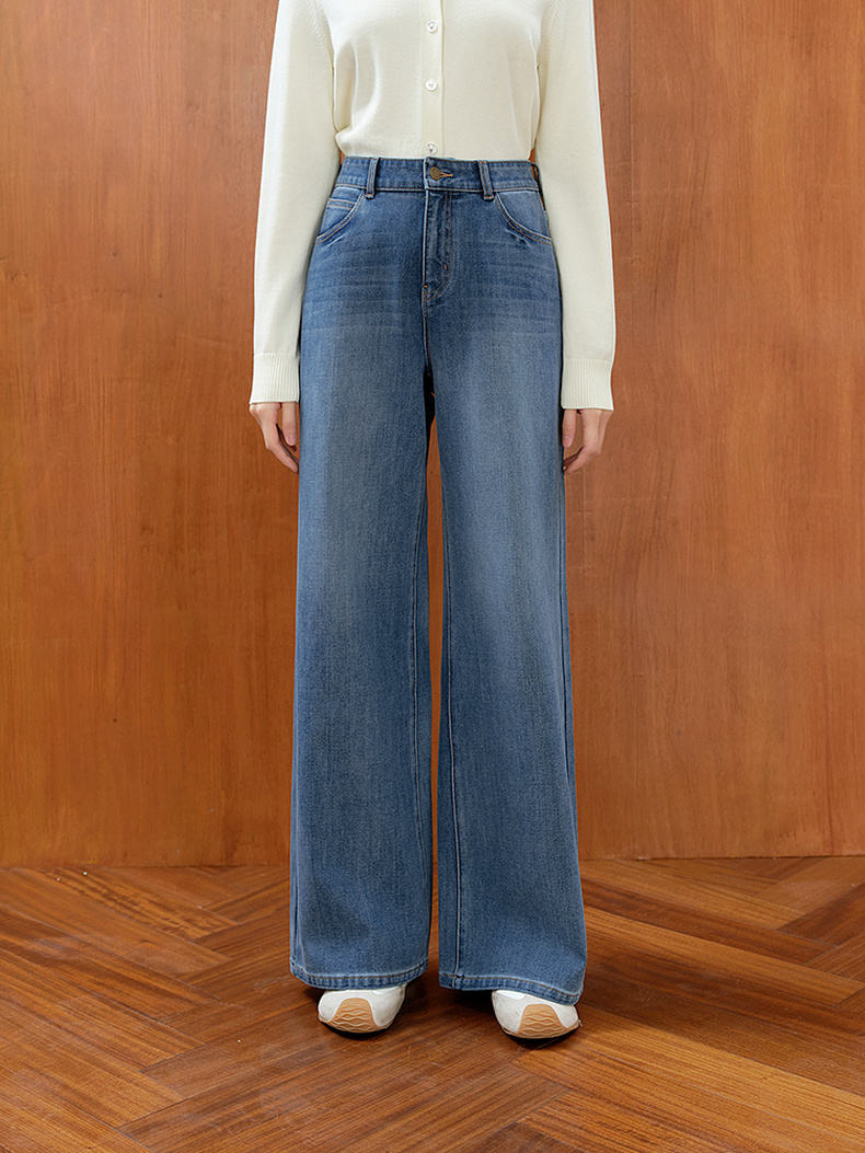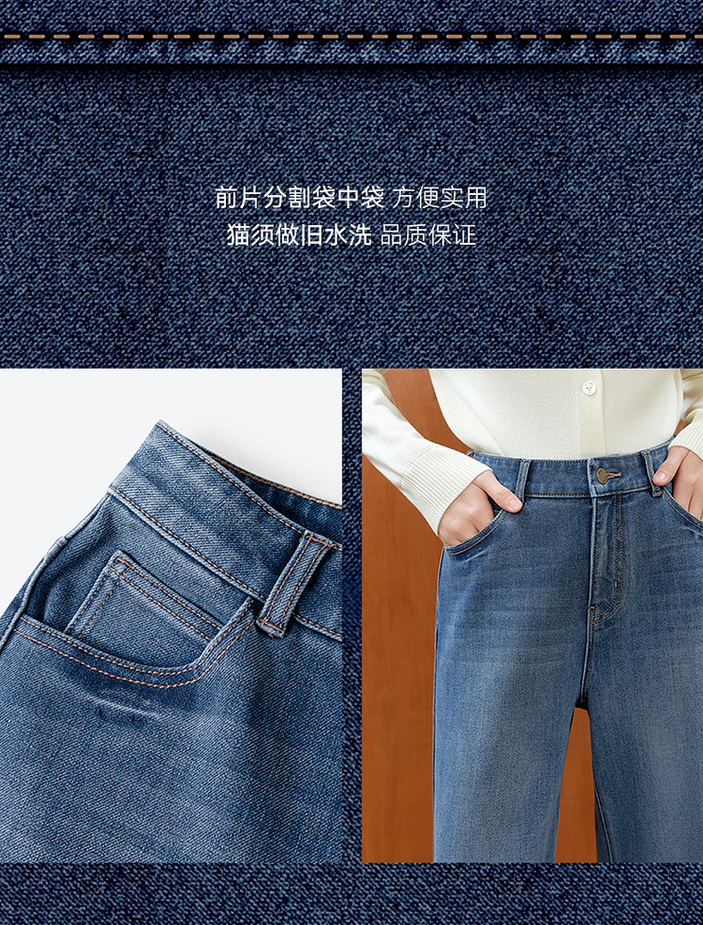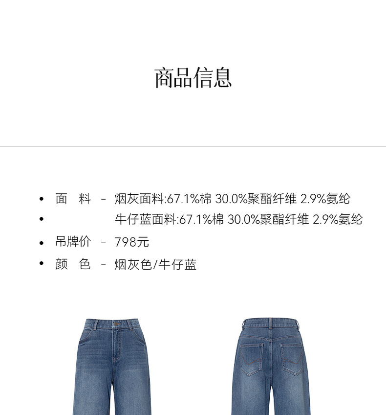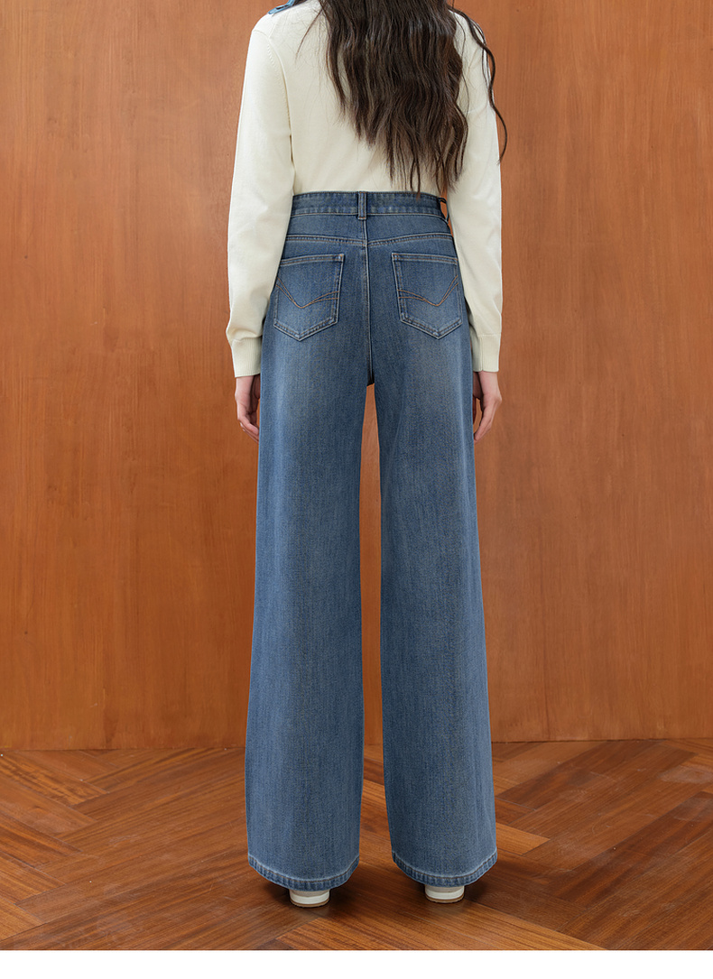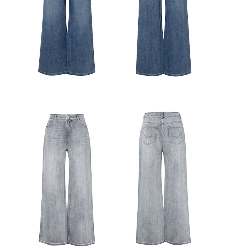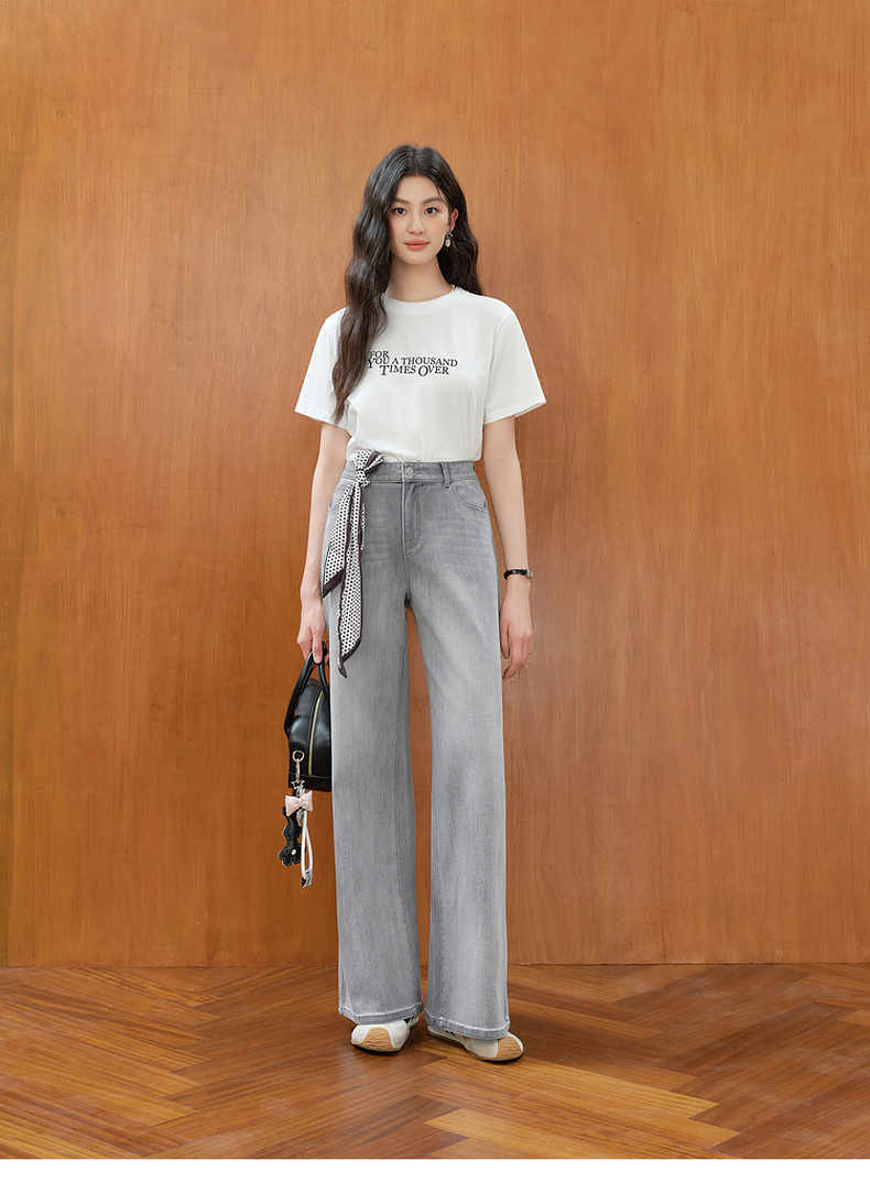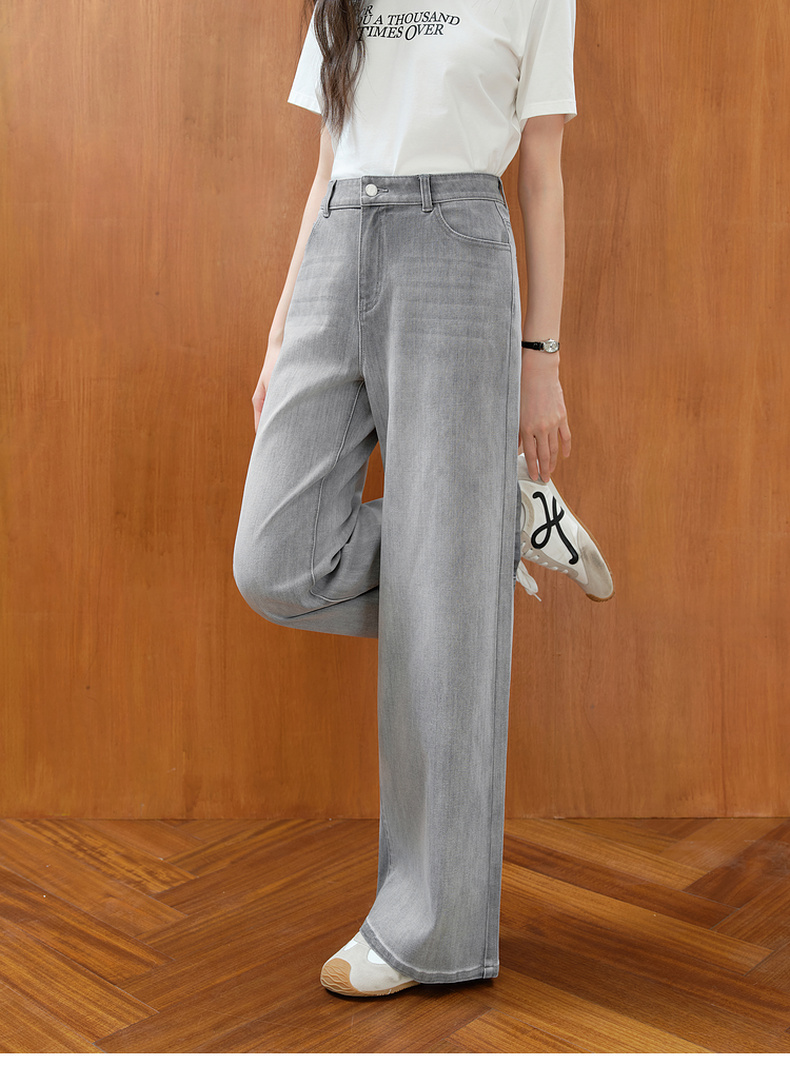【严选】【四面弹】诗凡黎窄版阔腿牛仔裤2025秋新款高腰直筒垂感显瘦长裤7G6450791