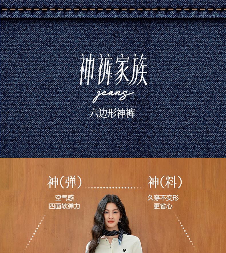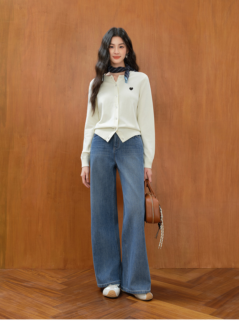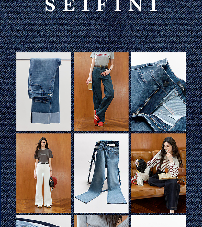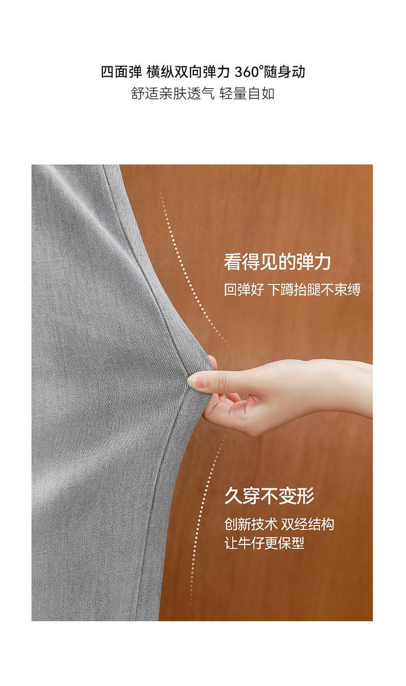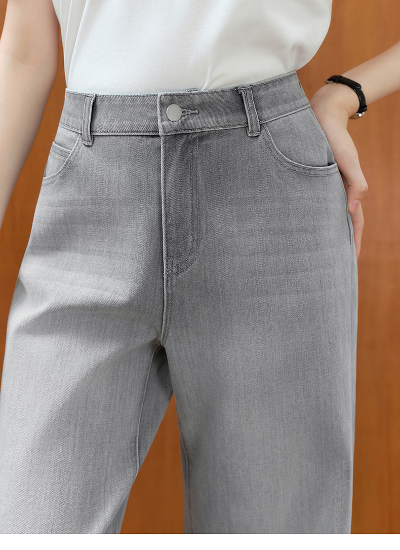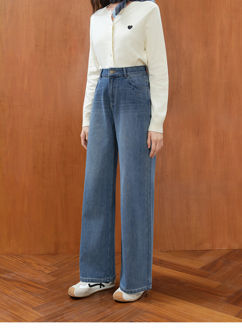 【严选】【四面弹】诗凡黎窄版阔腿牛仔裤2025秋新款高腰直筒垂感显瘦长裤7G6450791