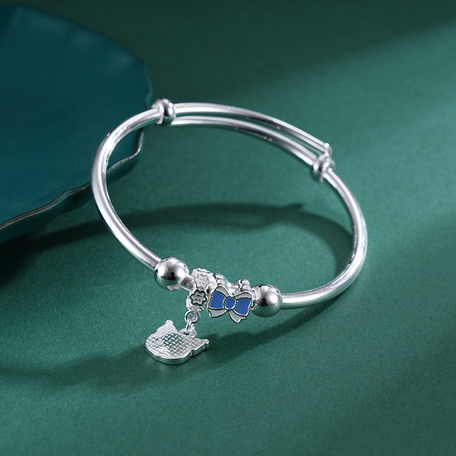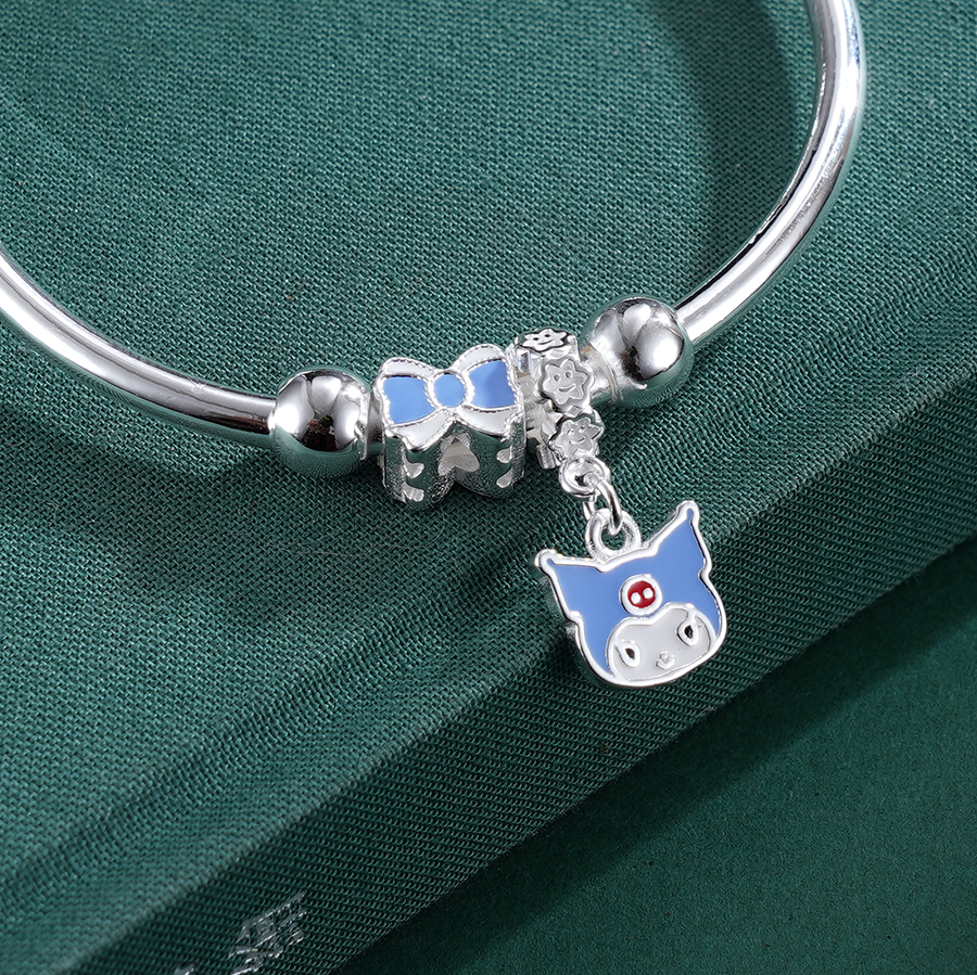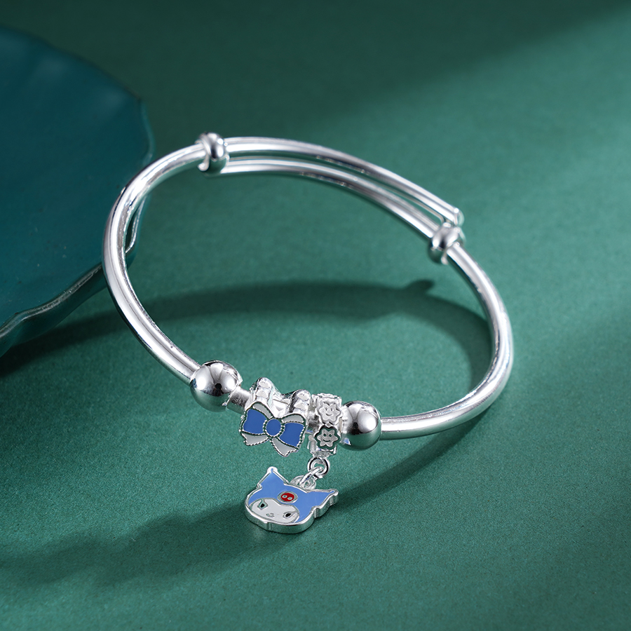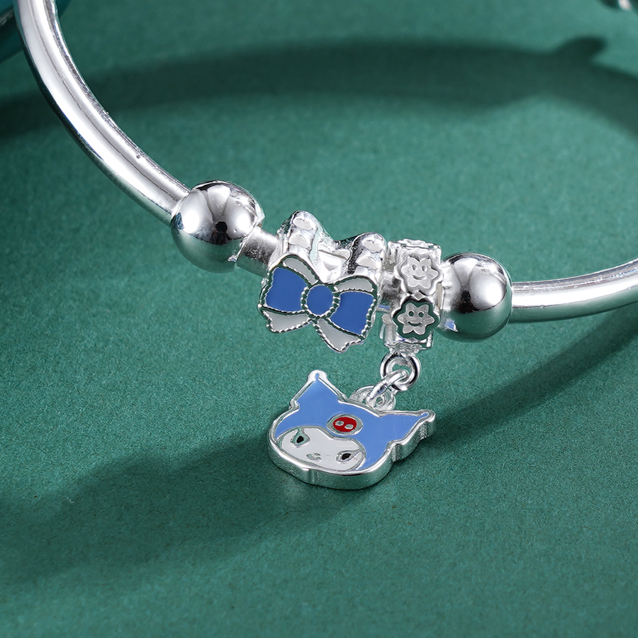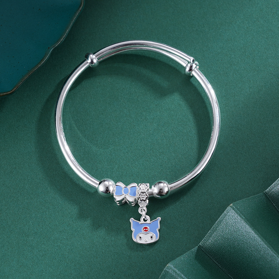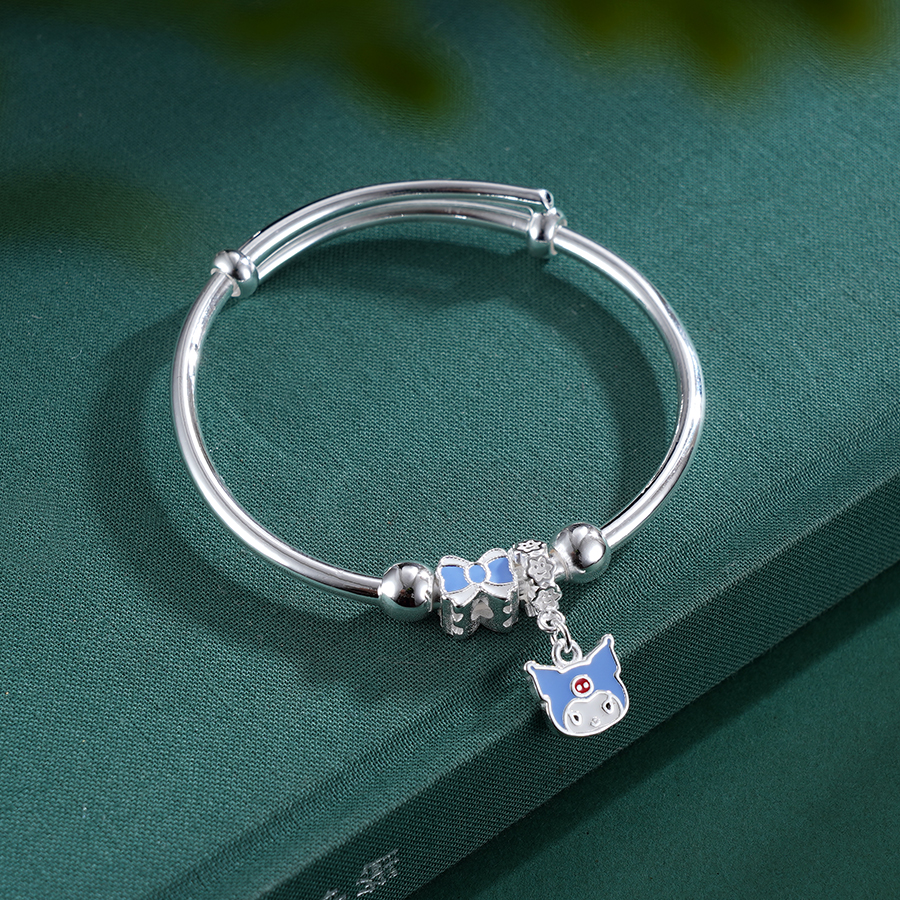 【寓意】:纯银手镯融入库洛米形象,搭配蓝色蝴蝶结,温馨可爱之感扑面而来。