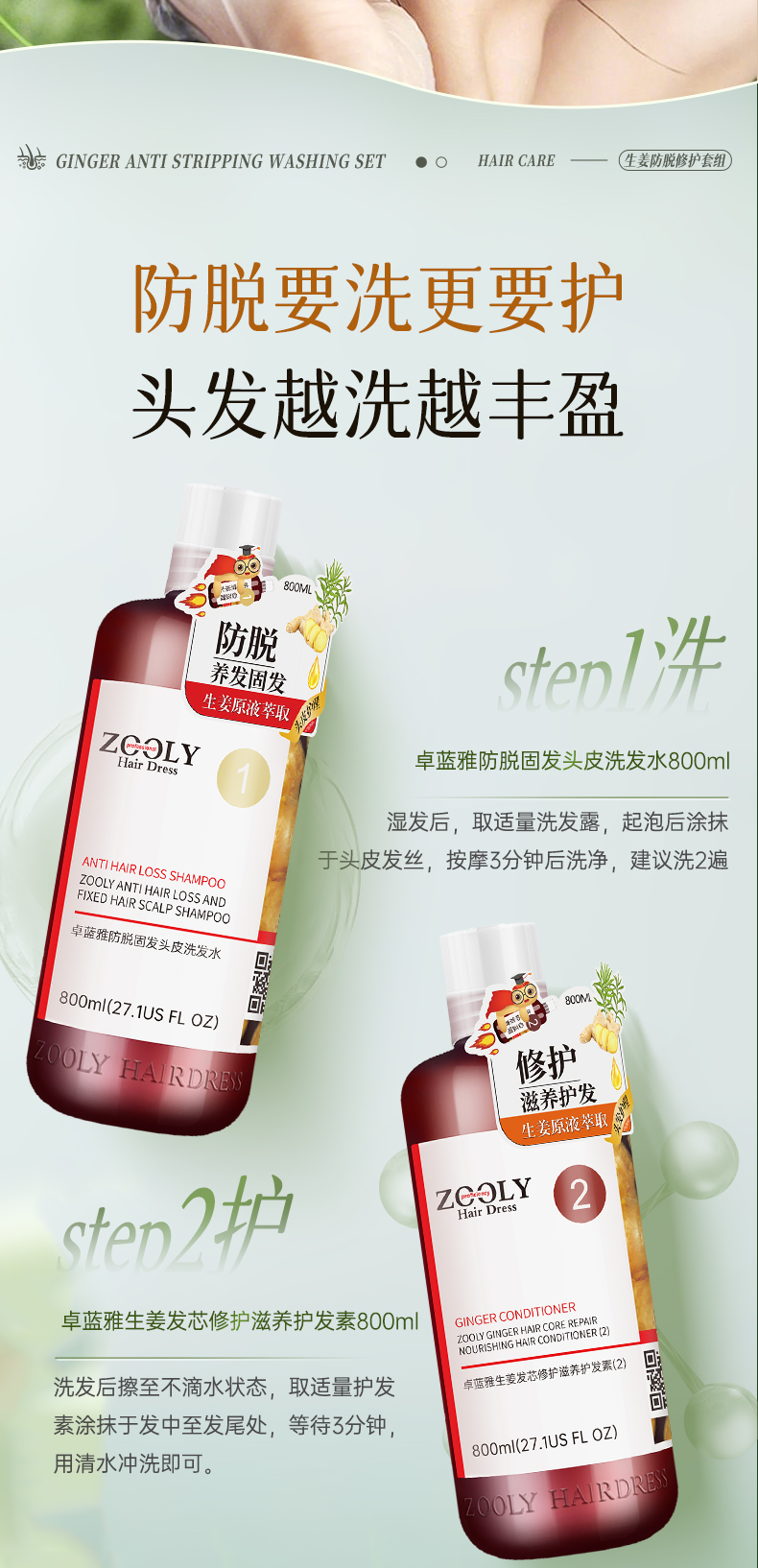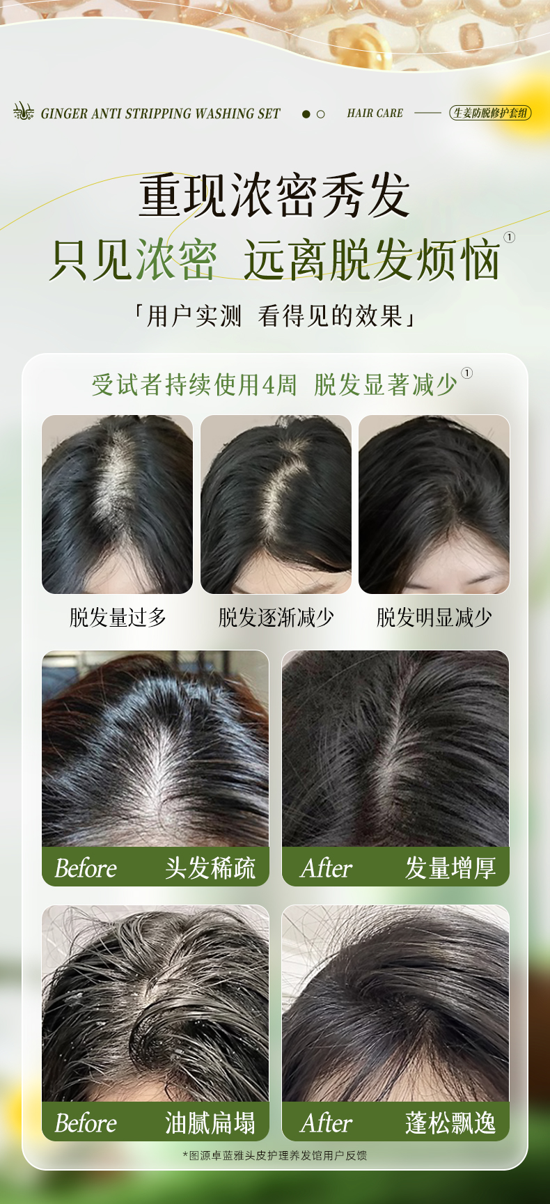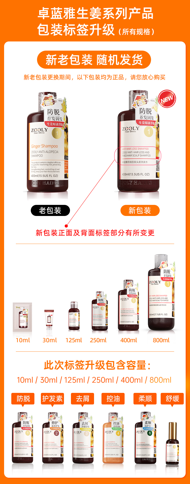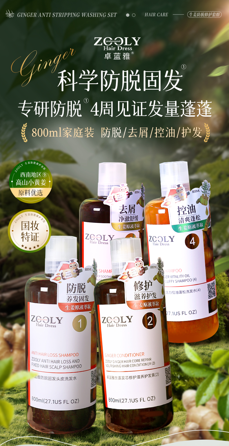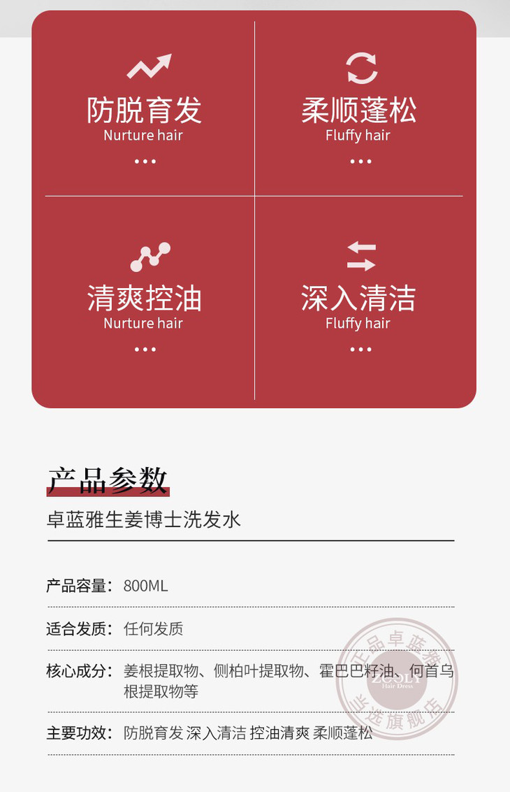 卓蓝雅丨【大瓶防脱】生姜防脱洗发水800ml 防脱控油/去屑/补水可选