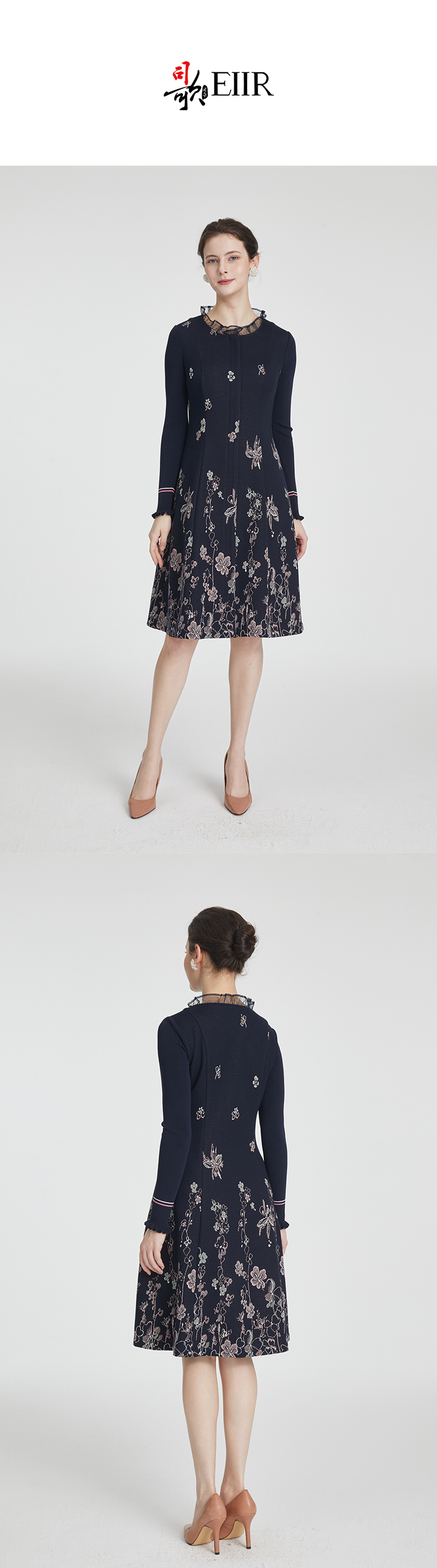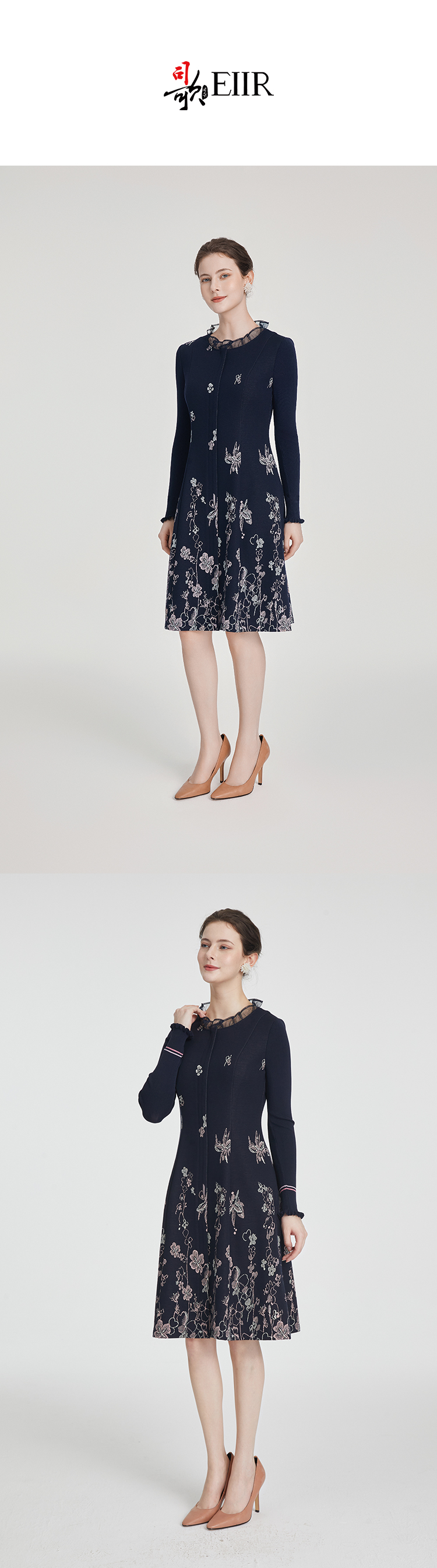 司歌印花圆领连衣裙毛织长袖冬裙R881129